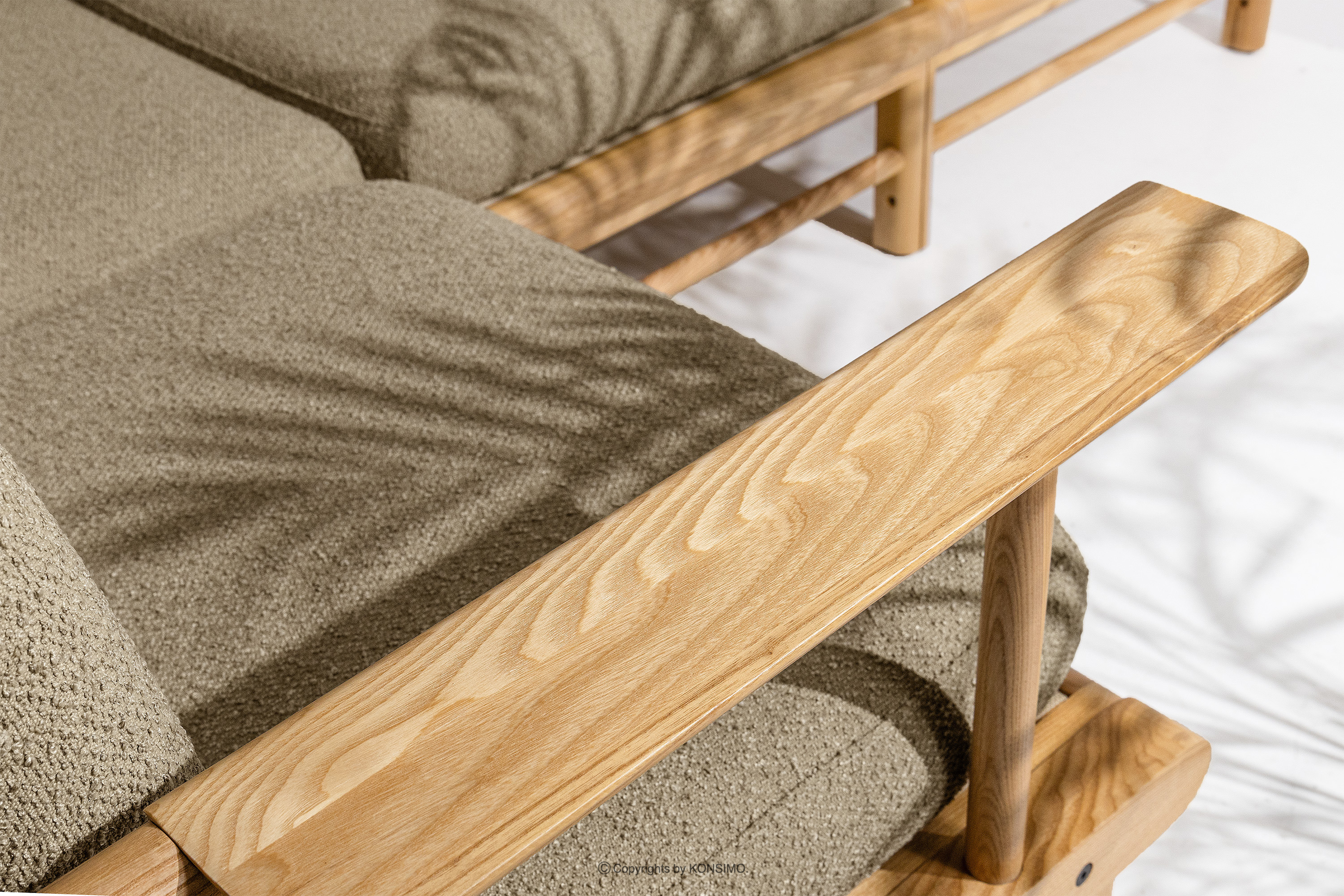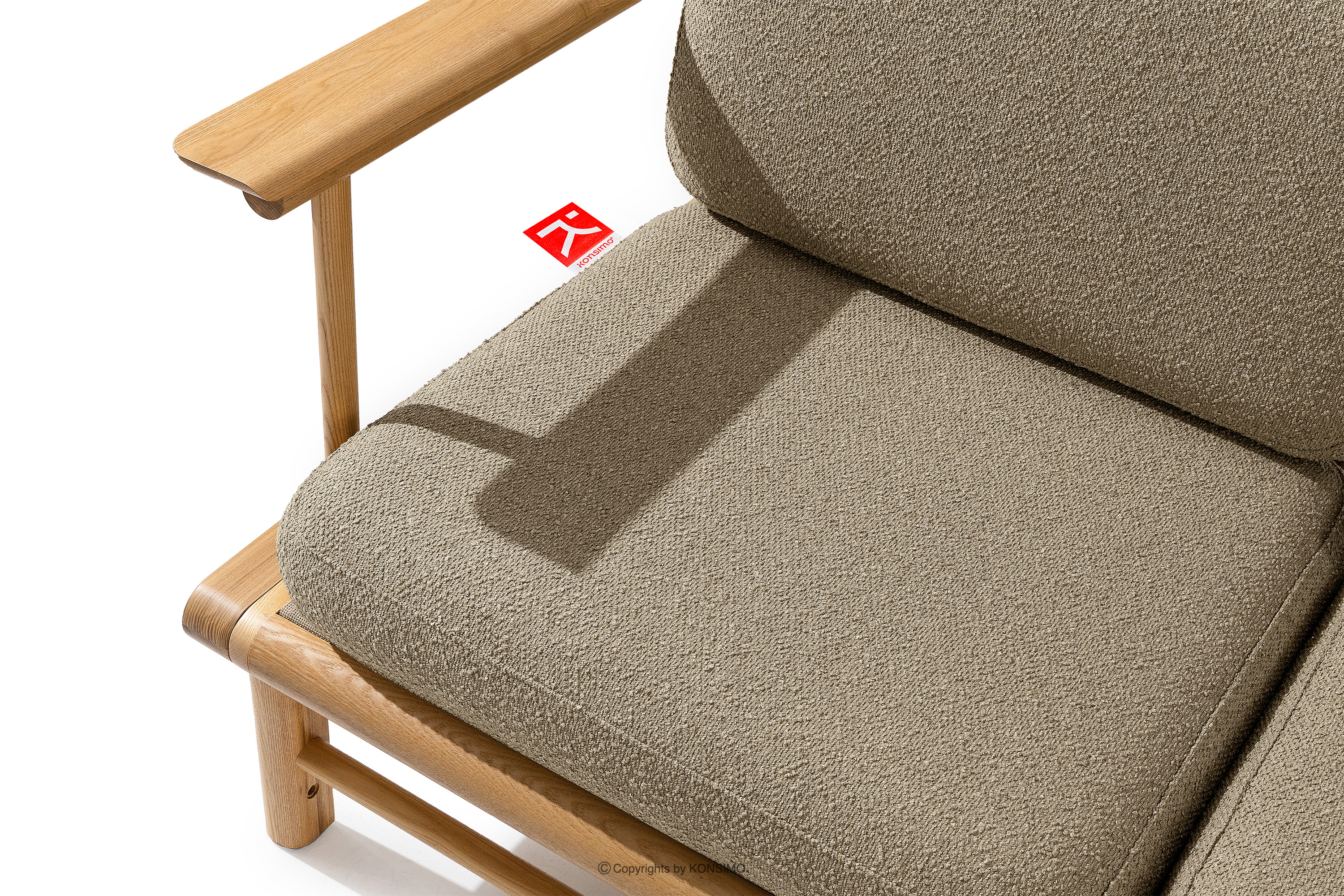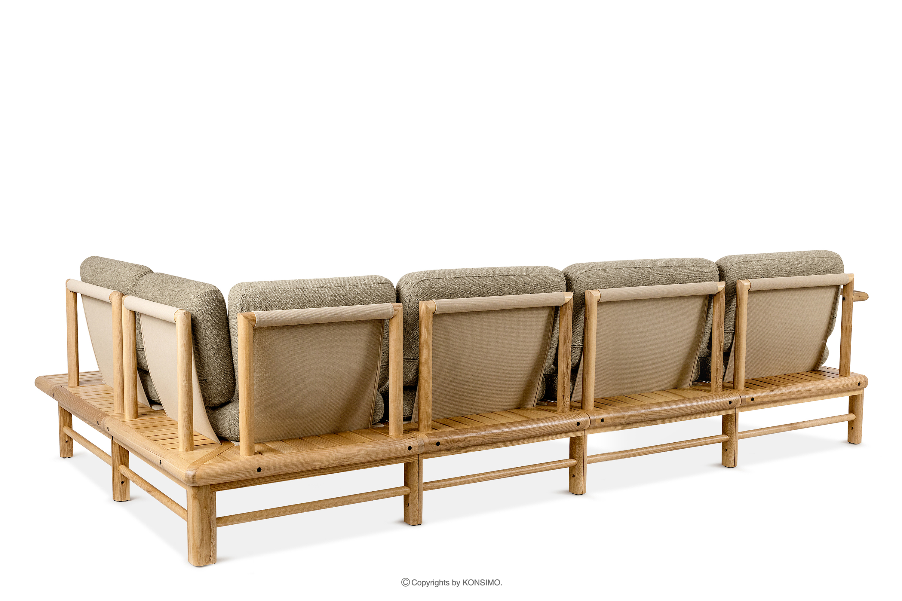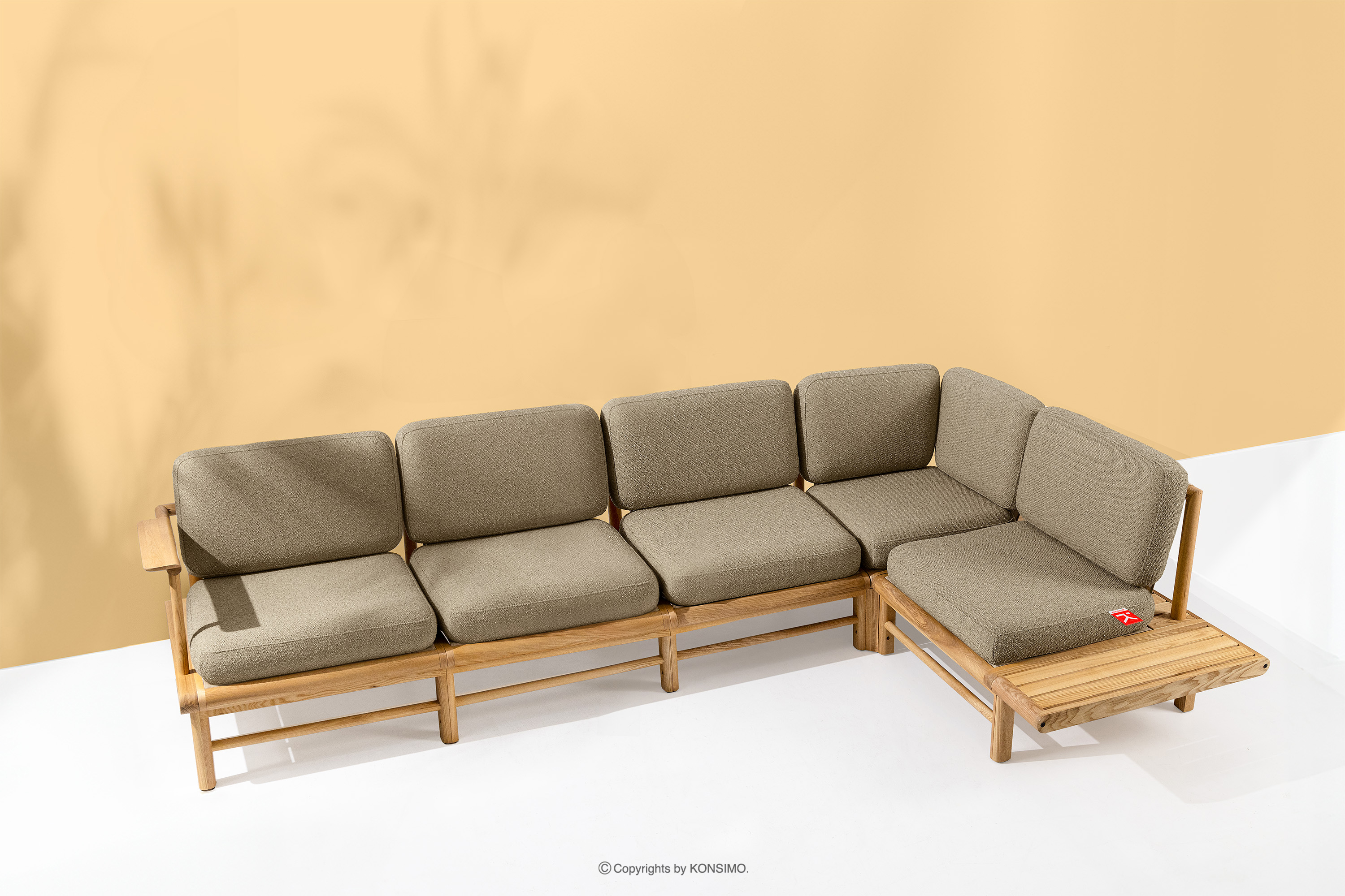 ATREDA zobacz całą kolekcję Drewniany narożnik ogrodowy z poduszkami beżowy prawy- kolor beżowy/jesion naturalny