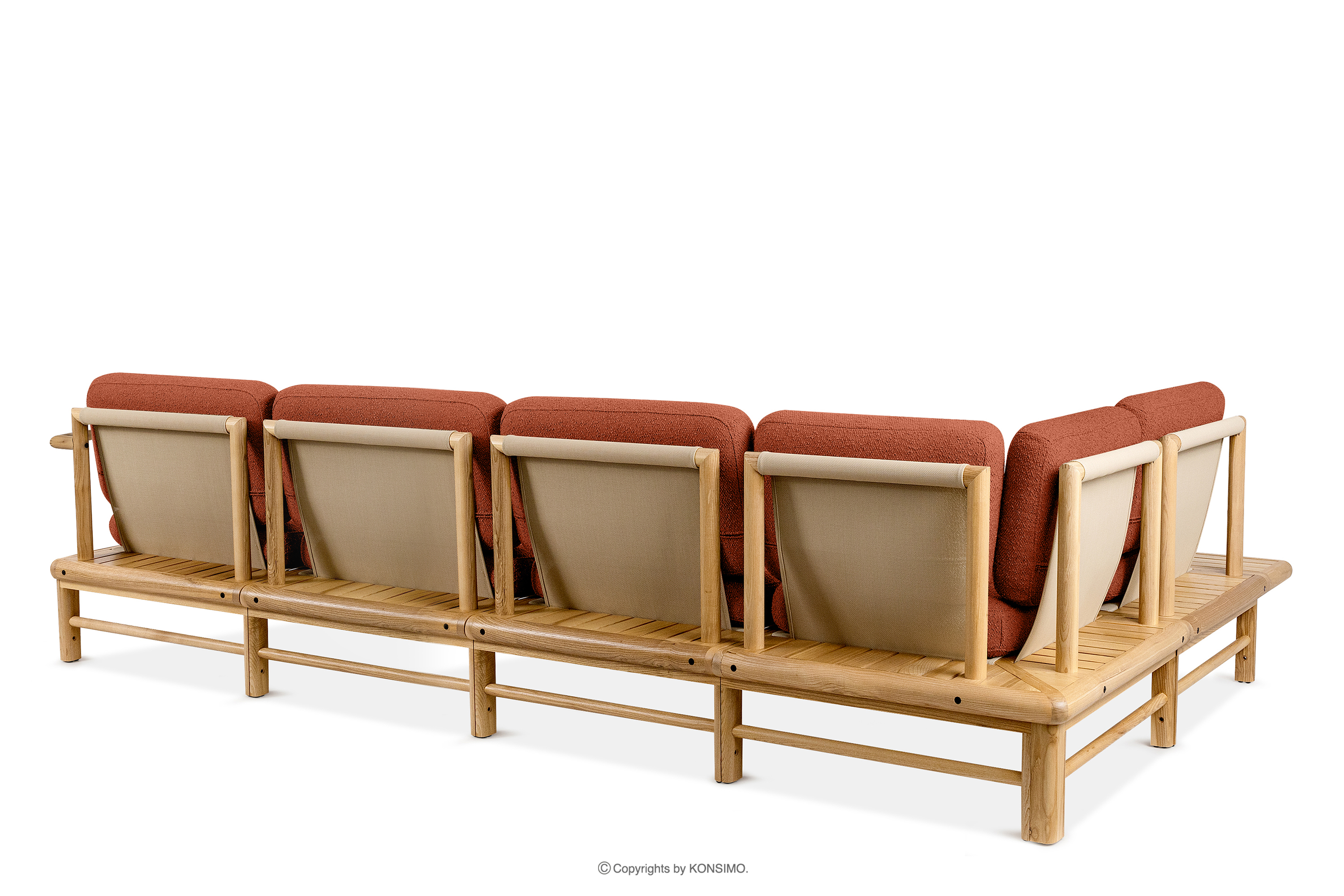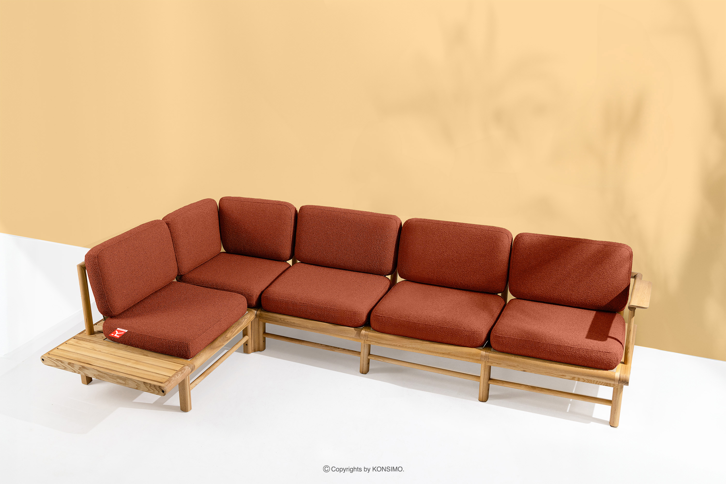 ATREDA zobacz całą kolekcję Narożnik ogrodowy z litego drewna w stylu boho pomarańczowy lewy- kolor pomarańczowy/jesion naturalny