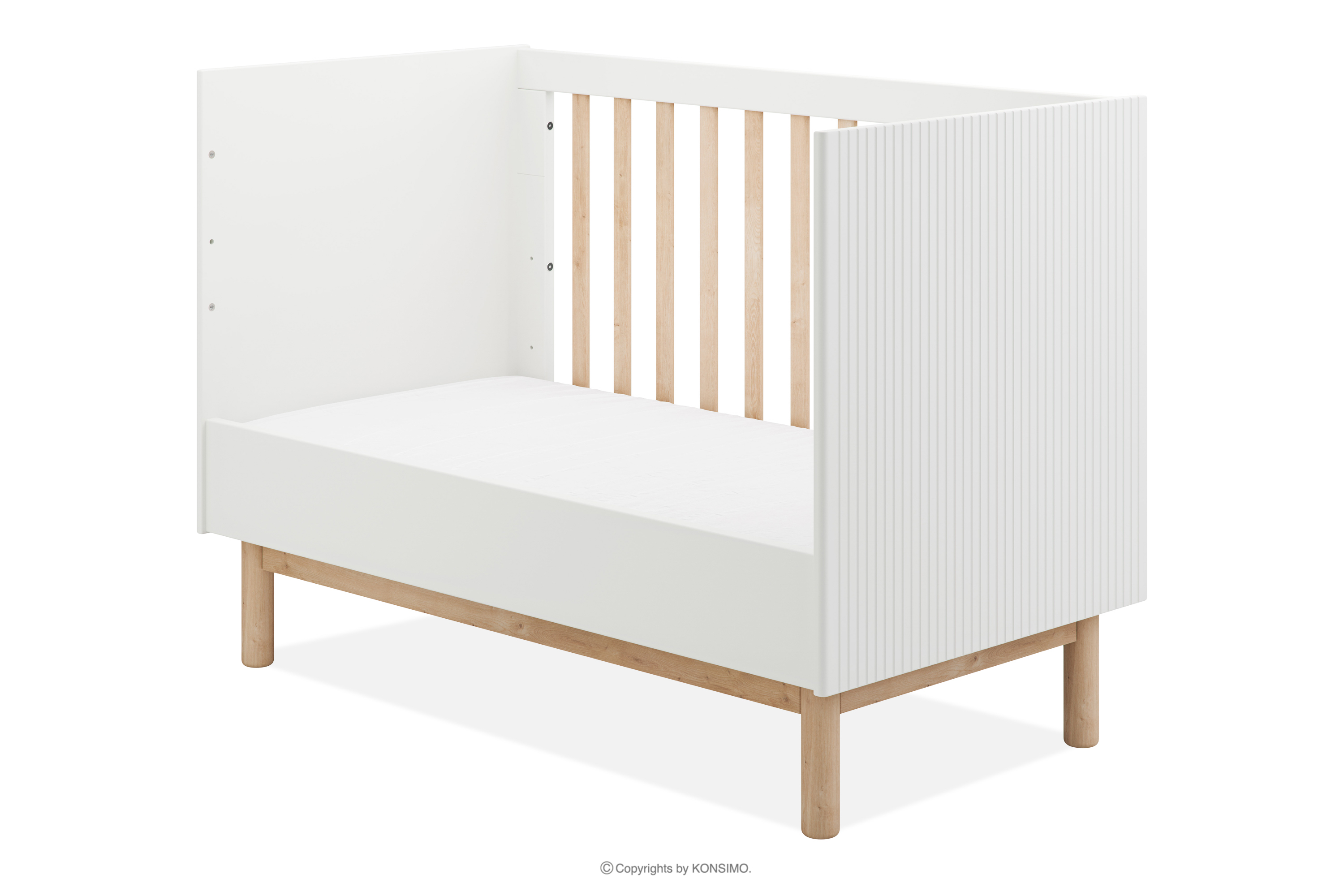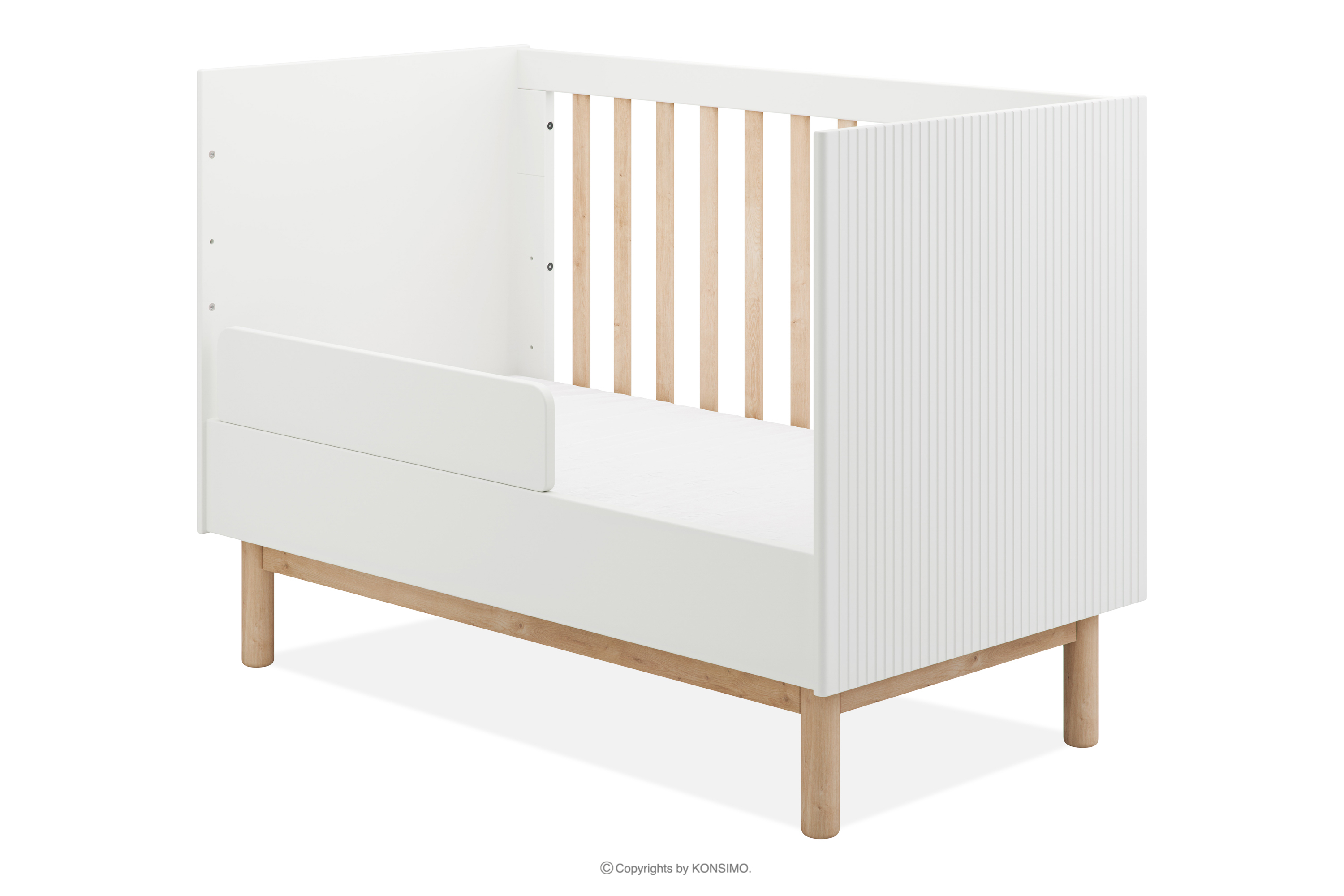 - Dodatkowe informacje: 3 poziomy wysokości materaca, 3 wyciągane szczebelki, możliwość zdjęcia jednego boku, zgodne z normą EN-716