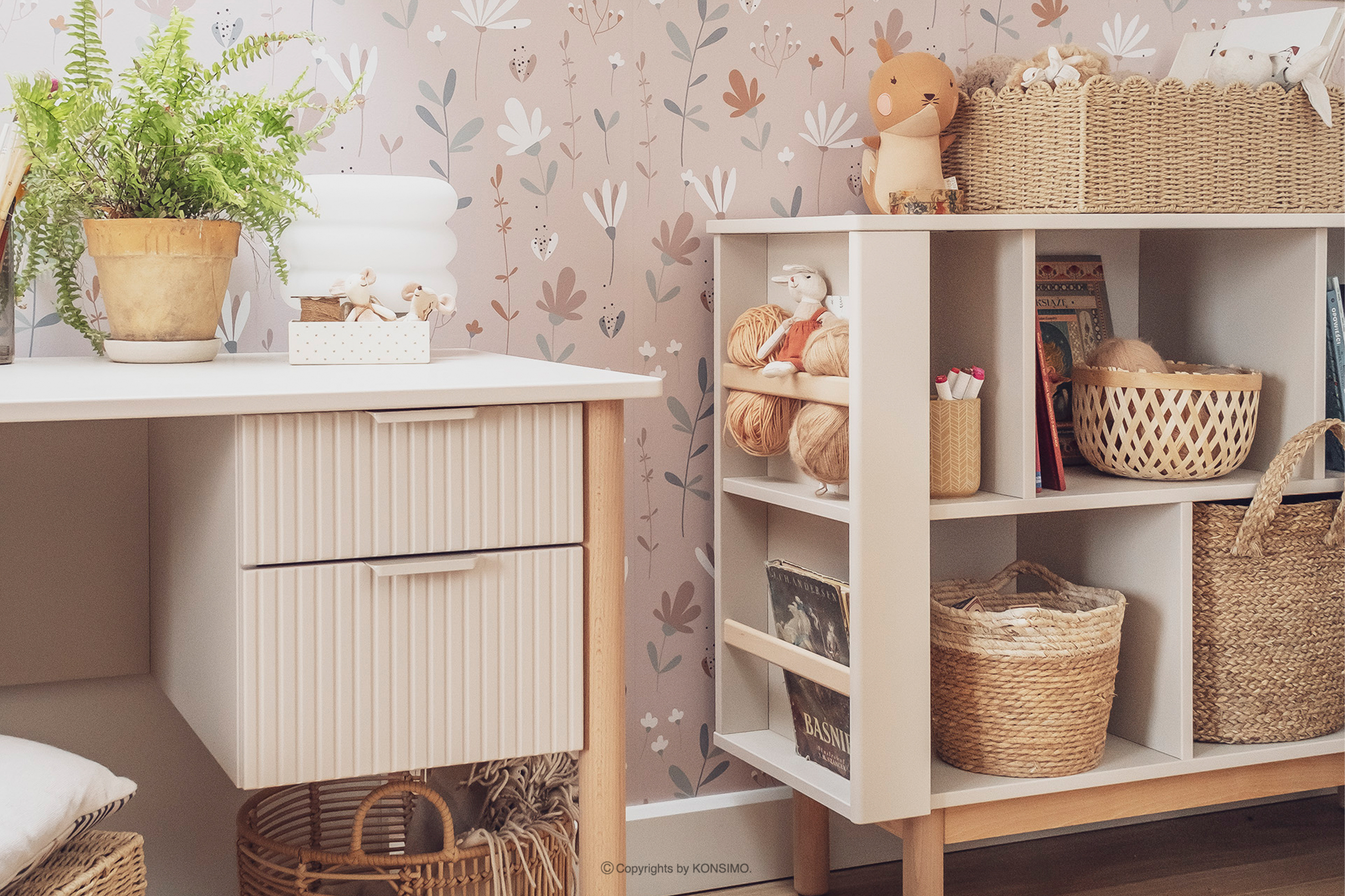 LOTTI zobacz całą kolekcję Niski regał do pokoju dziecięcego beżowy- kolor beżowy