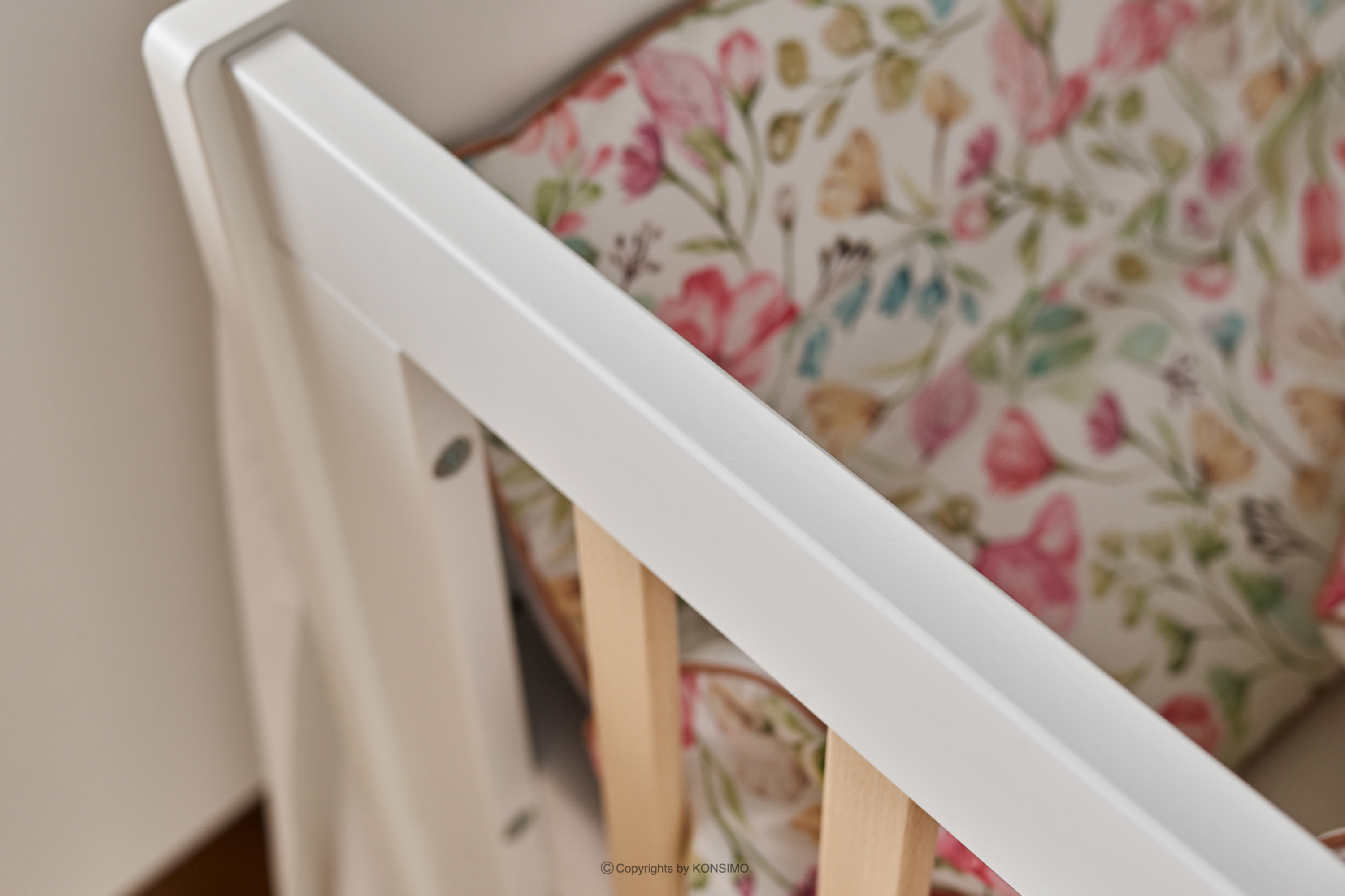 - Dodatkowe informacje: 3 poziomy wysokości materaca, 3 wyciągane szczebelki, możliwość zdjęcia górnej obudowy