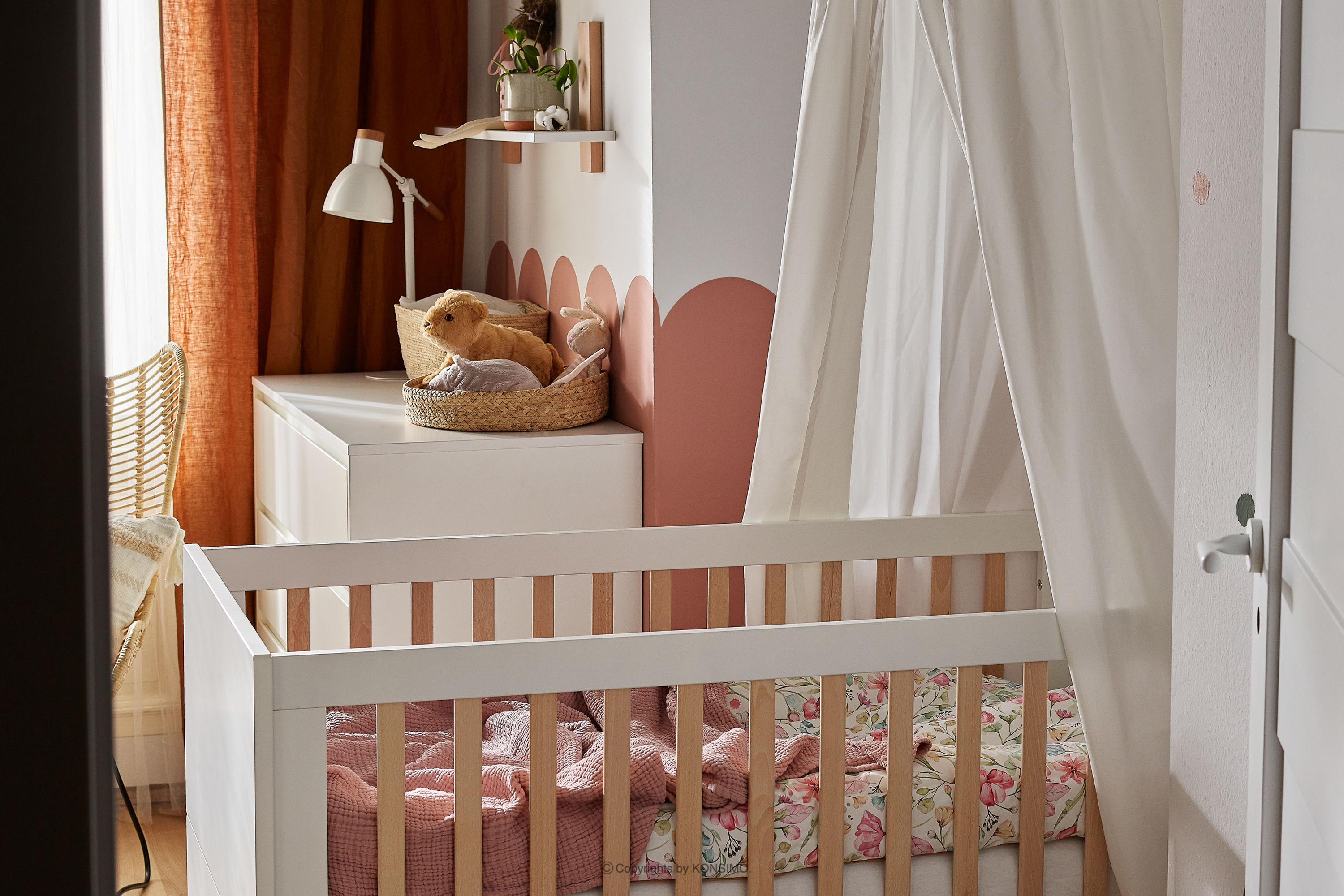 DAMBI zobacz całą kolekcję Łóżeczko dziecięce z regulacją wysokości 140x70 białe- kolor biały
