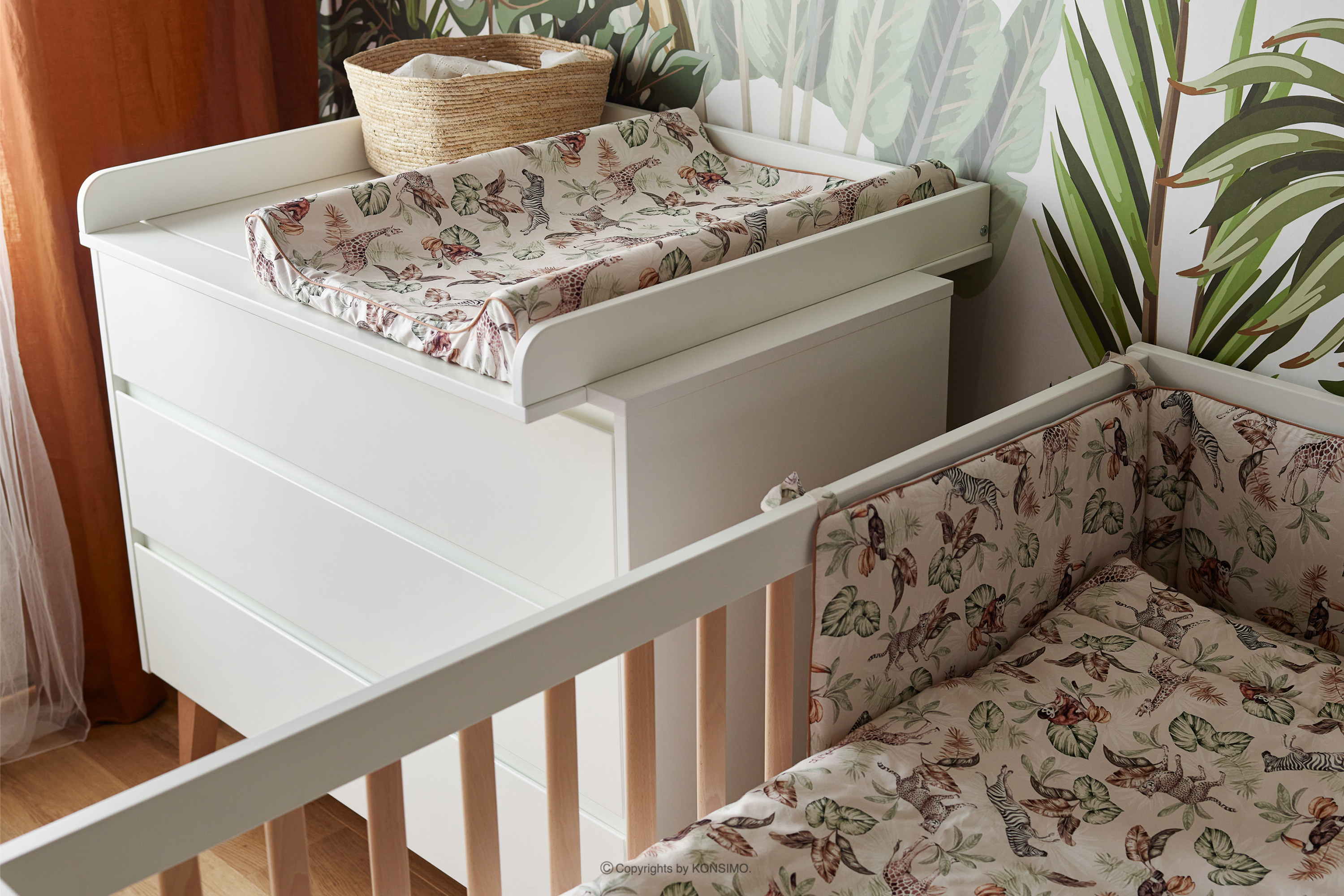 Łóżko dziecięce zostało wyposażone w trzy poziomy wysokości materaca, co pozwala dostosować je do rozwoju dziecka oraz jego potrzeb. Dodatkowo, trzy wyciągane szczebelki ułatwiają bezproblemowe wstawanie i kładzenie się dziecka, a także sprawiają, że opieka nad maluchem jest jeszcze łatwiejsza. Ponadto, unikalna opcja zdjęcia górnej obudowy umożliwia dostosowanie łóżka do zmieniających się potrzeb i preferencji dziecka.