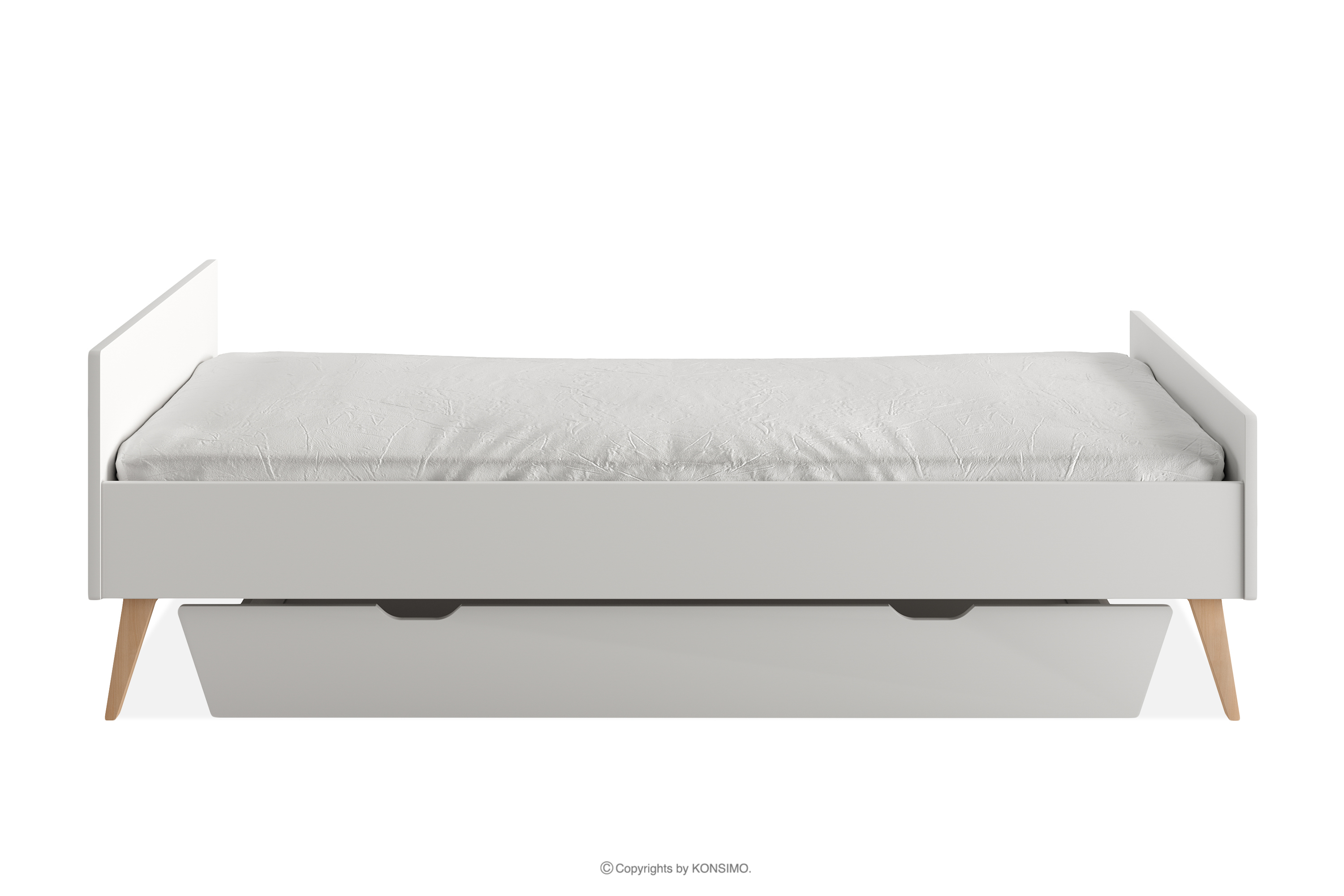 Łóżko dziecięce to przede wszystkim komfortowe miejsce do wypoczynku i snu w pokoju Twojego dziecka. Korpus łóżka wykonany jest z trwałego MDF-u i płyty laminowanej, co zapewnia solidność i trwałość mebla. Stelaż łóżka wykonany jest z drewna sosnowego, a nożki z litego drewna bukowego, co gwarantuje stabilność i solidność całej konstrukcji.