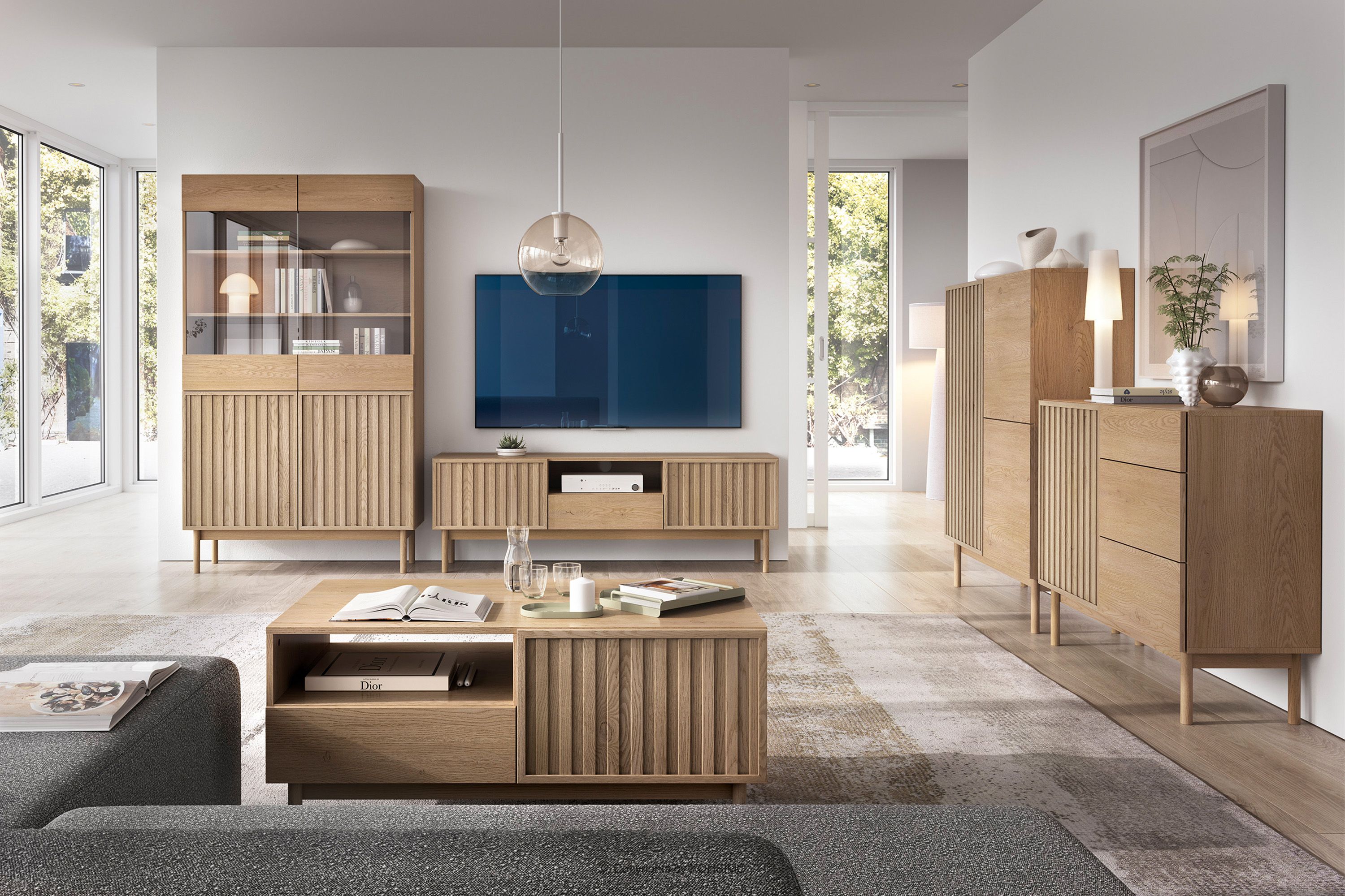 HARMA zobacz całą kolekcję Duża witryna z lamelami w stylu loft dąb cremona- kolor dąb cremona
