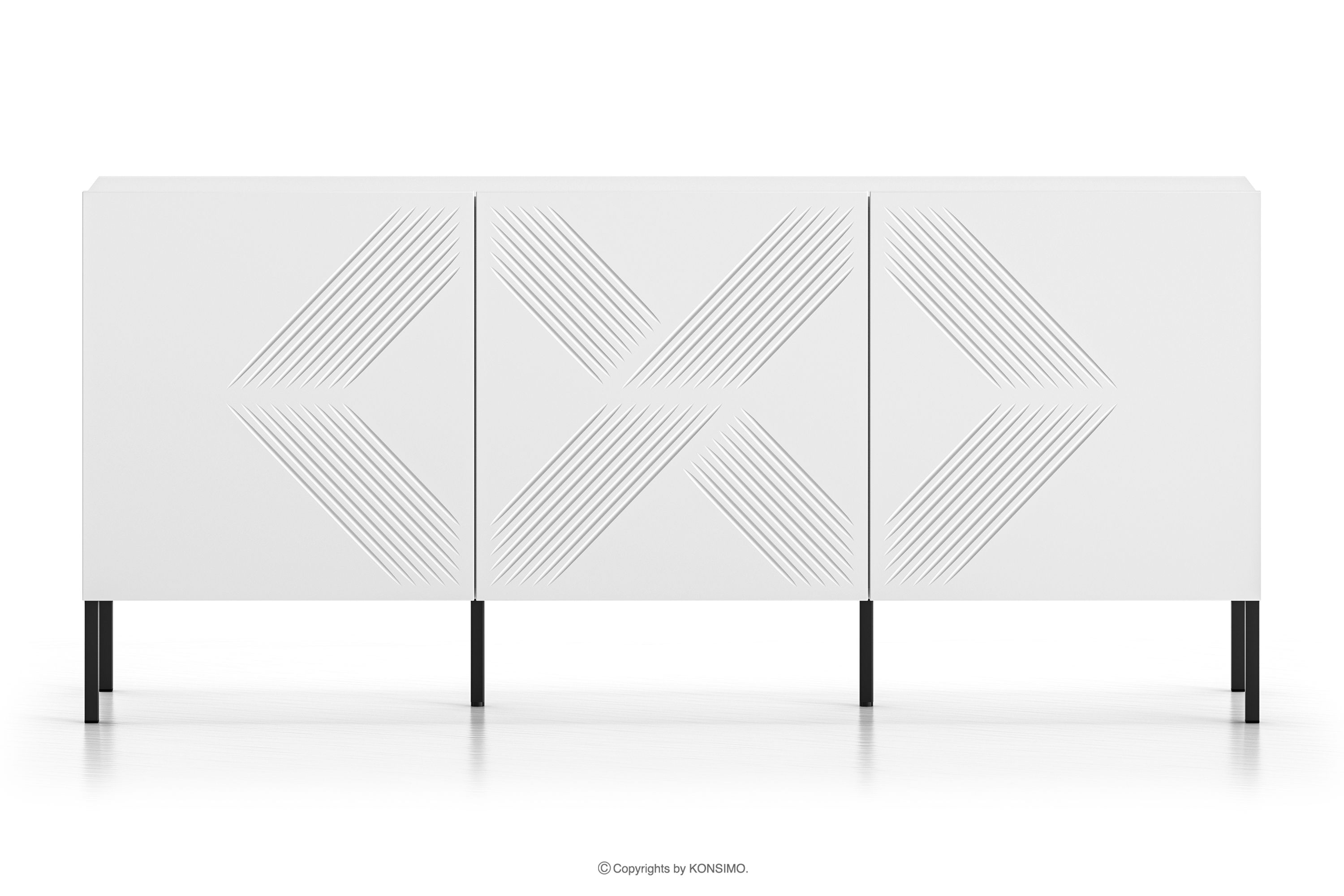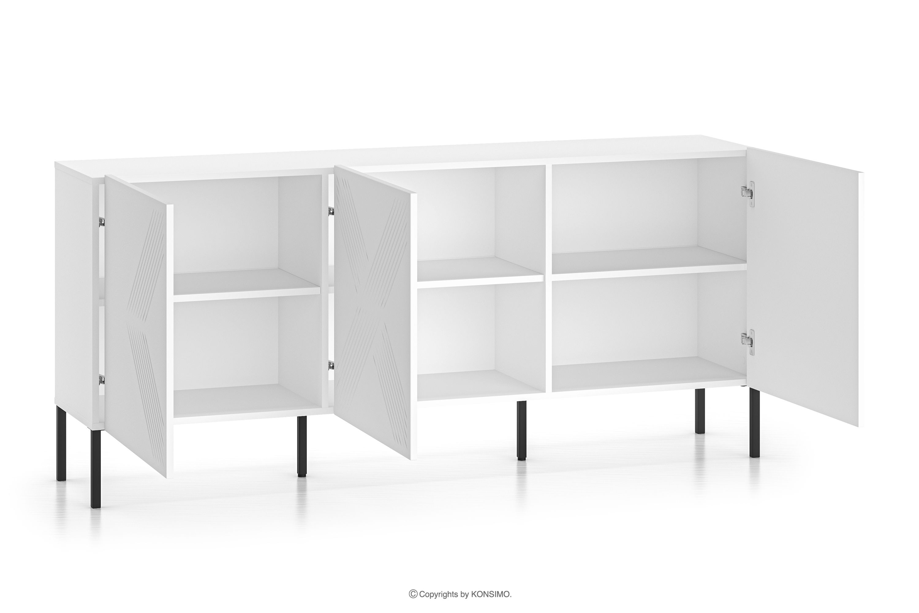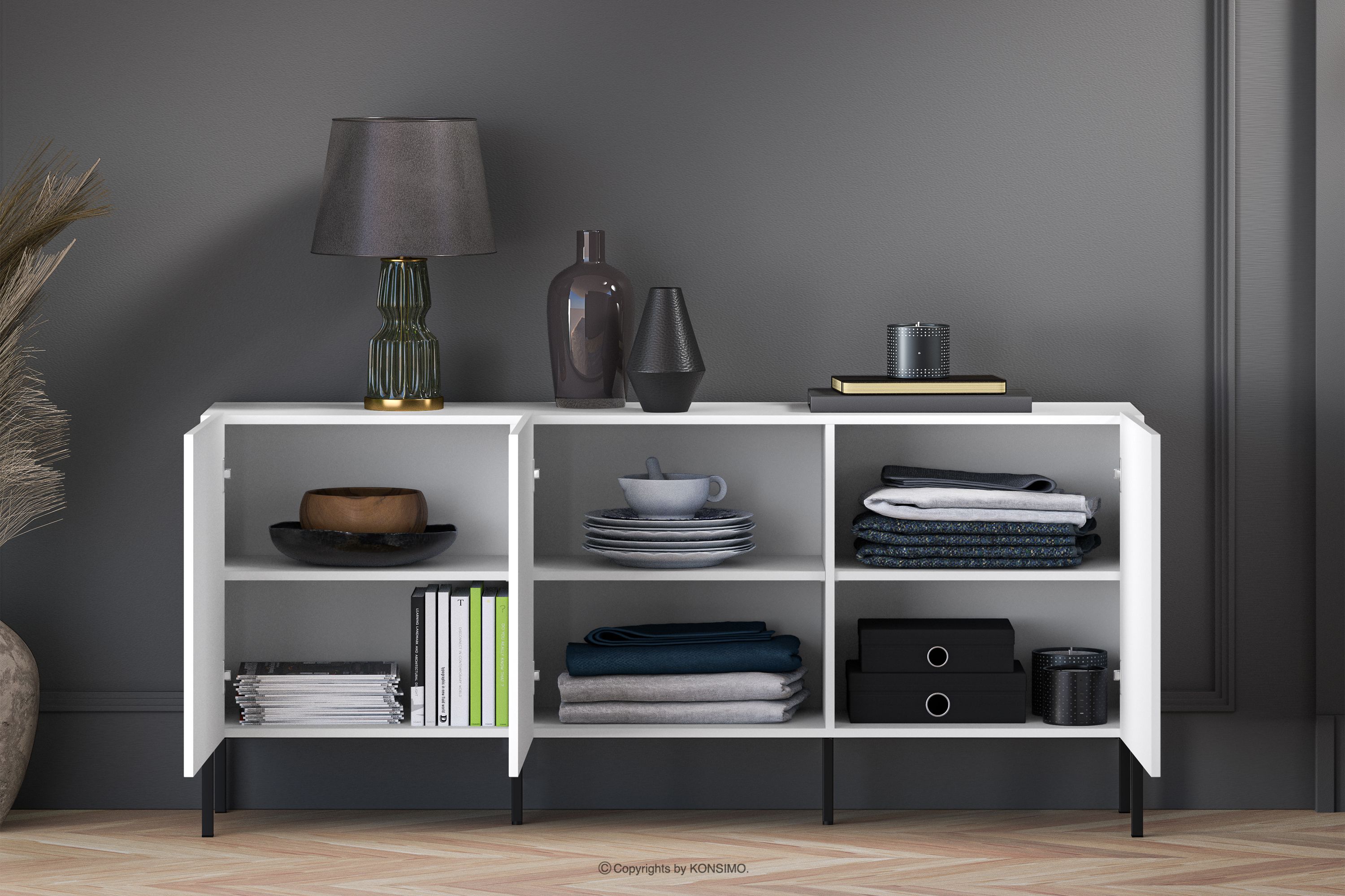 NEBRO zobacz całą kolekcję Biała komoda trzydrzwiowa na czarnych nóżkach- kolor biały/czarny