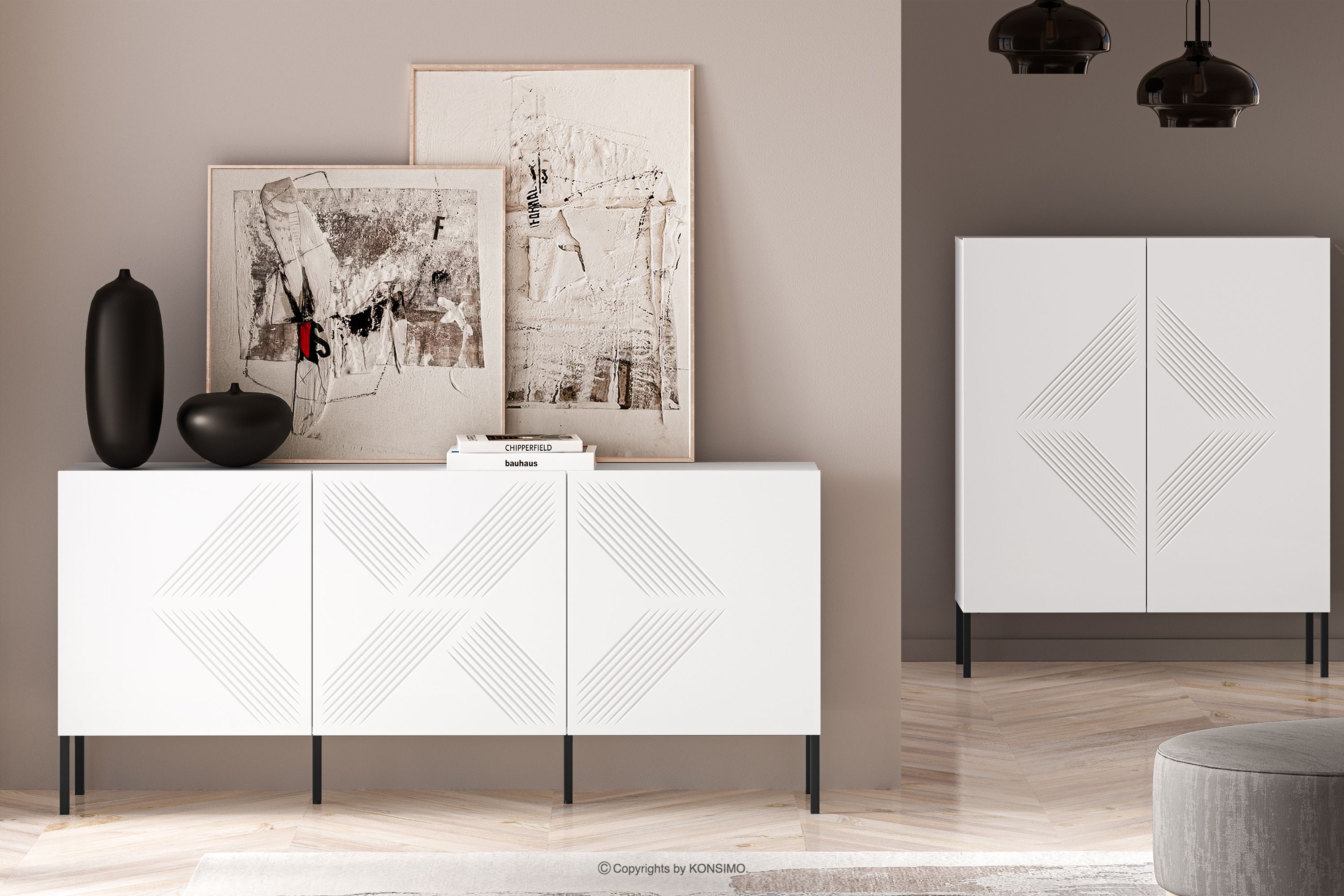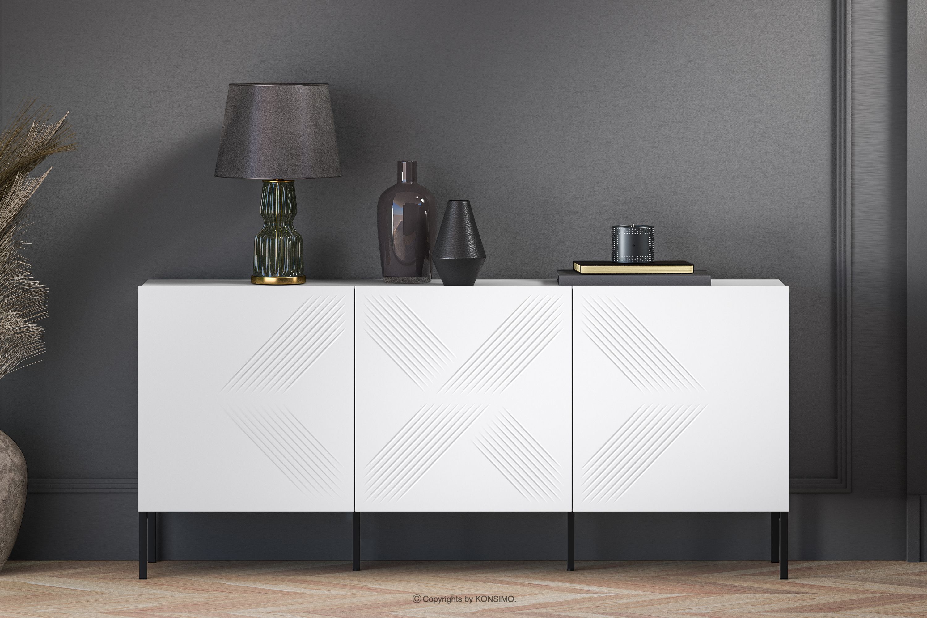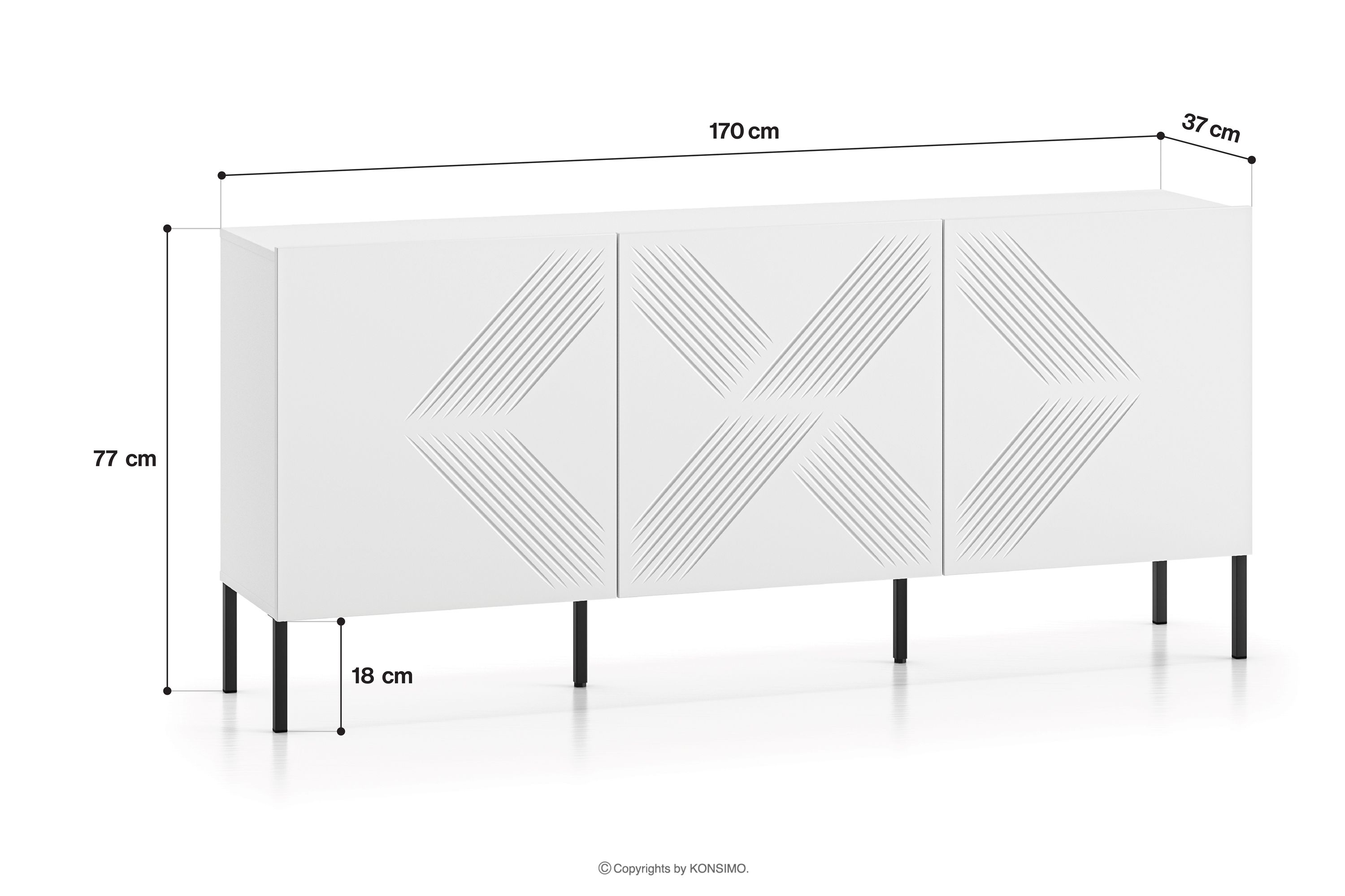 NEBRO zobacz całą kolekcję Biała komoda trzydrzwiowa na czarnych nóżkach- kolor biały/czarny