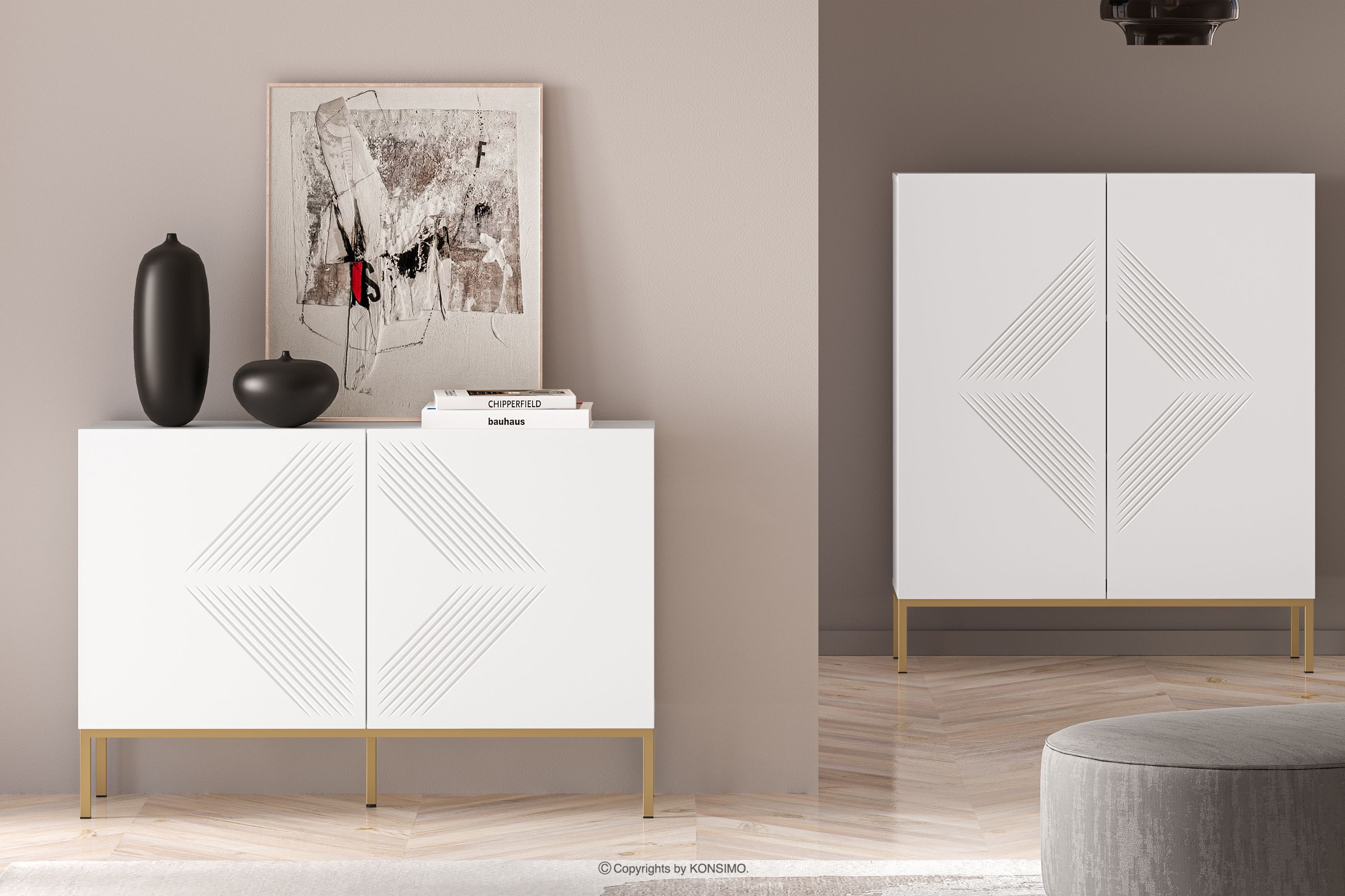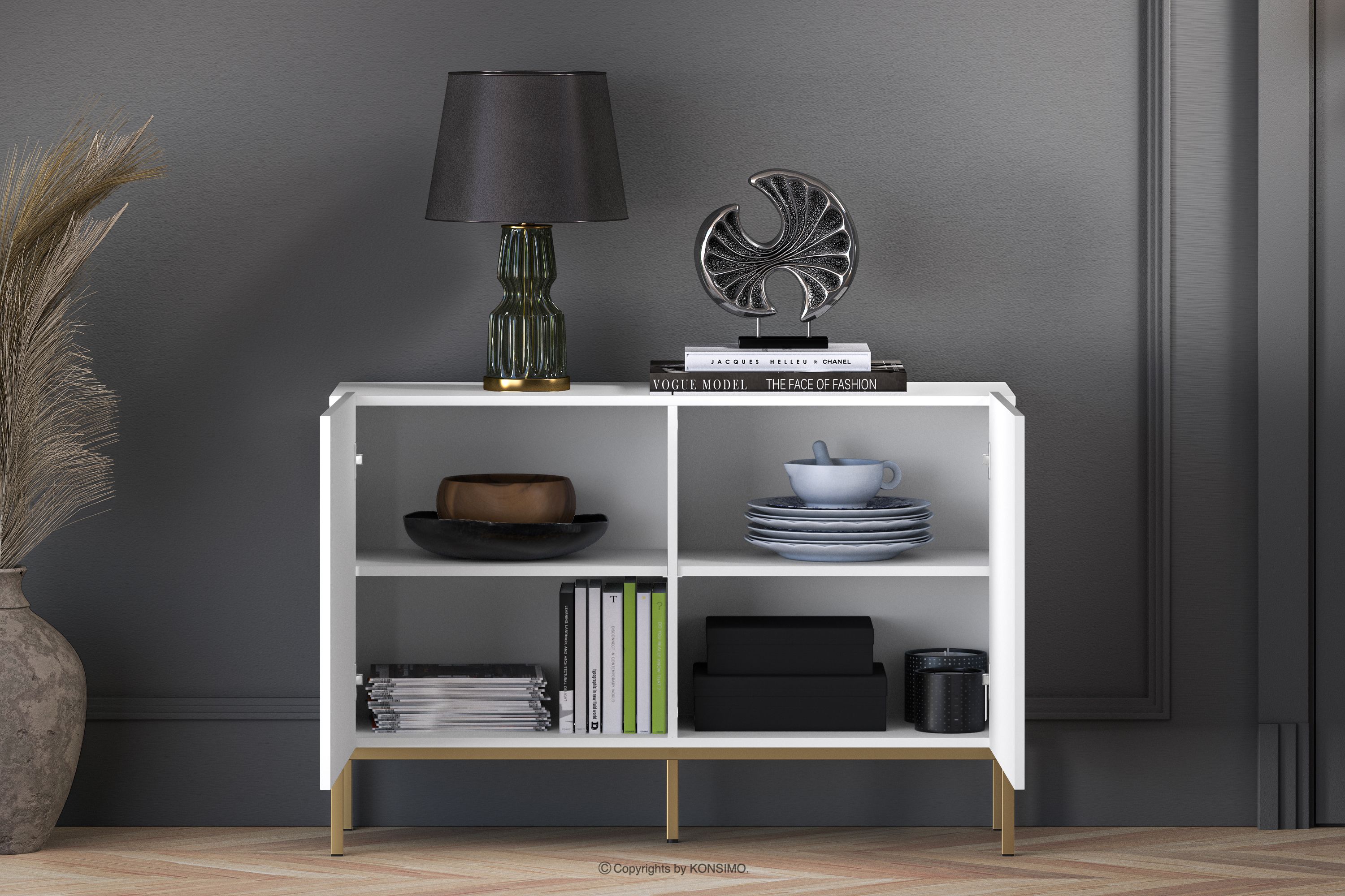 NEBRO zobacz całą kolekcję Biała komoda na złotych nóżkach elegant- kolor biały/złoty
