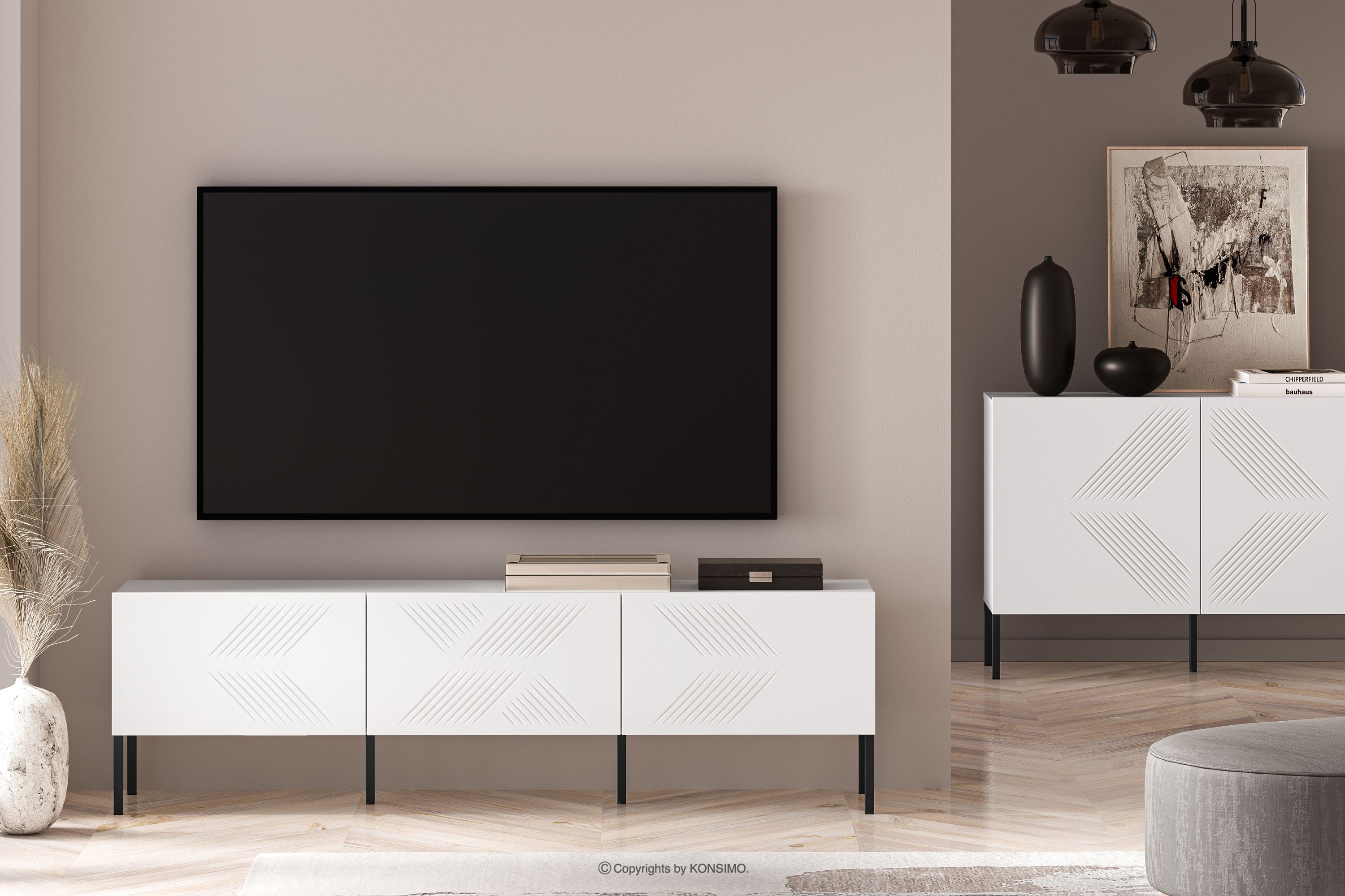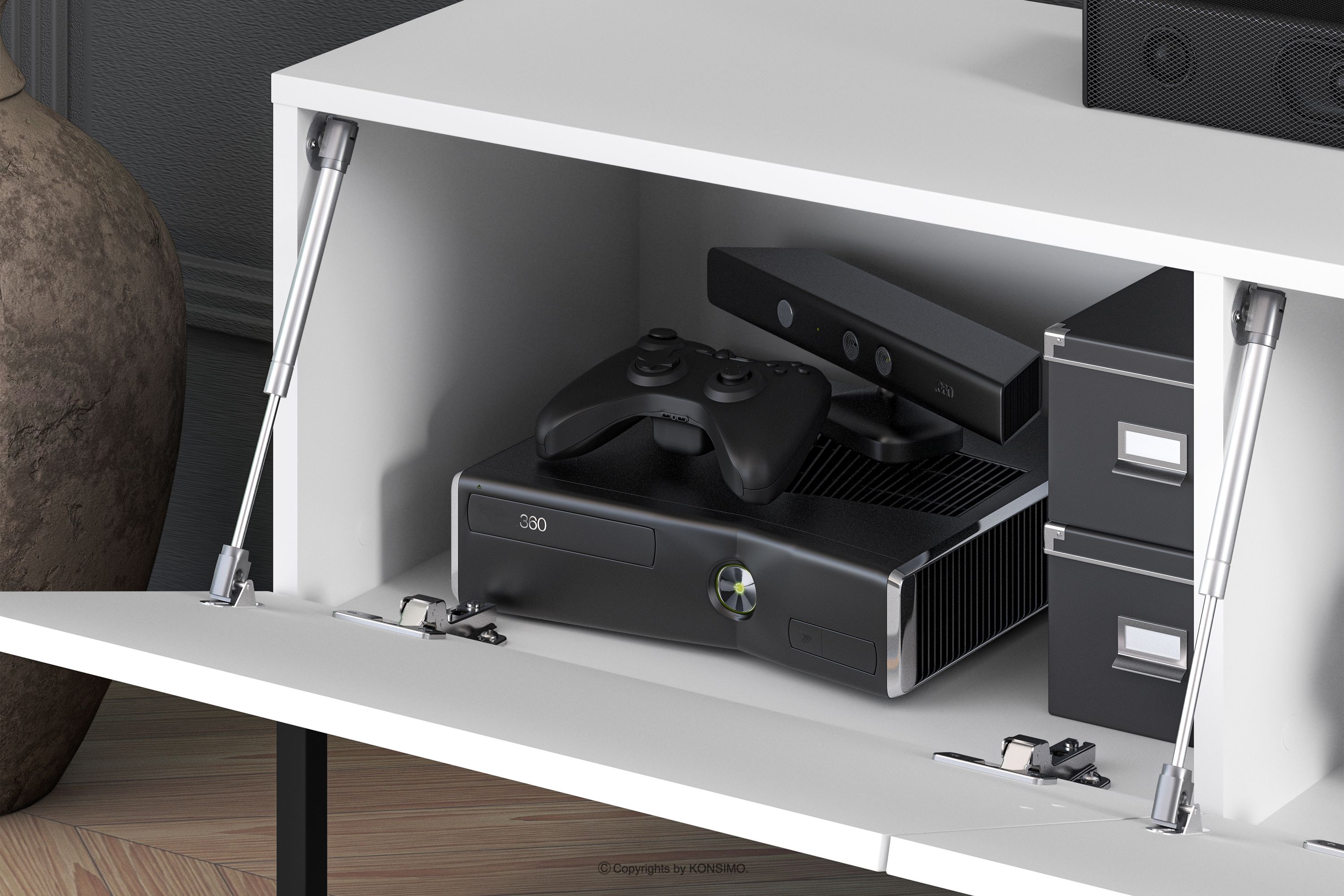 NEBRO zobacz całą kolekcję Szafka RTV w stylu elegant na czarnych nóżkach- kolor biały/czarny