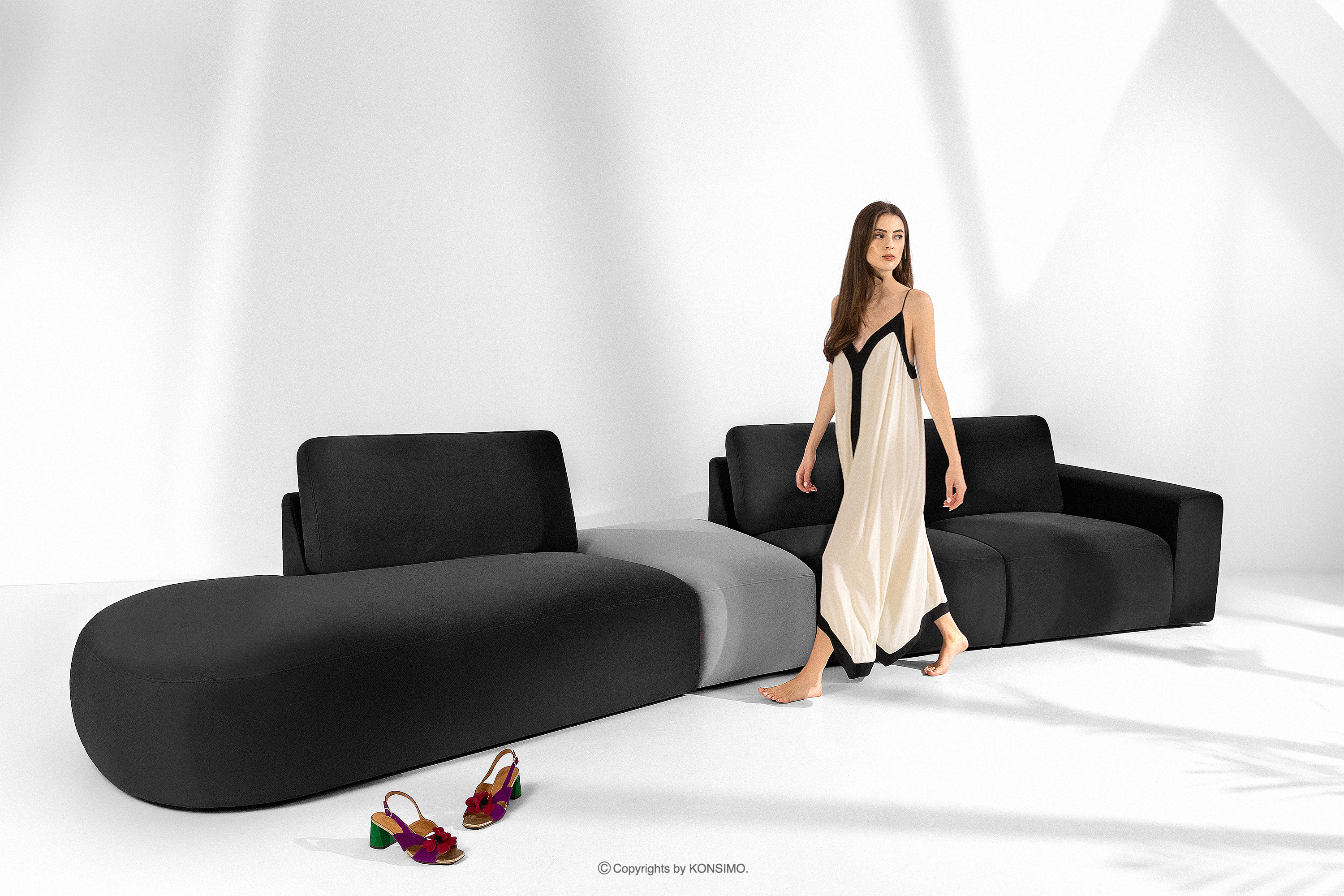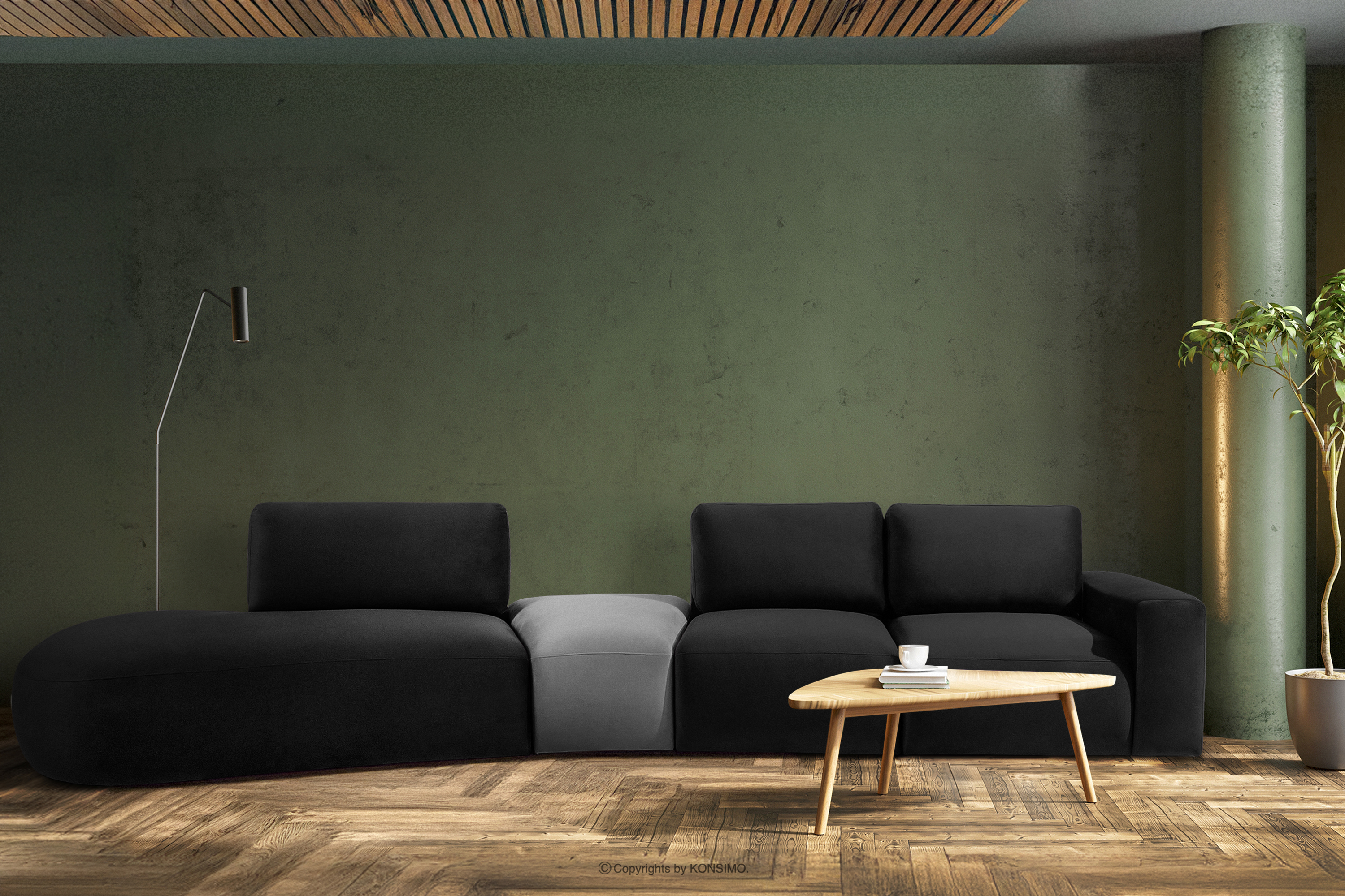 Duży narożnik do salonu welur ciemny szary/jasny szary lewy to synonim nowoczesnego komfortu i elegancji. Wykonany z najwyższej jakości materiałów modułowość zapewnia dowolność użytkowania w zależności od potrzeb. Narożnik obity jest tkaniną welur, co nadaje mu luksusowy wygląd, a także jest łatwo go utrzymać w czystości. Styl nowoczesny, w którym zaprojektowany jest narożnik ZUCCO, idealnie wpisuje się w aktualne trendy wnętrzarskie.