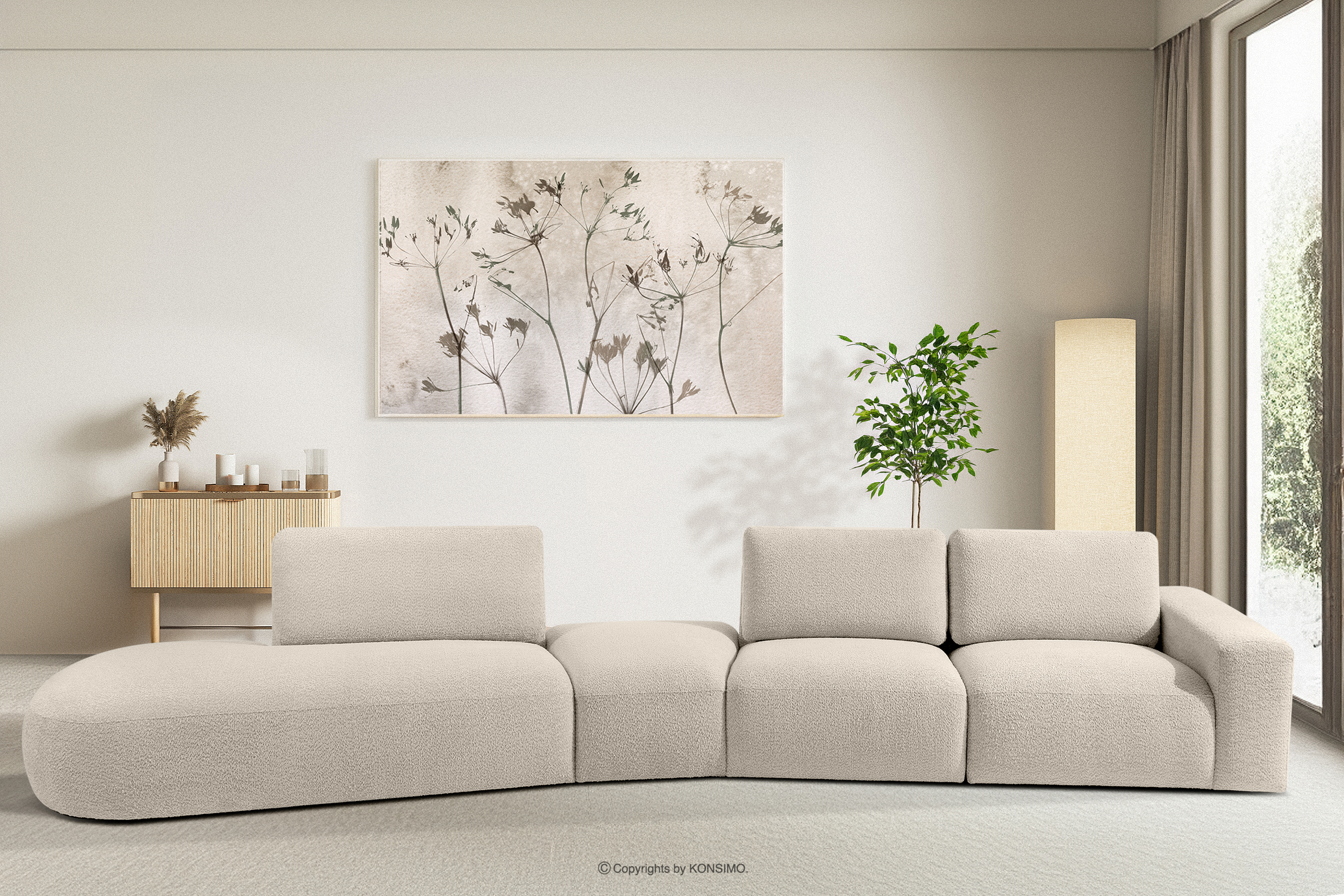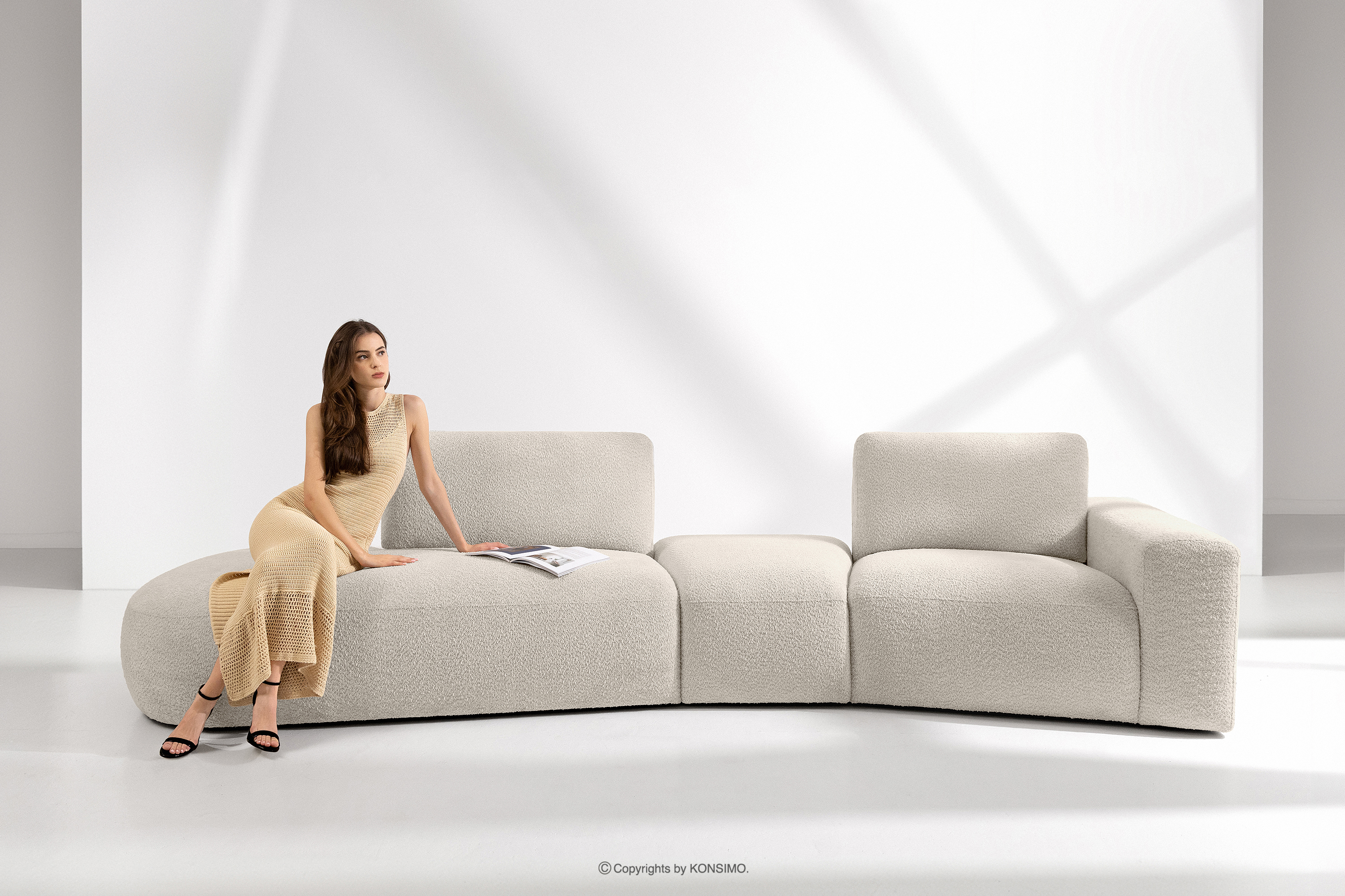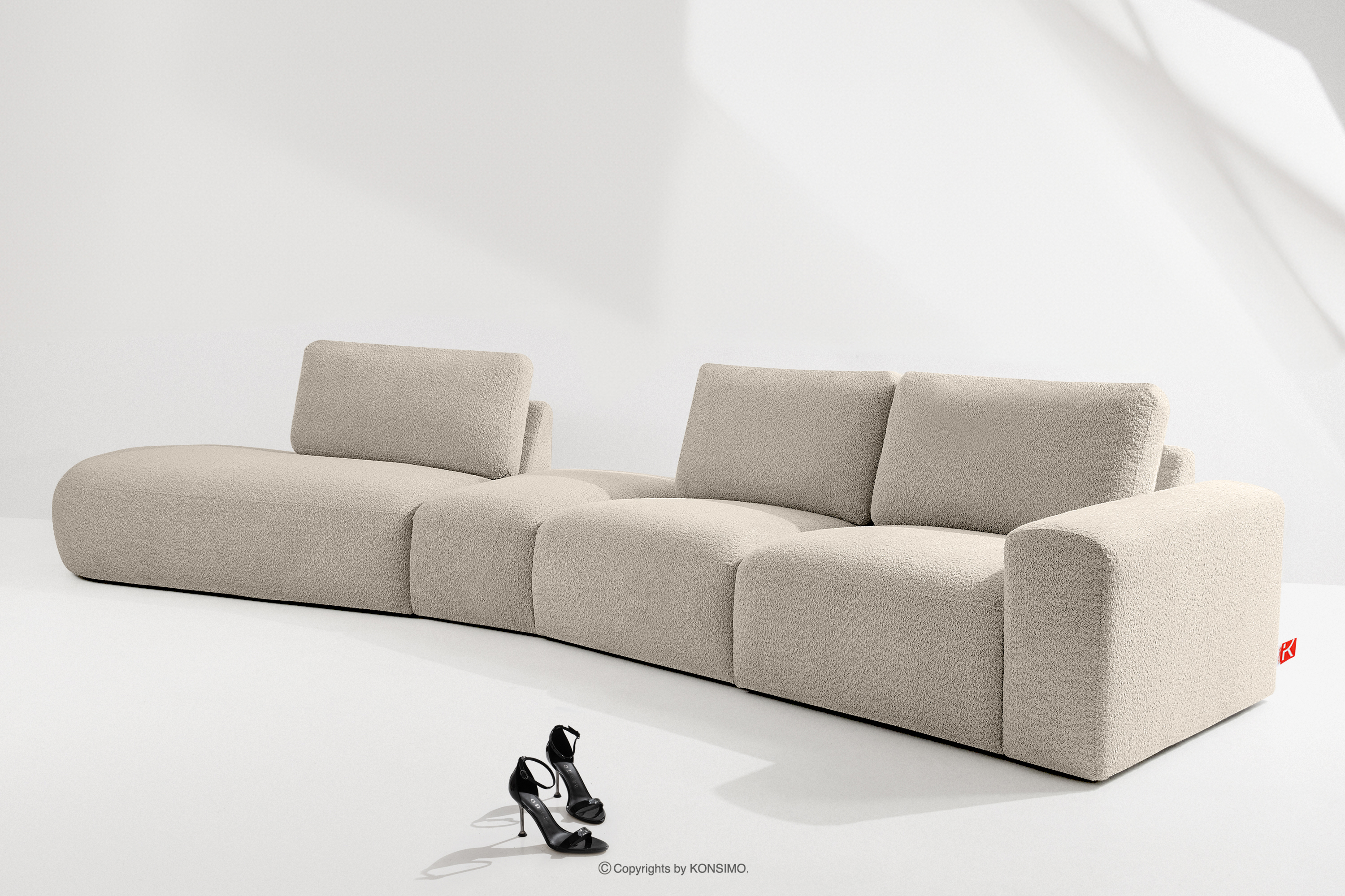 Duży narożnik do salonu boucle jasny beżowy lewy to synonim nowoczesnego komfortu i elegancji. Wykonany z najwyższej jakości materiałów modułowość zapewnia dowolność użytkowania w zależności od potrzeb. Narożnik obity jest tkaniną boucle, co nadaje jej luksusowy wygląd, a także jest znana ze swojej trwałości oraz przyjemnej w dotyku faktury. Styl nowoczesny, w którym zaprojektowany jest narożnik ZUCCO, idealnie wpisuje się w aktualne trendy wnętrzarskie.