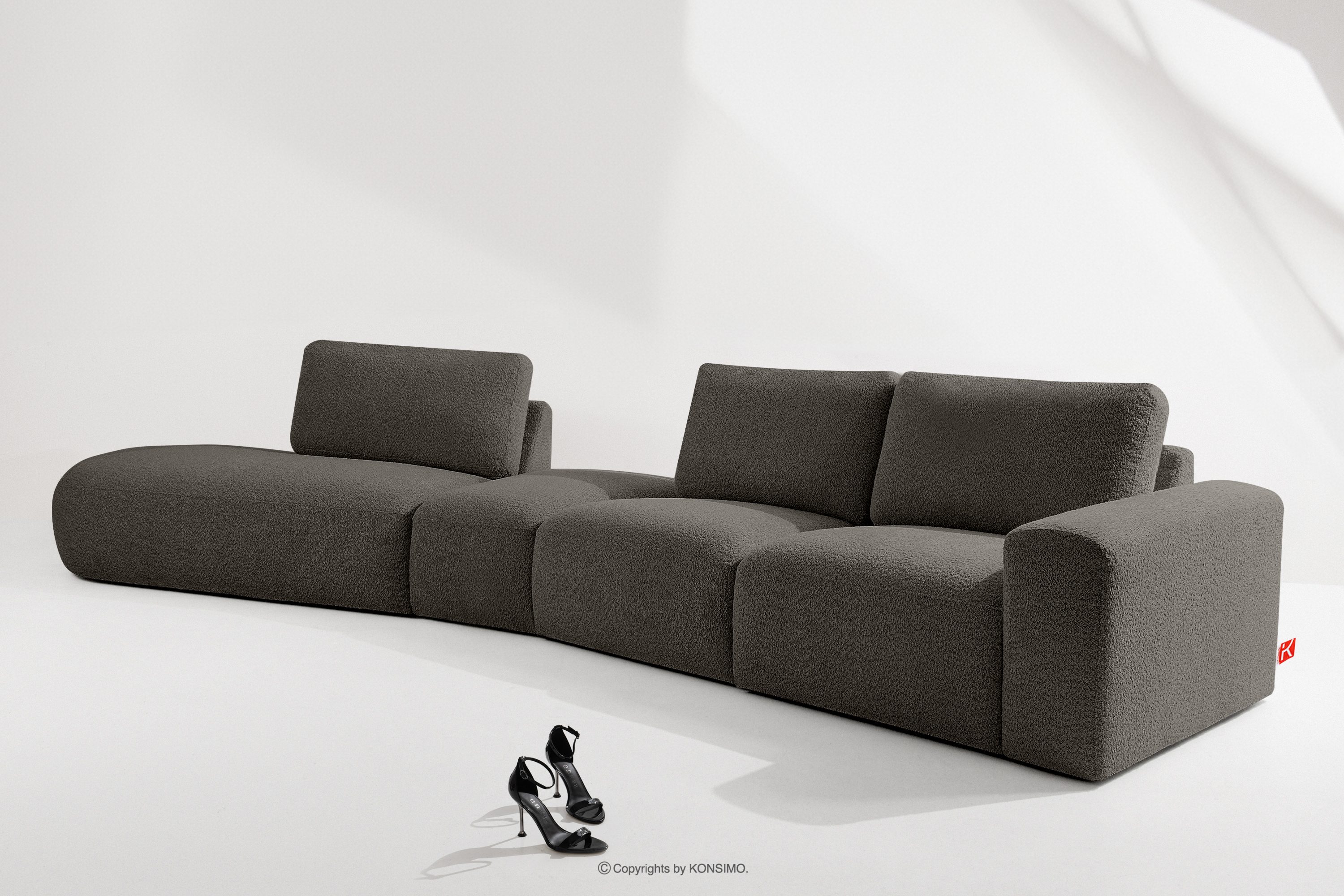 Duży narożnik do salonu boucle ciemny brązowy lewy to synonim nowoczesnego komfortu i elegancji. Wykonany z najwyższej jakości materiałów modułowość zapewnia dowolność użytkowania w zależności od potrzeb. Narożnik obity jest tkaniną boucle, co nadaje jej luksusowy wygląd, a także jest znana ze swojej trwałości oraz przyjemnej w dotyku faktury. Styl nowoczesny, w którym zaprojektowany jest narożnik ZUCCO, idealnie wpisuje się w aktualne trendy wnętrzarskie.