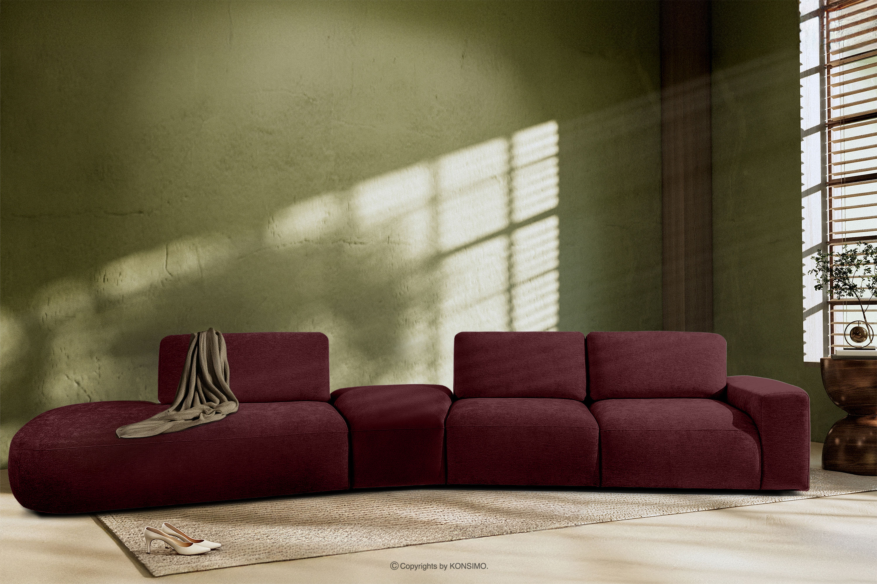 Duży narożnik do salonu szenil/welur fioletowy lewy to synonim nowoczesnego komfortu i elegancji. Wykonany z najwyższej jakości materiałów modułowość zapewnia dowolność użytkowania w zależności od potrzeb. Narożnik obity jest tkaniną szenilową i welurem, co nadaje mu luksusowy wygląd, a także jest łatwo go utrzymać w czystości. Tkanina szenilowa jest znana ze swojej trwałości oraz przyjemnej w dotyku faktury, natomiast welur dodaje elegancji i subtelnego połysku, tworząc wrażenie głębi koloru.