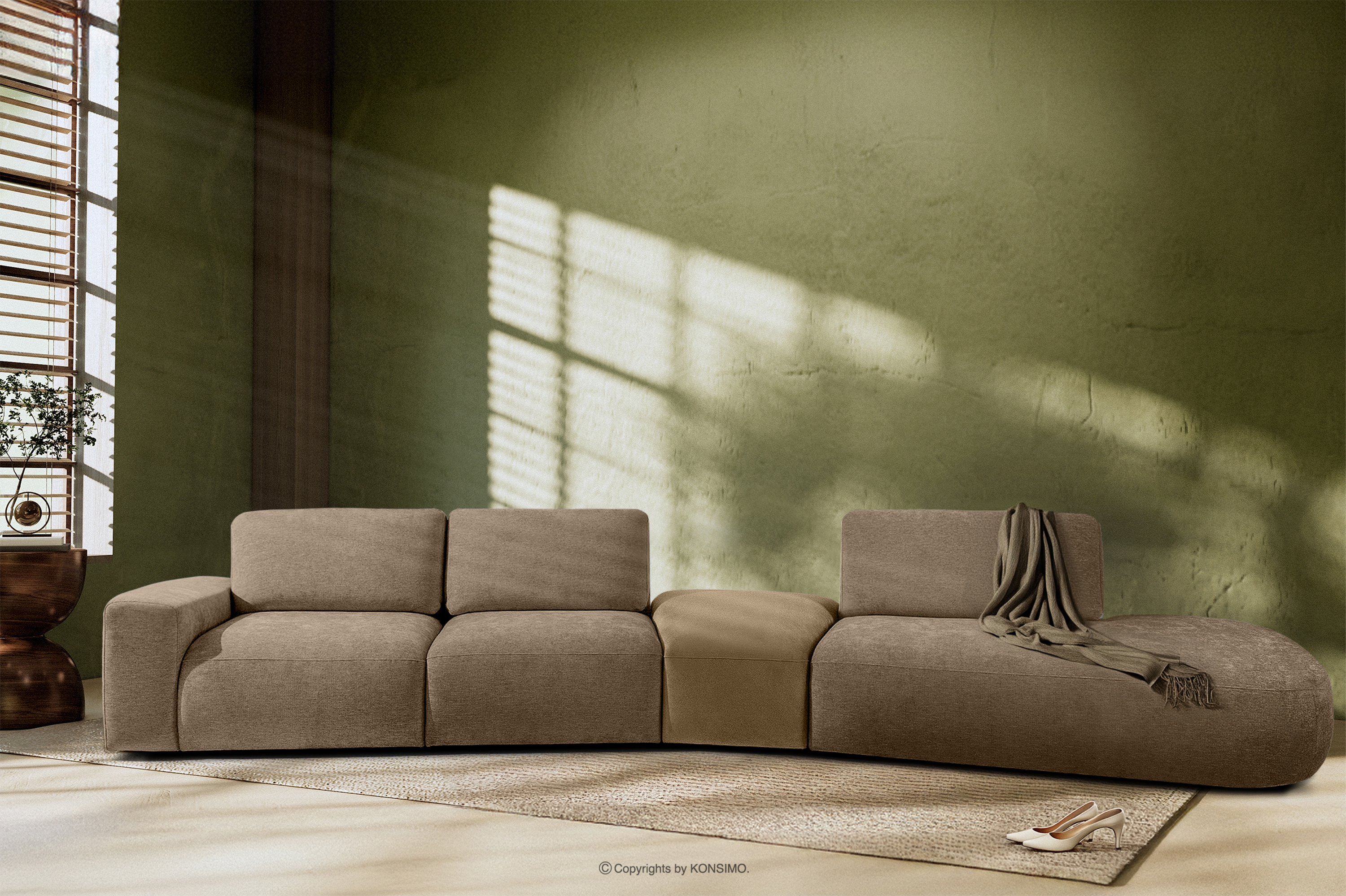Narożnik organic do salonu w tkaninie szenil/welur beżowy prawy to synonim nowoczesnego komfortu i elegancji. Wykonany z najwyższej jakości materiałów modułowość zapewnia dowolność użytkowania w zależności od potrzeb. Narożnik obity jest tkaniną szenilową i welurem, co nadaje mu luksusowy wygląd, a także jest łatwo go utrzymać w czystości. Tkanina szenilowa jest znana ze swojej trwałości oraz przyjemnej w dotyku faktury, natomiast welur dodaje elegancji i subtelnego połysku, tworząc wrażenie głębi koloru.