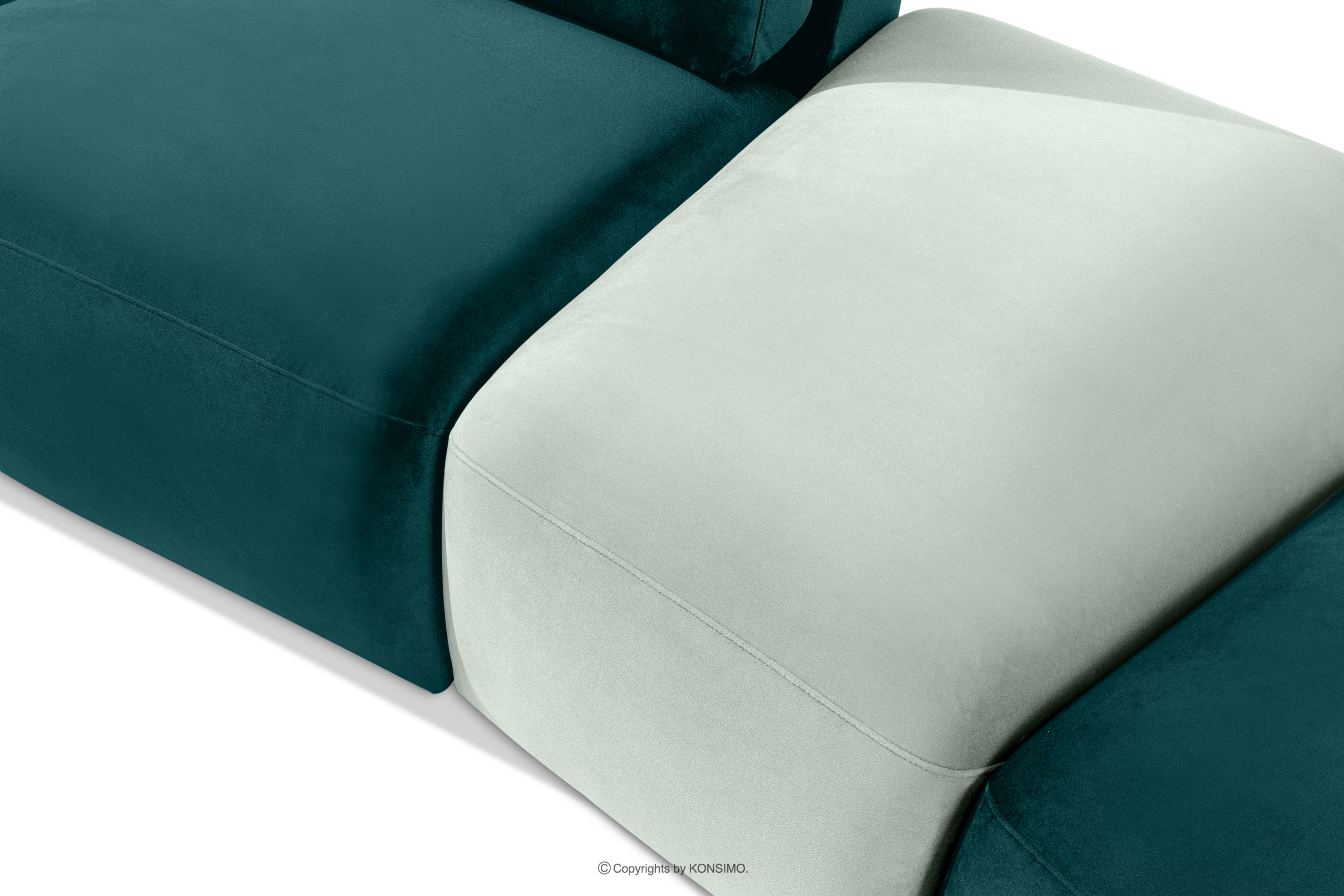 dla produktu Narożnik organic do salonu w tkaninie welur morski/miętowy prawy