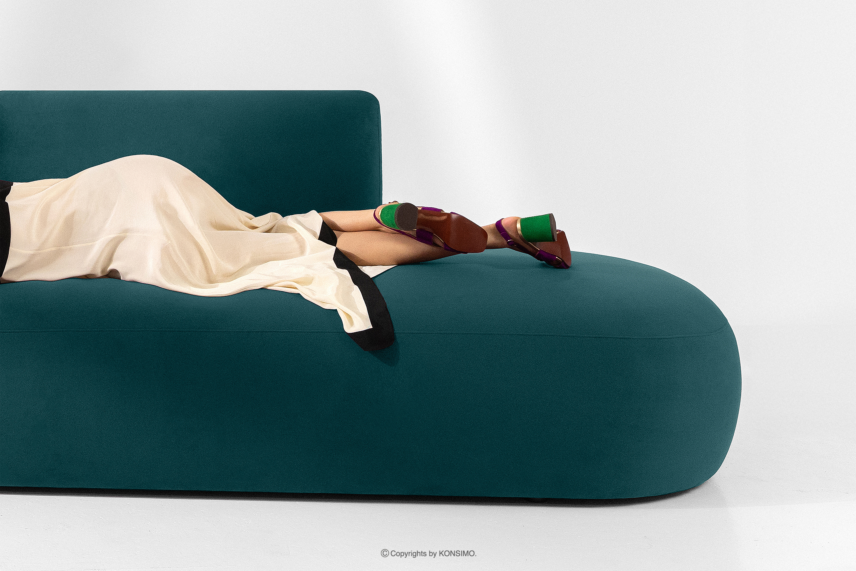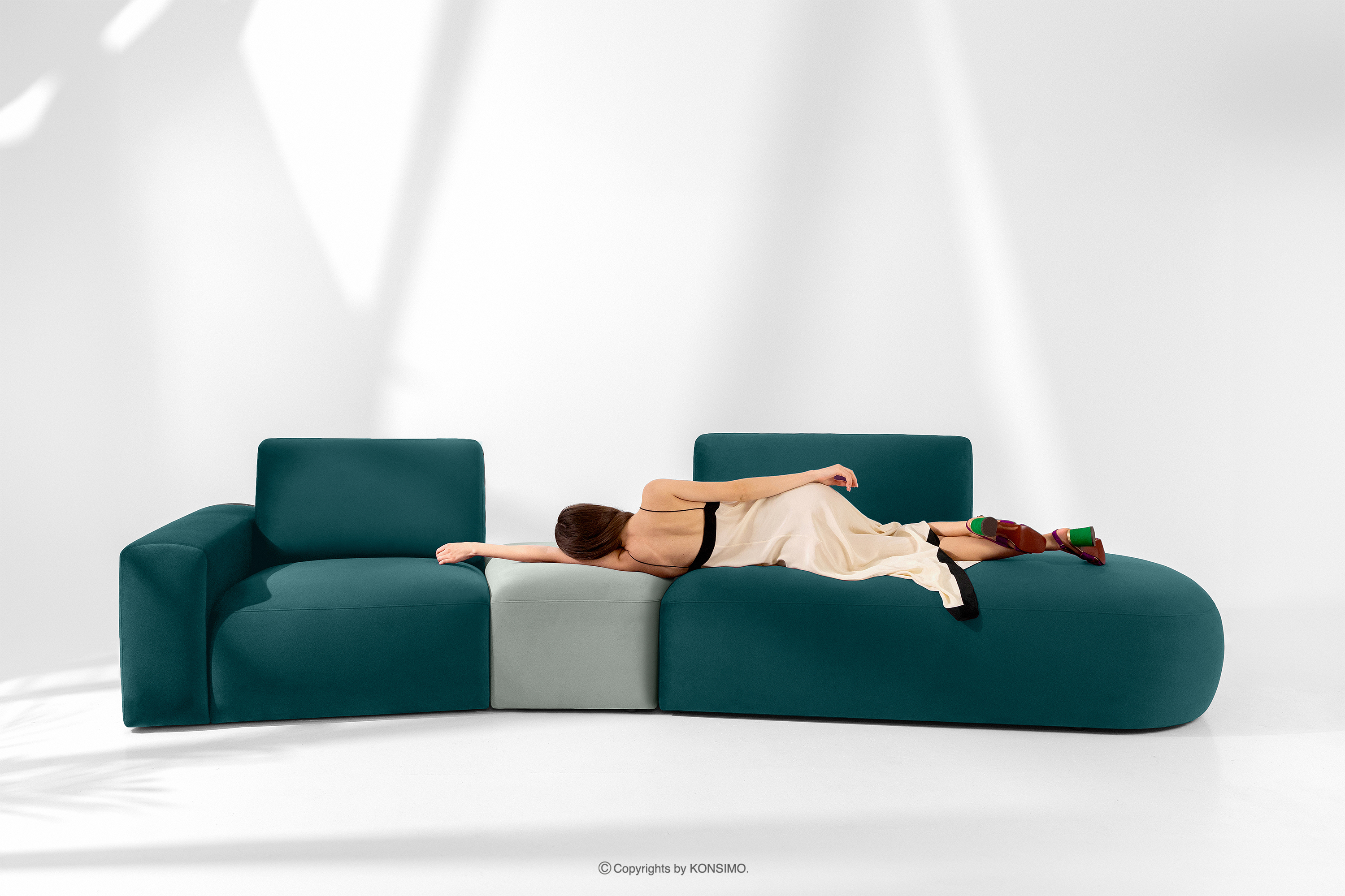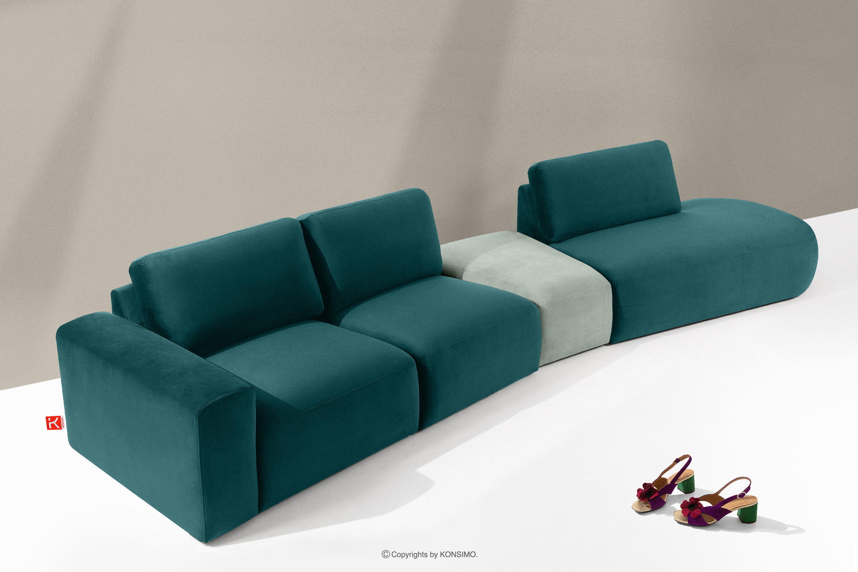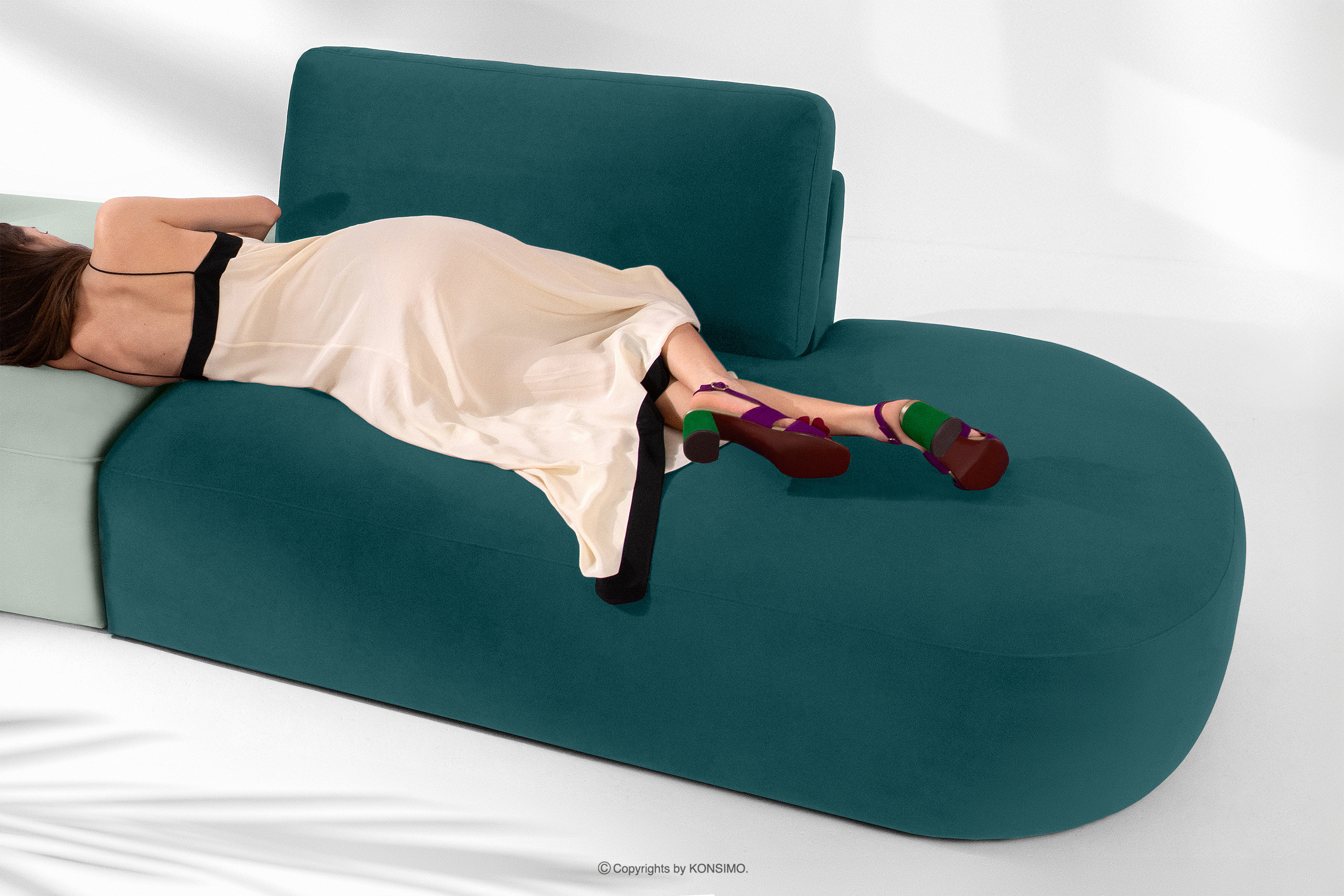 ZUCCO zobacz całą kolekcję Narożnik organic do salonu w tkaninie welur morski/miętowy prawy- kolor morski/miętowy