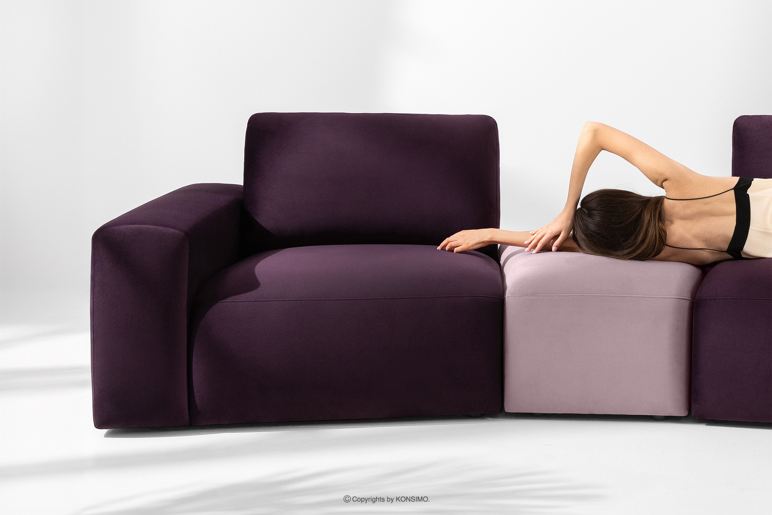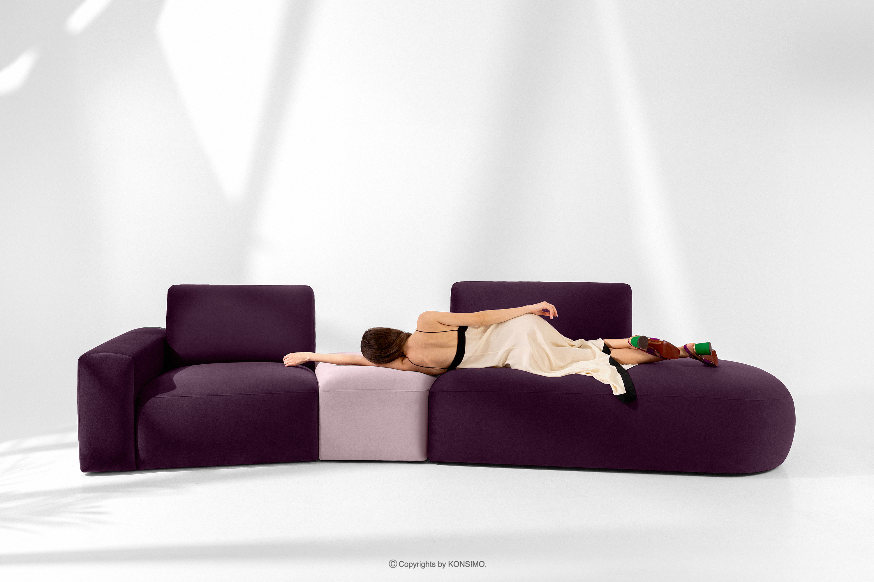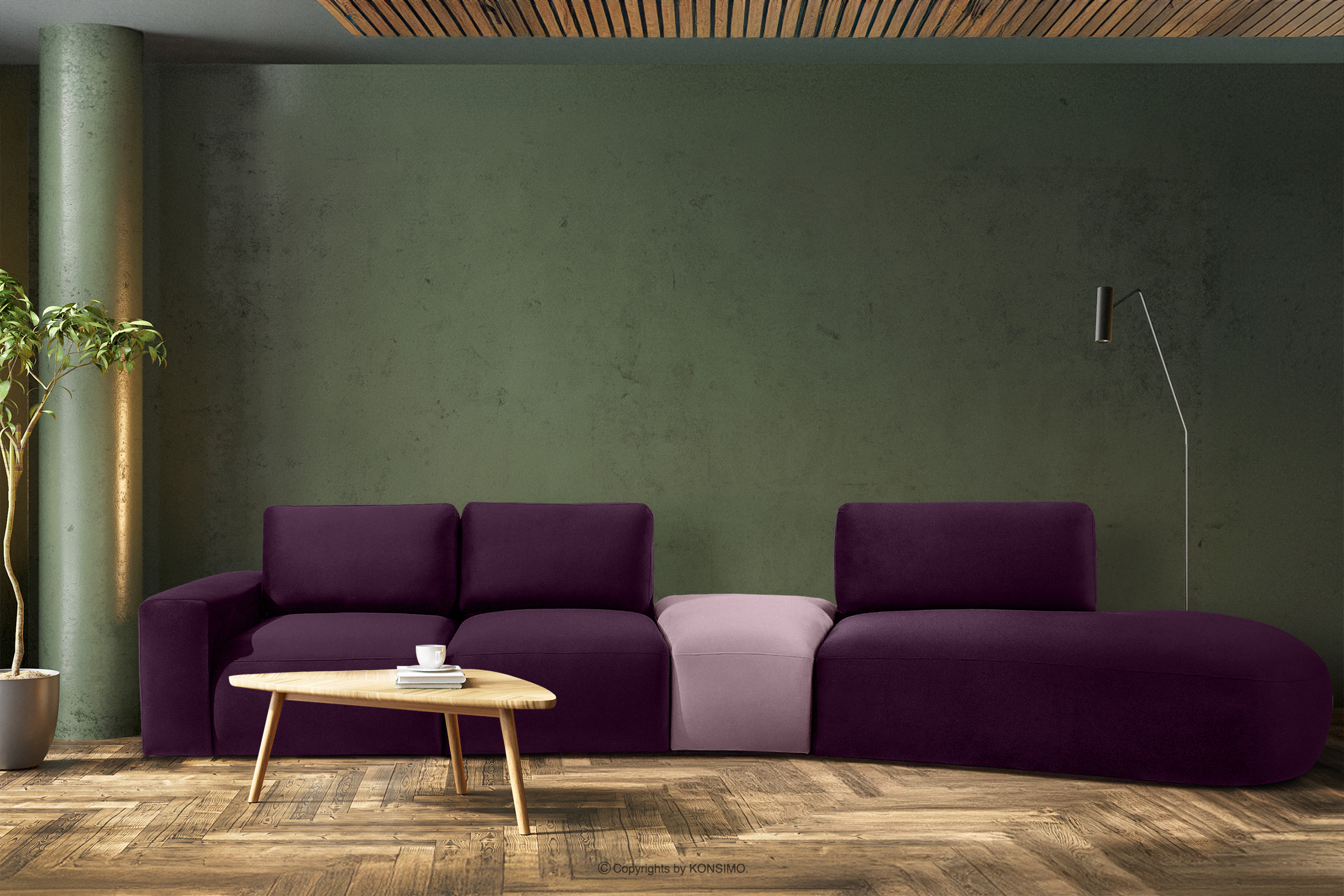 ZUCCO Narożnik organic do salonu w tkaninie welur fioletowy/różowy prawy