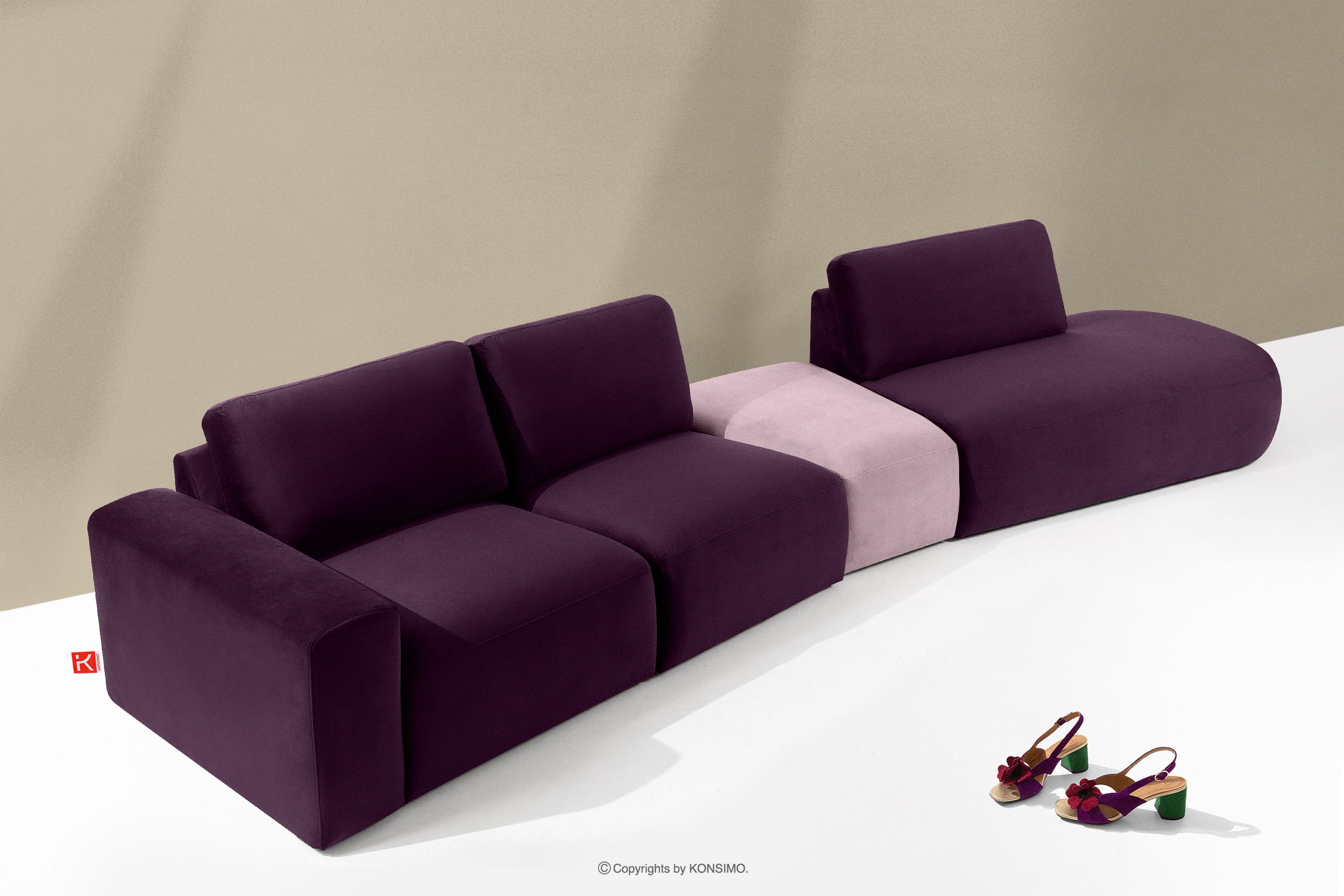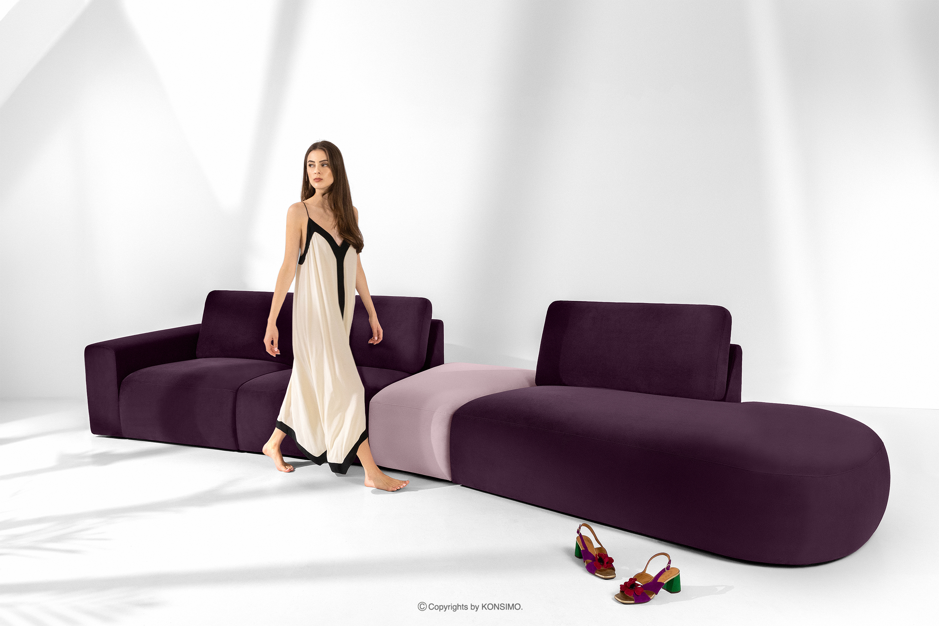 Narożnik organic do salonu w tkaninie welur fioletowy/różowy prawy to synonim nowoczesnego komfortu i elegancji. Wykonany z najwyższej jakości materiałów modułowość zapewnia dowolność użytkowania w zależności od potrzeb. Narożnik obity jest tkaniną welur, co nadaje mu luksusowy wygląd, a także jest łatwo go utrzymać w czystości. Styl nowoczesny, w którym zaprojektowany jest narożnik ZUCCO, idealnie wpisuje się w aktualne trendy wnętrzarskie.