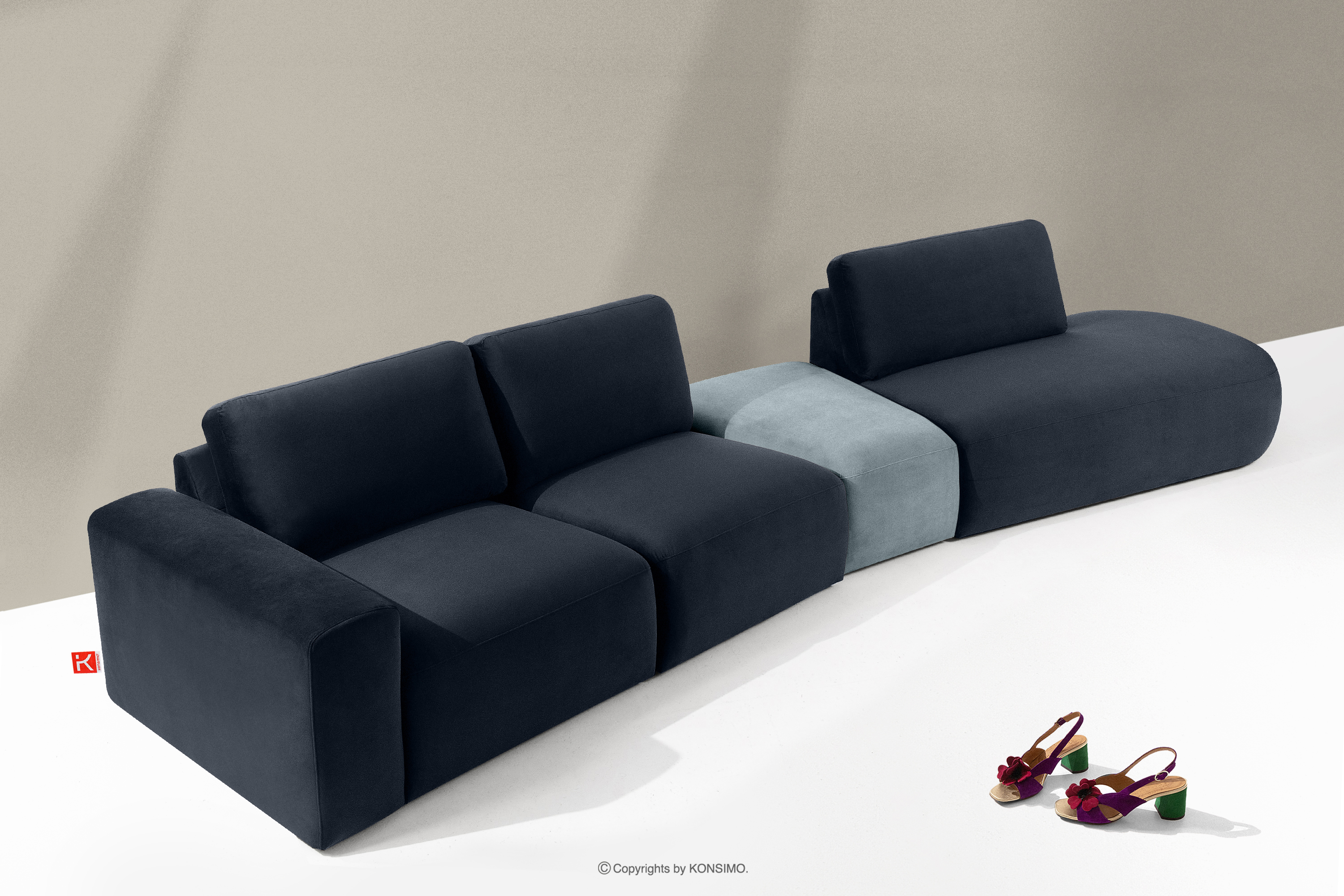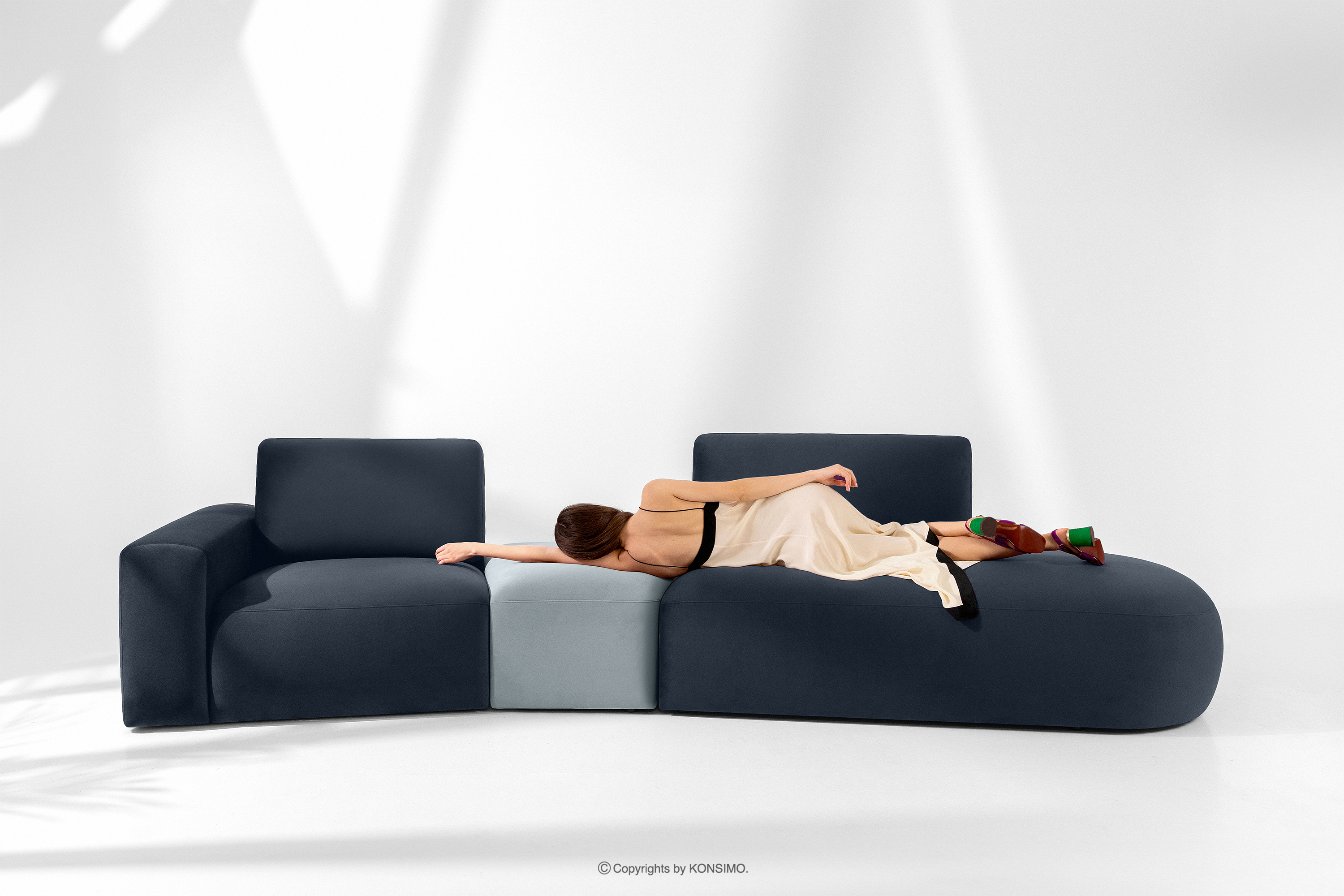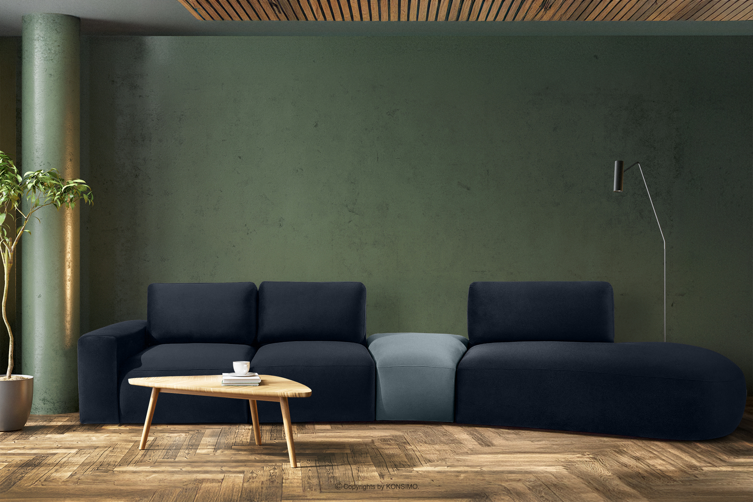 ZUCCO Narożnik organic do salonu w tkaninie welur granatowy/niebieski prawy