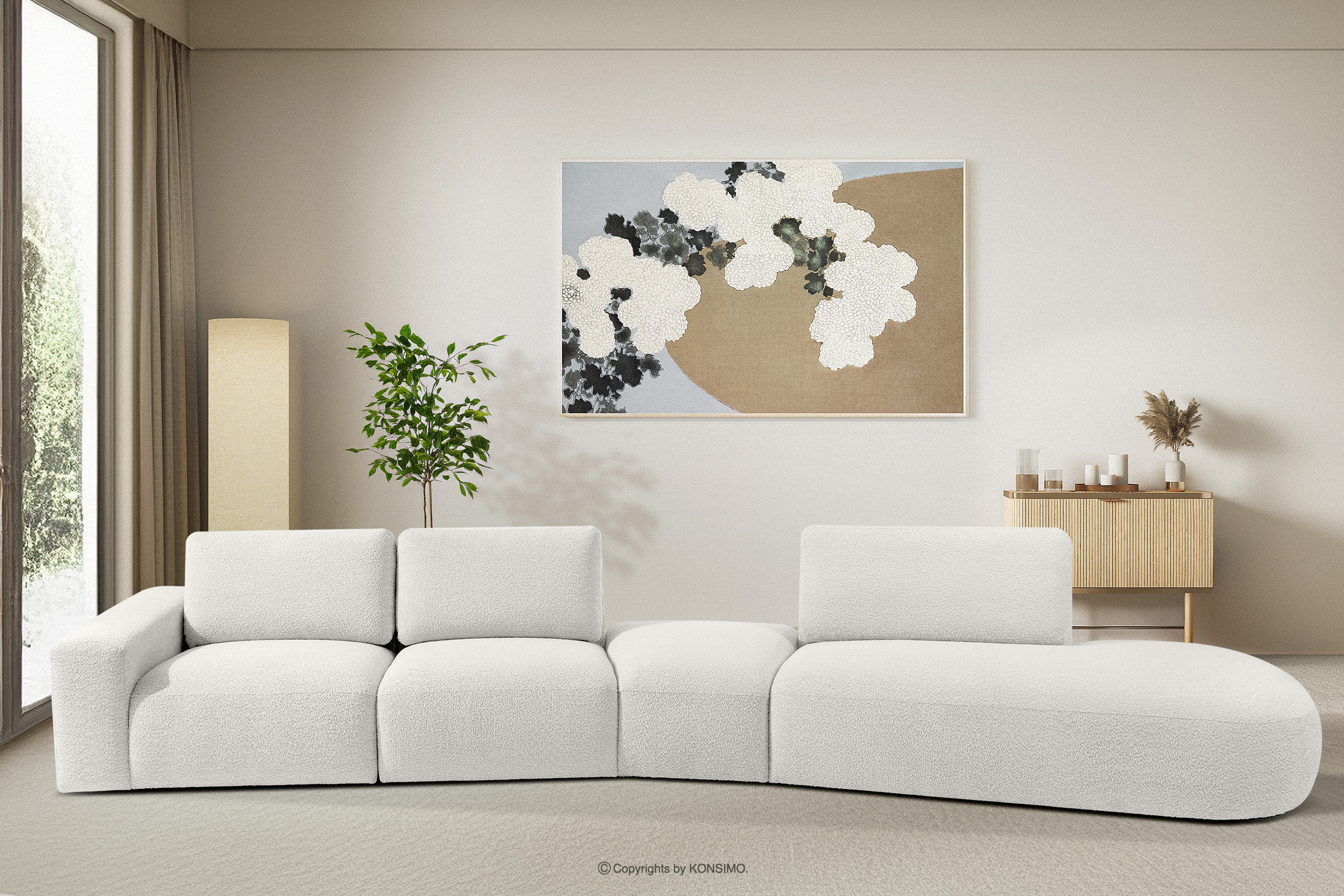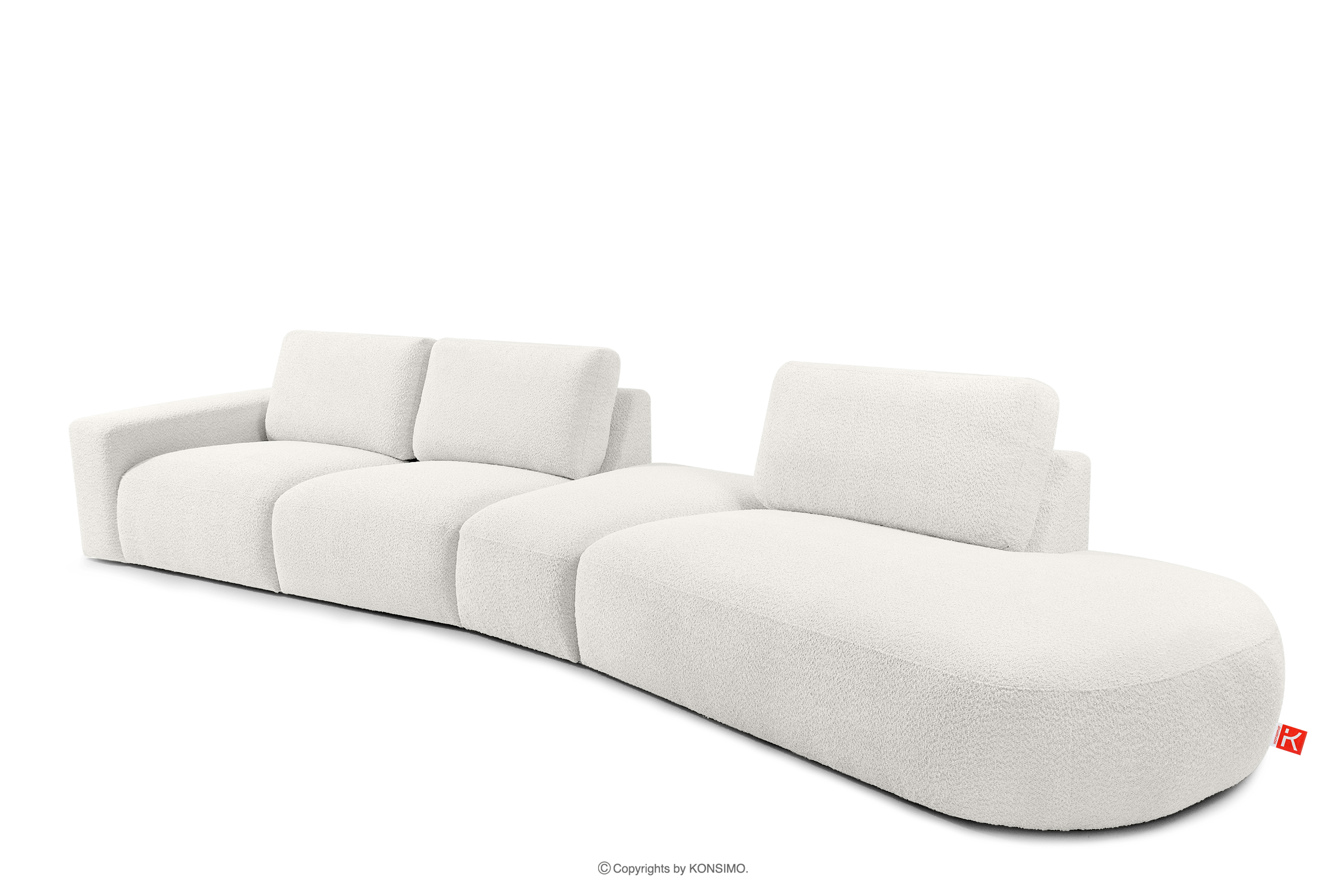Narożnik organic do salonu w tkaninie boucle ecru