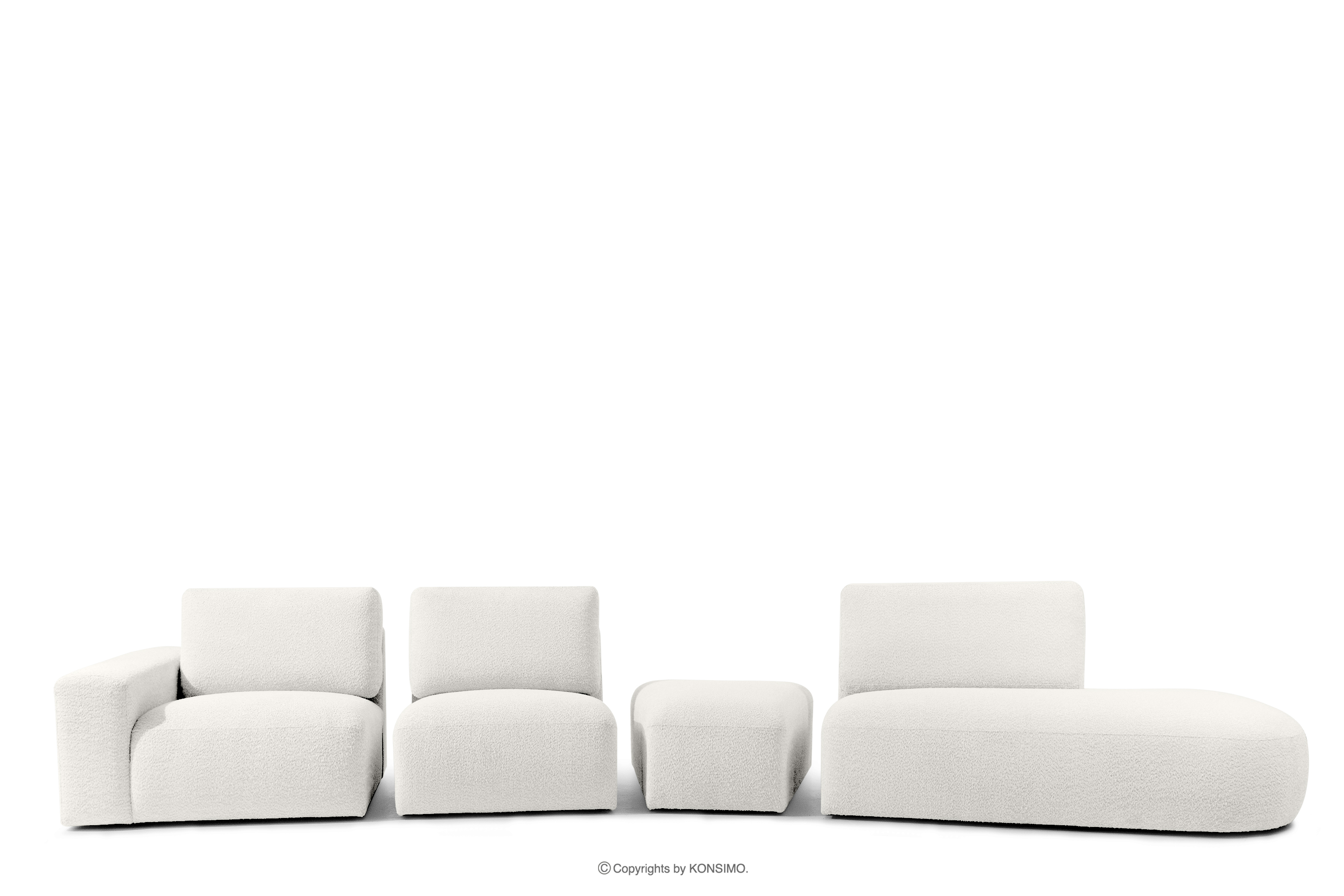 Narożnik organic do salonu w tkaninie boucle ecru ZUCCO - kolor ecru