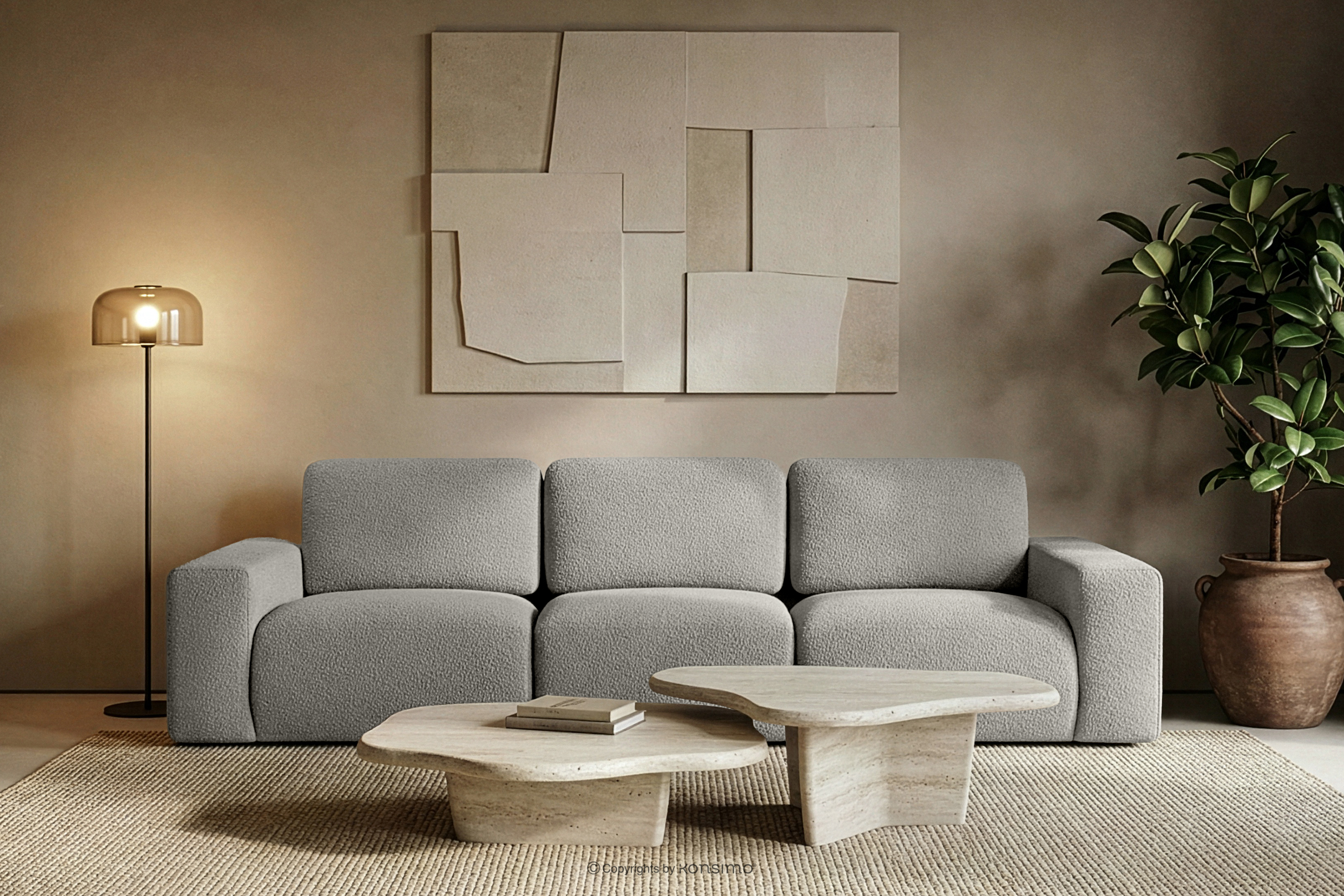 ZUCCO zobacz całą kolekcję Sofa trzyosobowa modułowa w tkaninie boucle jasny popielaty- kolor jasny popielaty