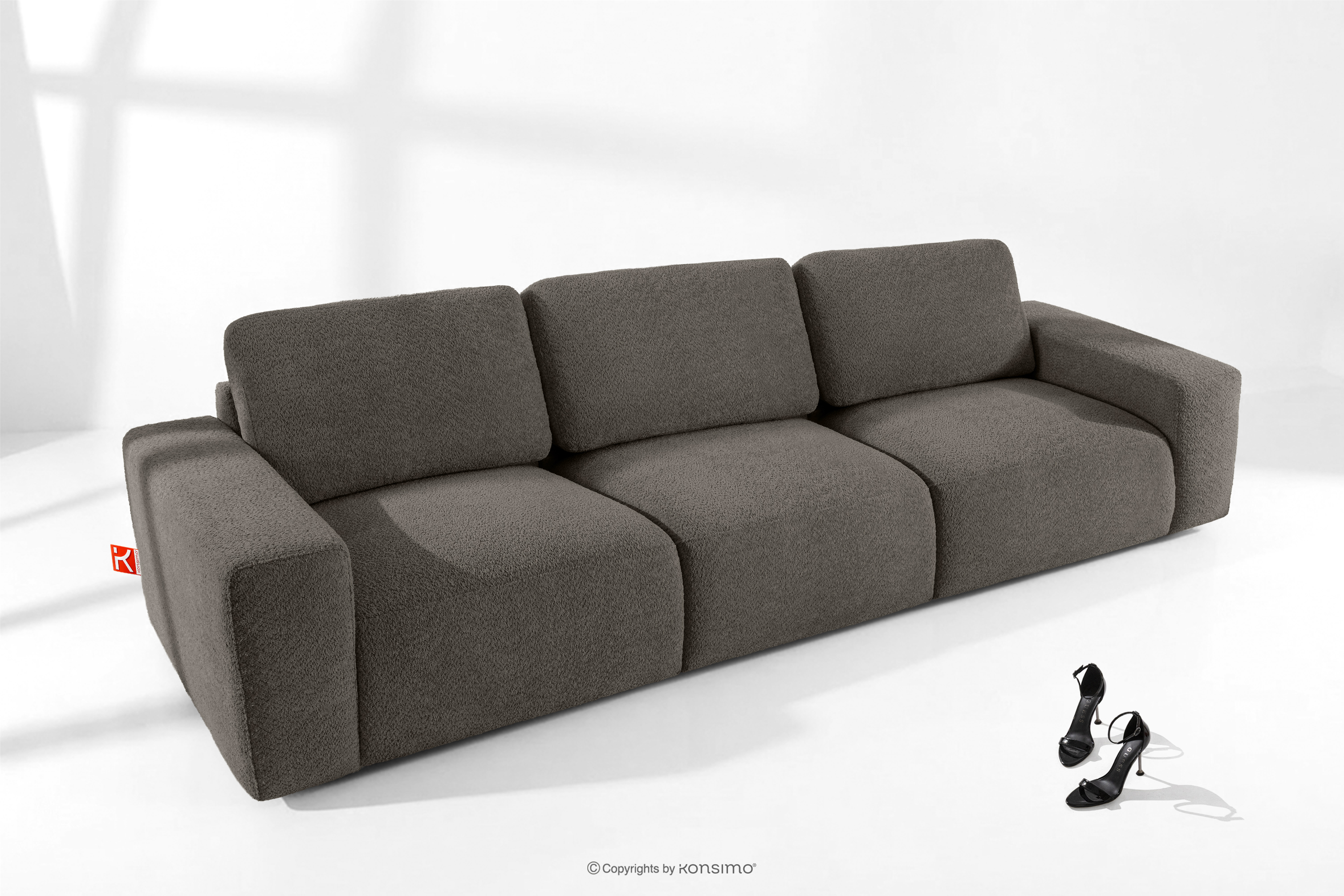 ZUCCO zobacz całą kolekcję Sofa trzyosobowa modułowa w tkaninie boucle ciemny brązowy- kolor ciemny brązowy