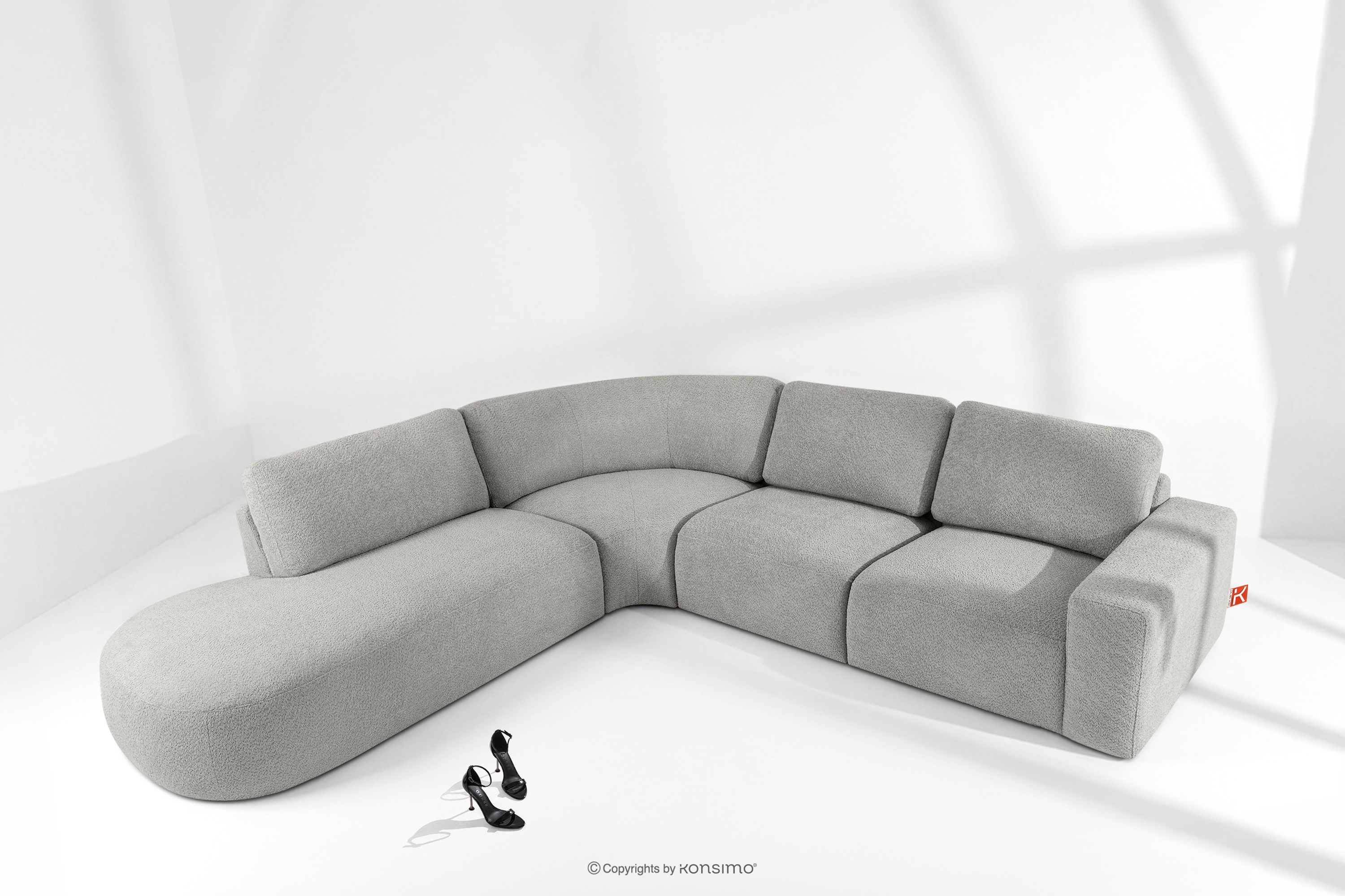 ZUCCO zobacz całą kolekcję Duży narożnik modułowy w tkaninie boucle lewy jasny popielaty- kolor jasny popielaty
