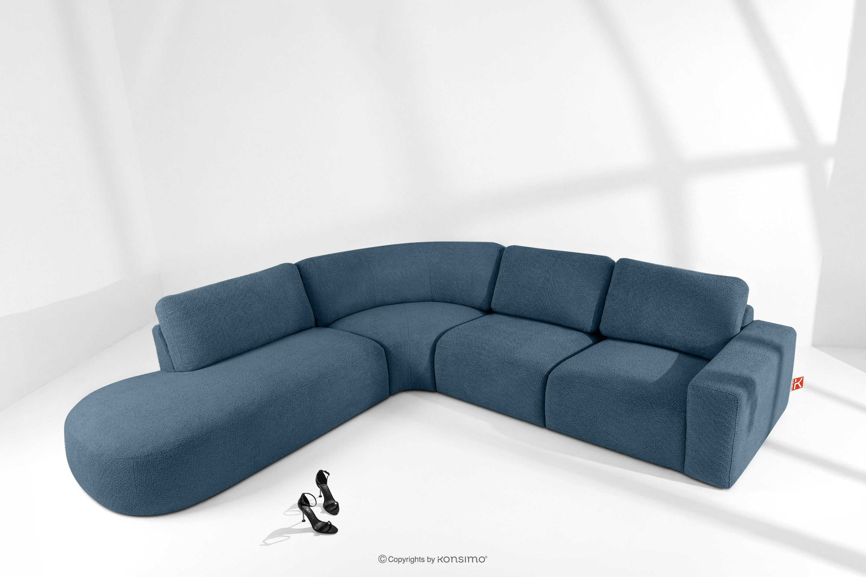 ZUCCO zobacz całą kolekcję Duży narożnik modułowy w tkaninie boucle lewy ciemny niebieski- kolor ciemny niebieski