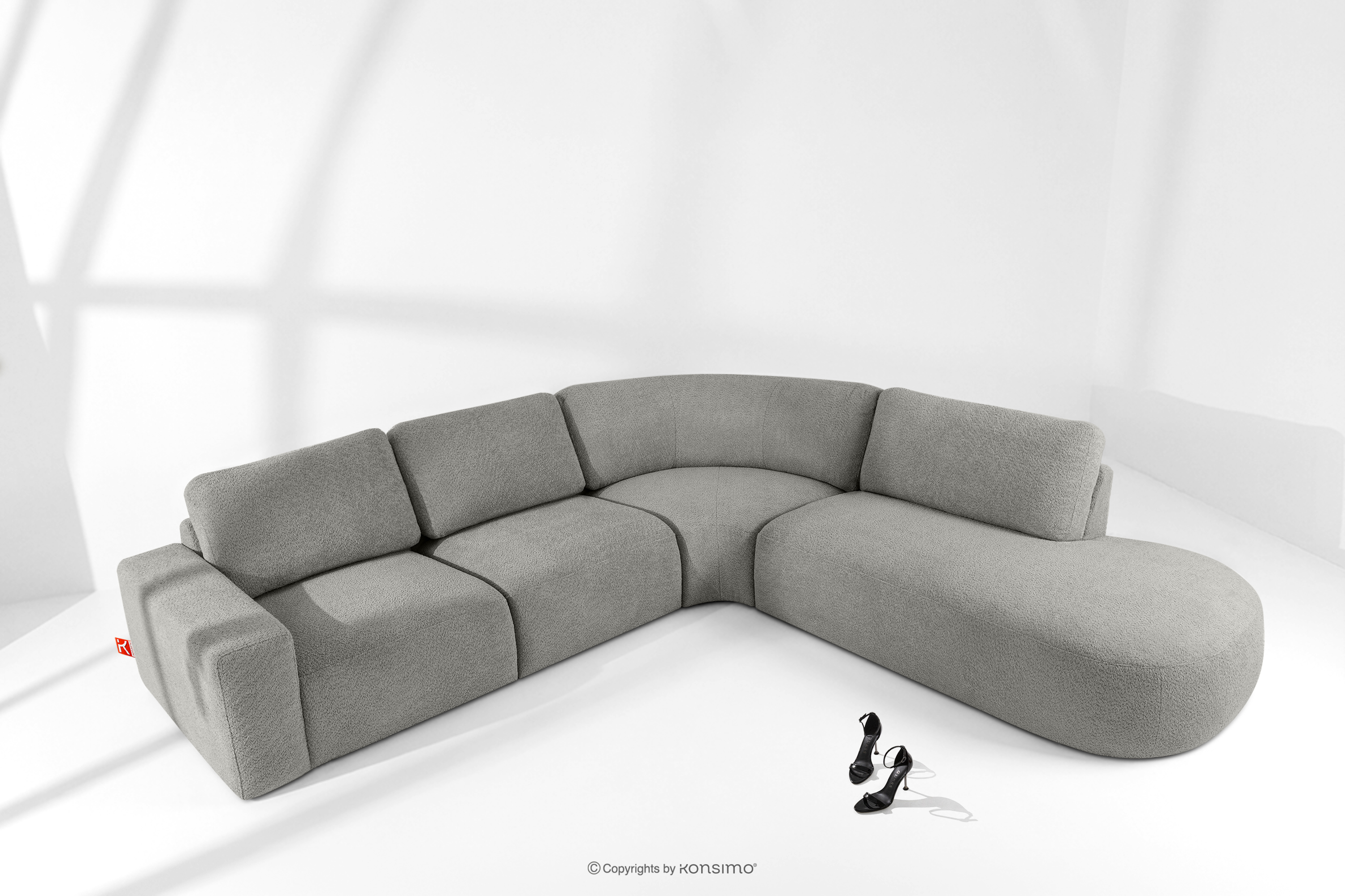 ZUCCO zobacz całą kolekcję Duży narożnik modułowy w tkaninie boucle prawy ciemny popielaty- kolor ciemny popielaty