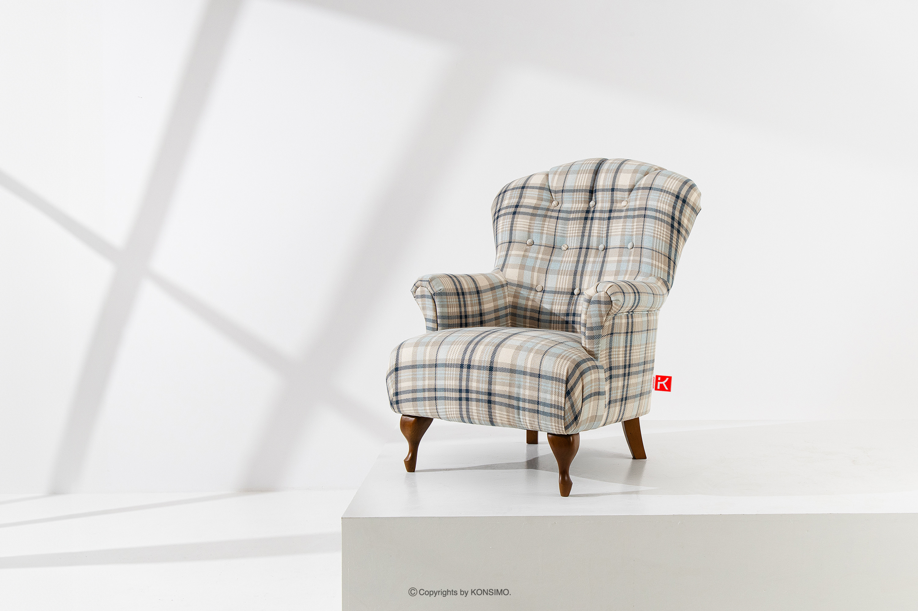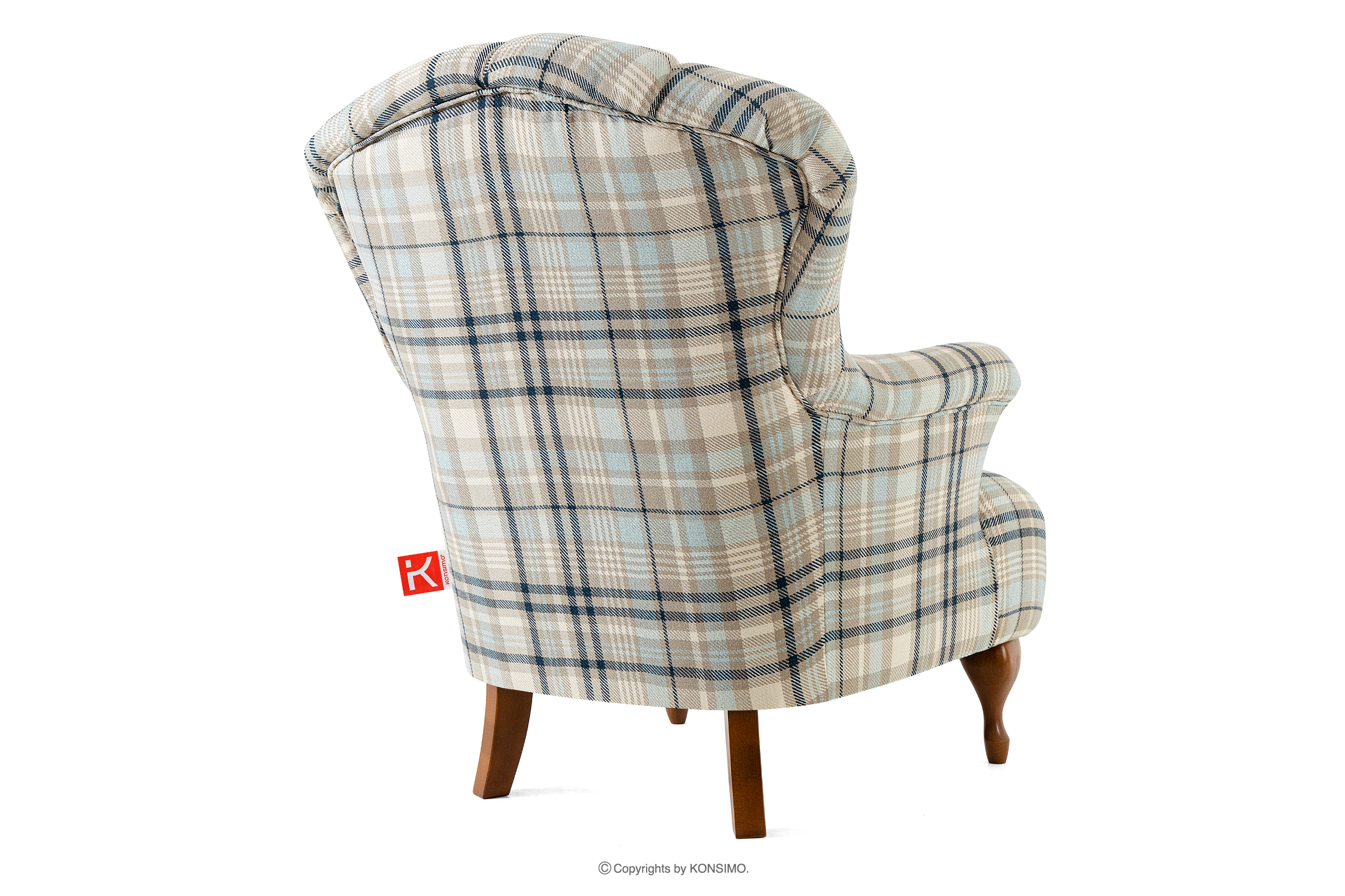 TOMIS zobacz całą kolekcję Klasyczny fotel do salonu beżowy/niebieski tkanina pleciona- kolor beżowy/niebieski