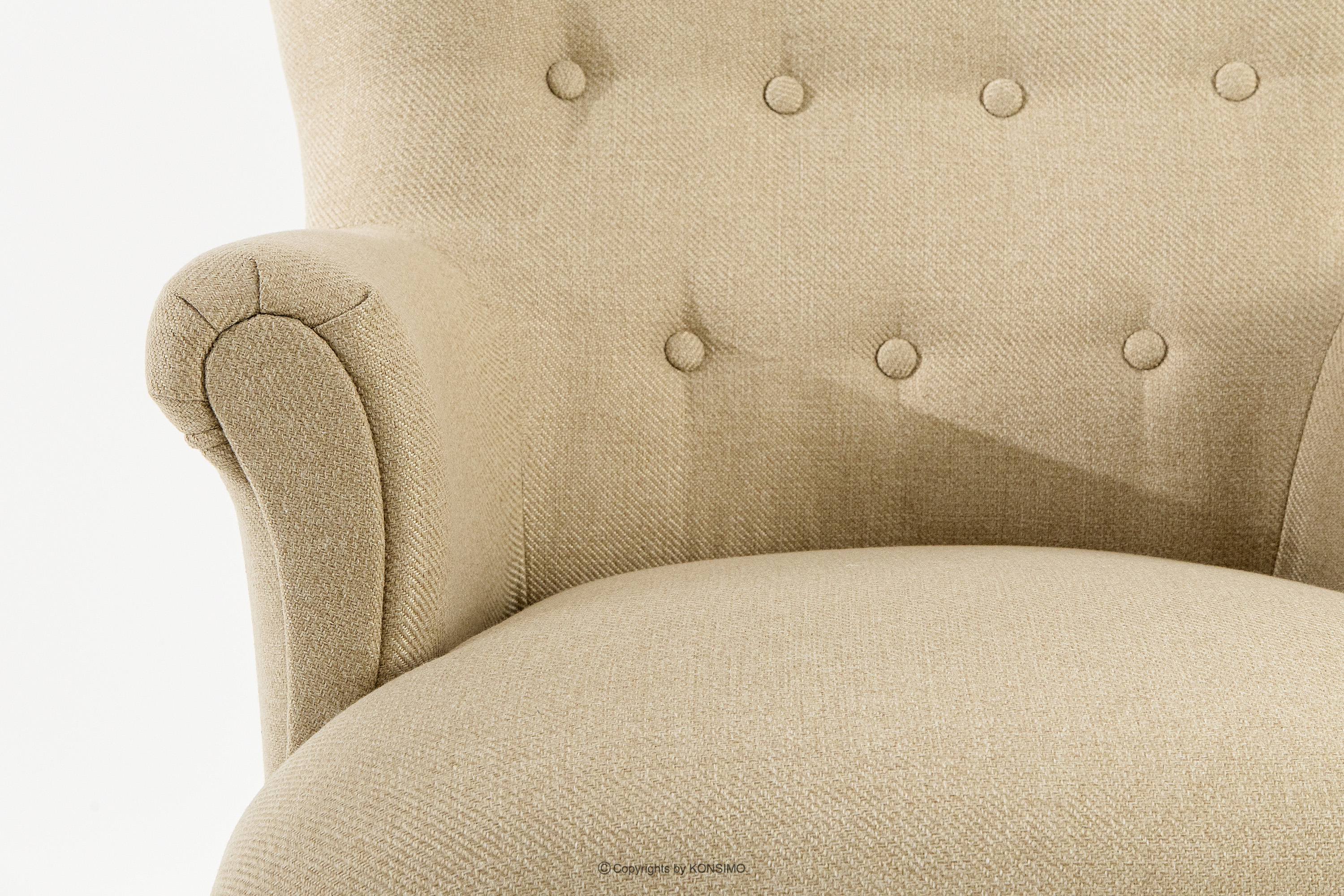 TOMIS zobacz całą kolekcję Klasyczny fotel i puf beżowy tkanina pleciona- kolor beżowy