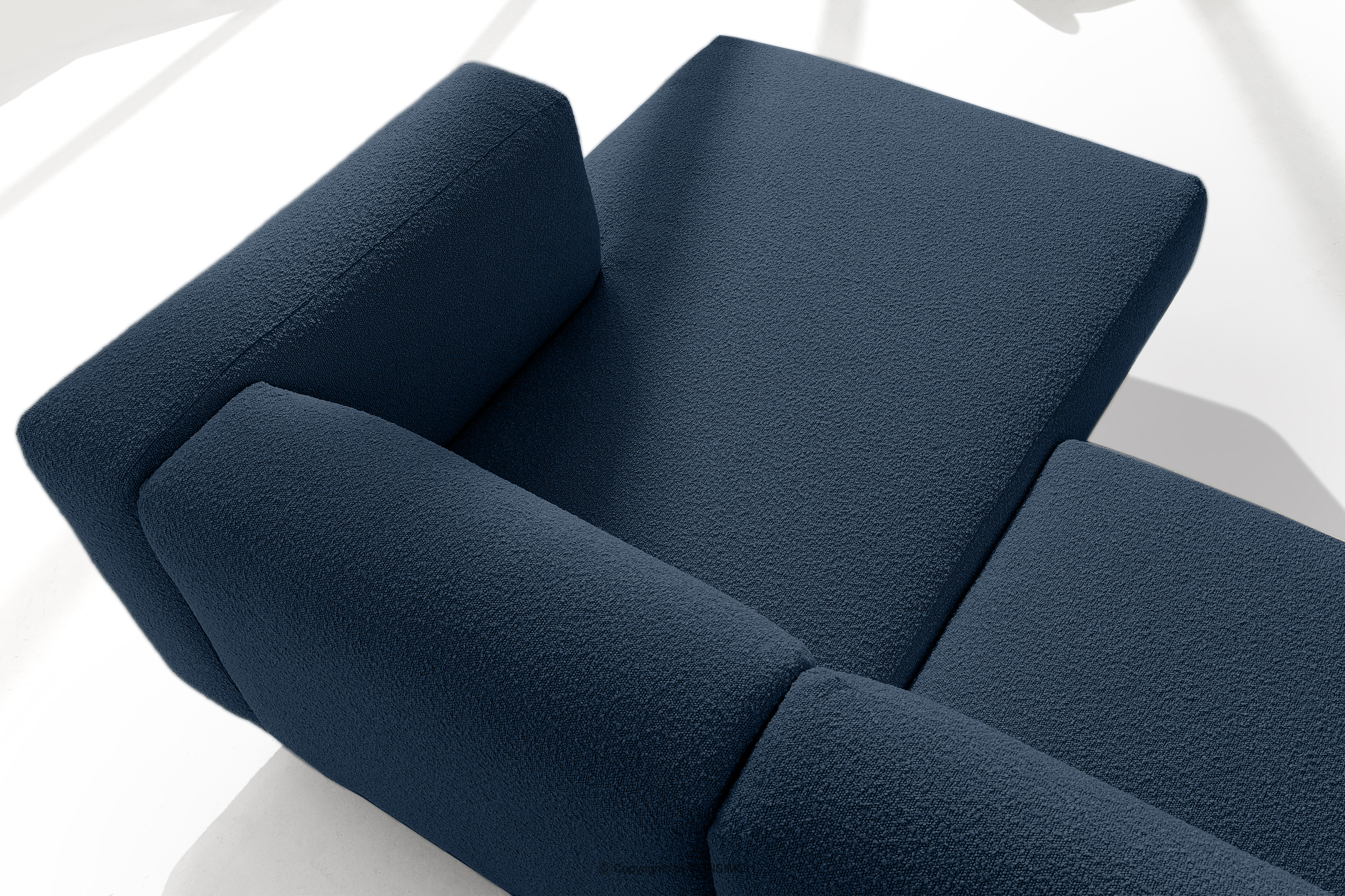 FOSERO zobacz całą kolekcję Narożnik na wysokich nóżkach w stylu skandynawskim boucle prawy granatowy- kolor granatowy
