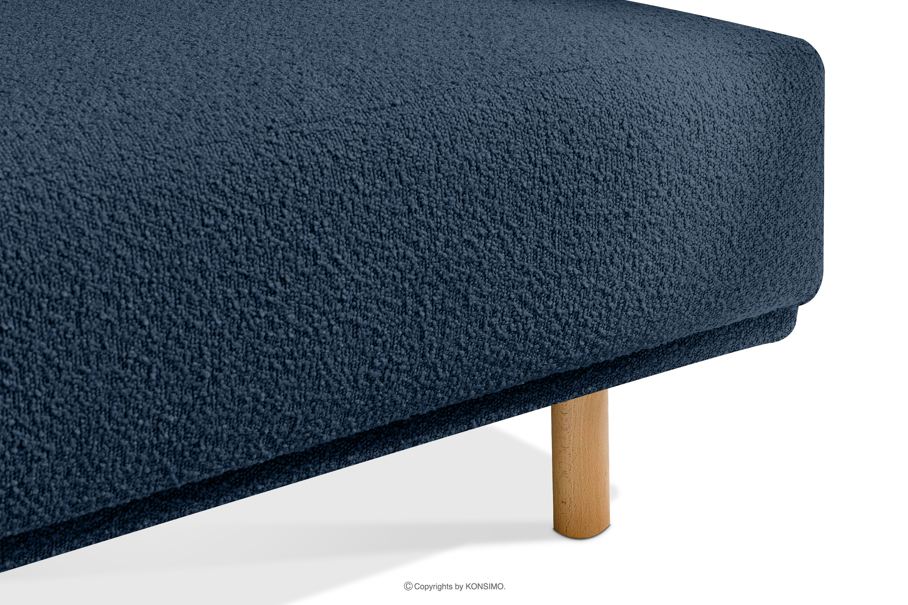 dla produktu Narożnik na wysokich nóżkach w stylu skandynawskim boucle prawy granatowy