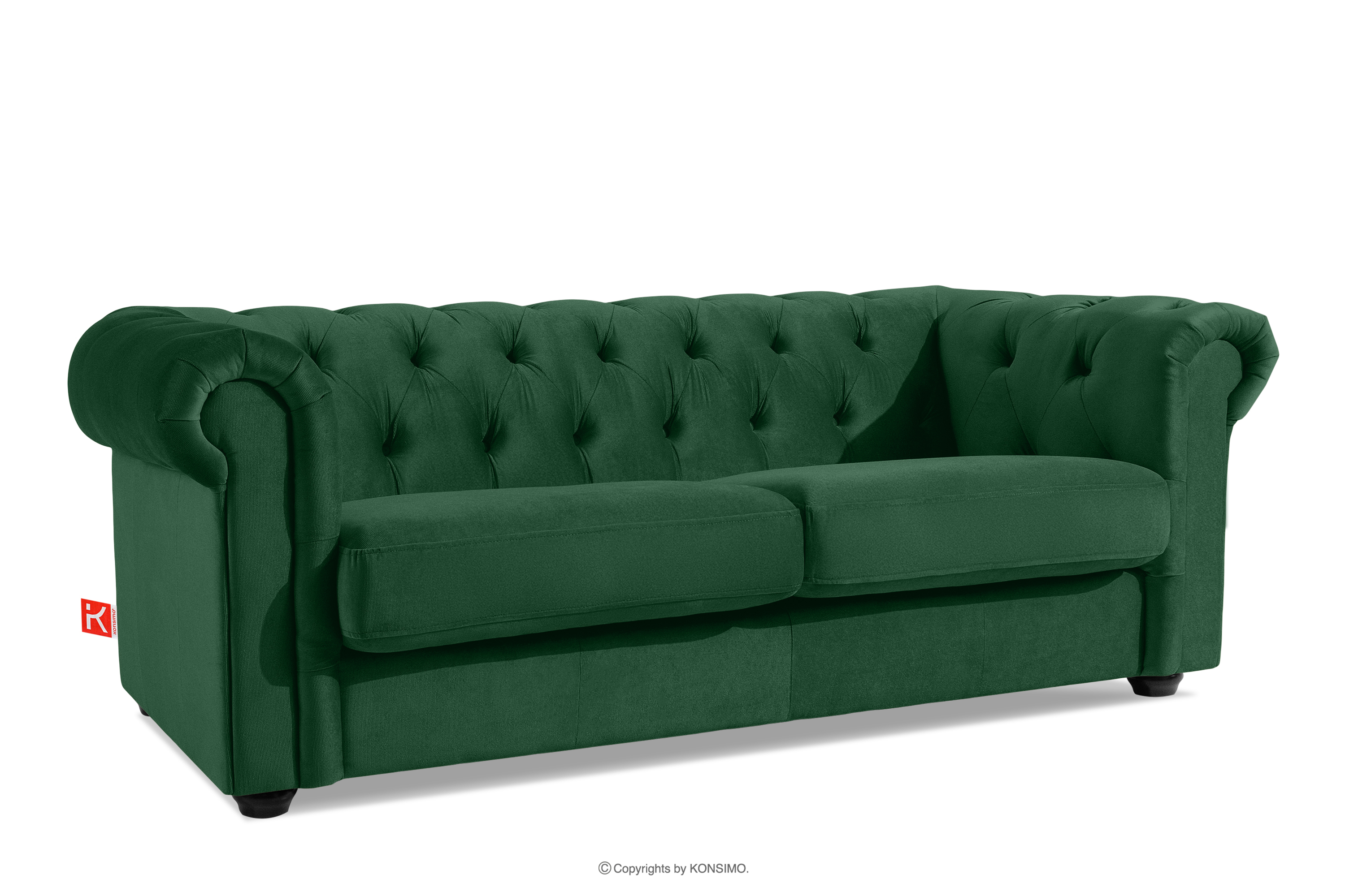 GRAVO zobacz całą kolekcję Klasyczna sofa trzyosobowa chesterfield w welurze ciemny zielony- kolor ciemny zielony