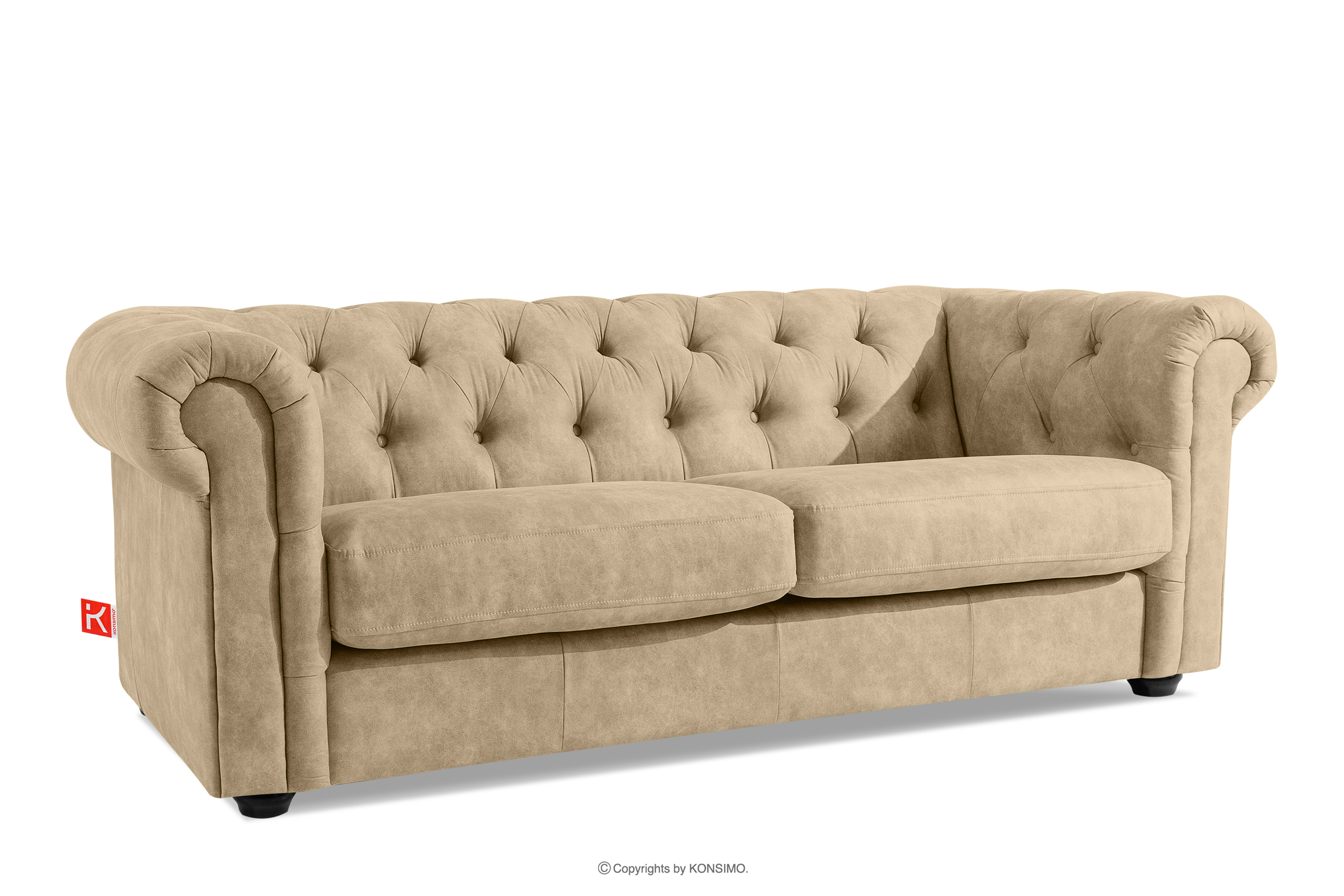 GRAVO zobacz całą kolekcję Sofa chesterfield trzyosobowa w ekoskórze jasny beżowy- kolor jasny beżowy