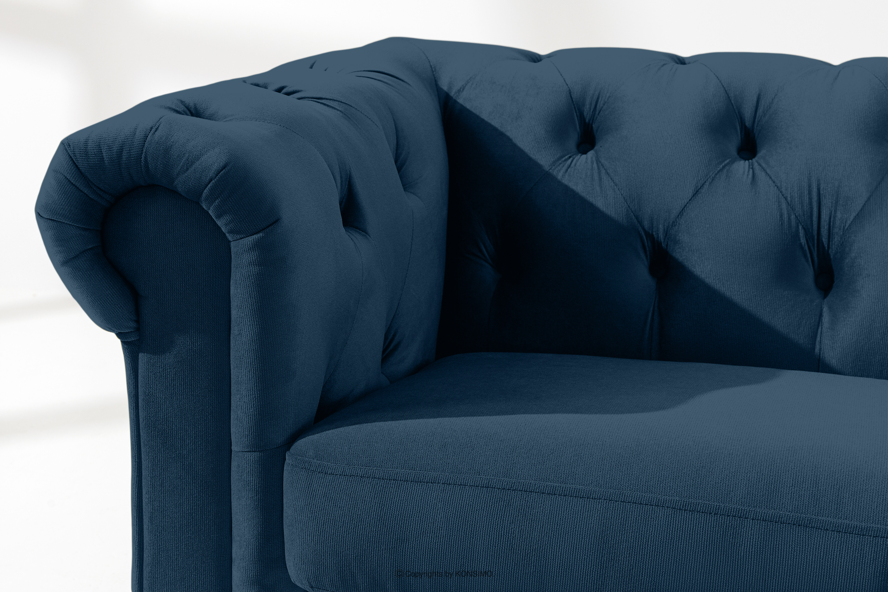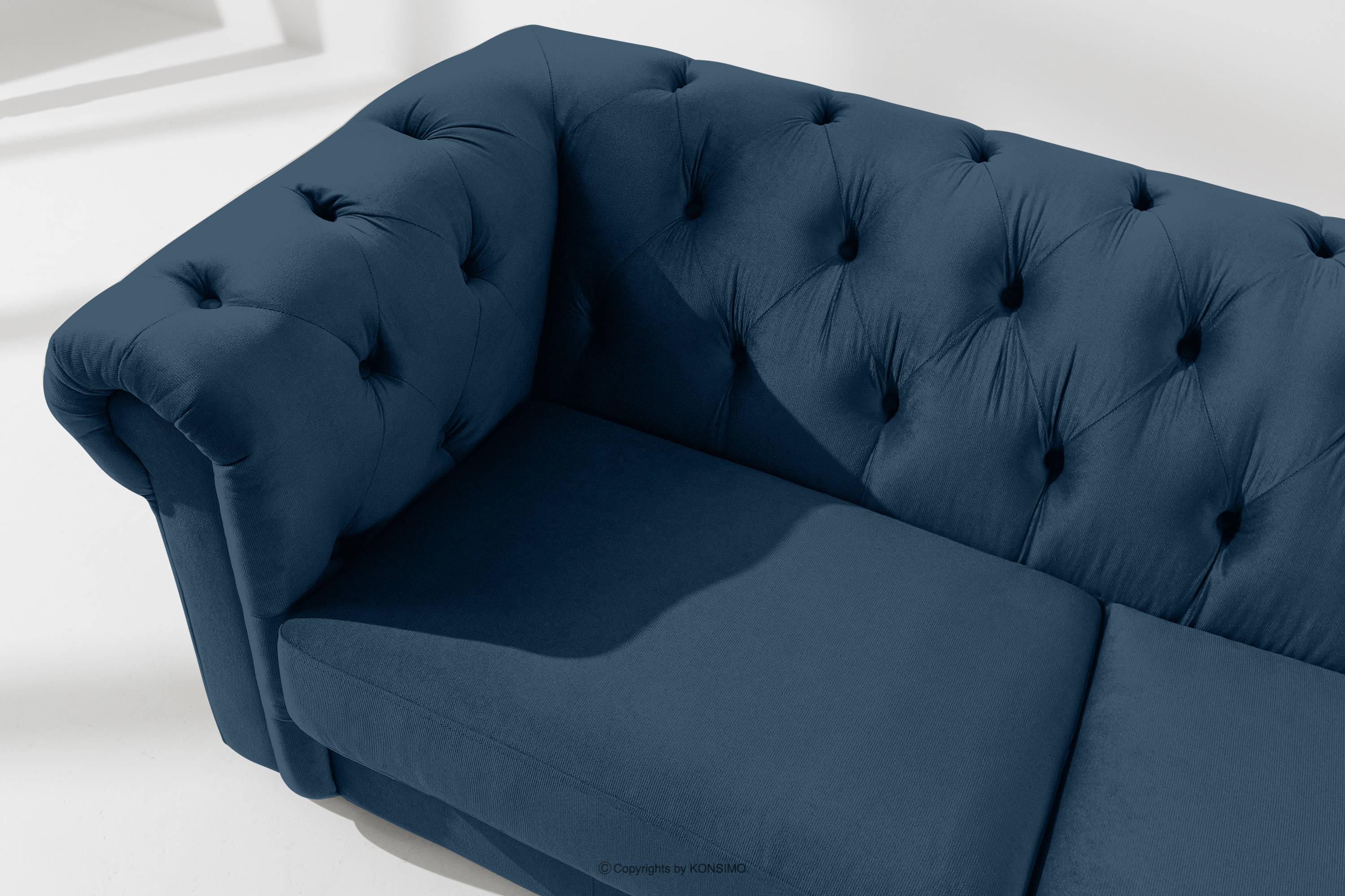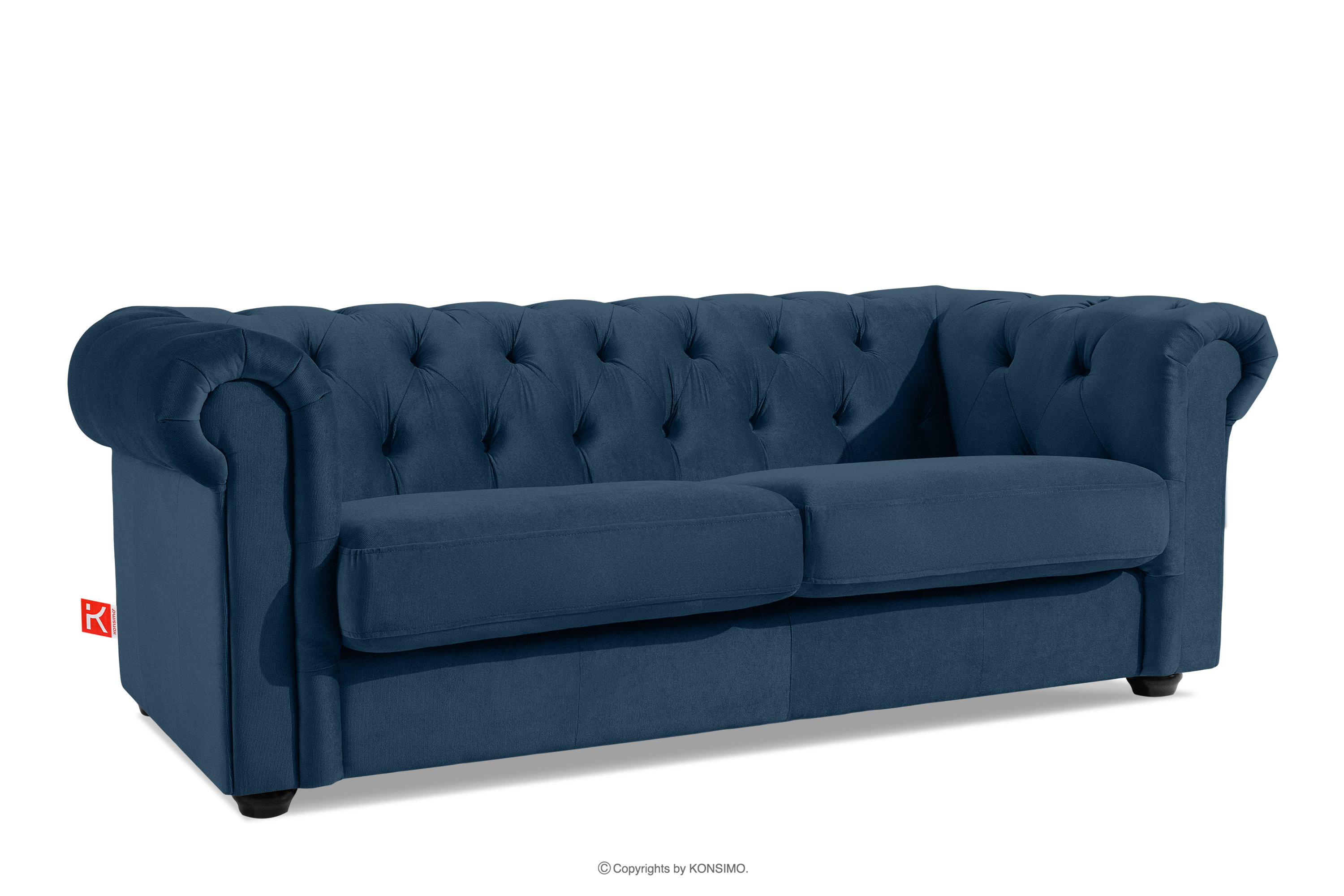 Klasyczna sofa trzyosobowa chesterfield w welurze granatowy GRAVO - kolor granatowy