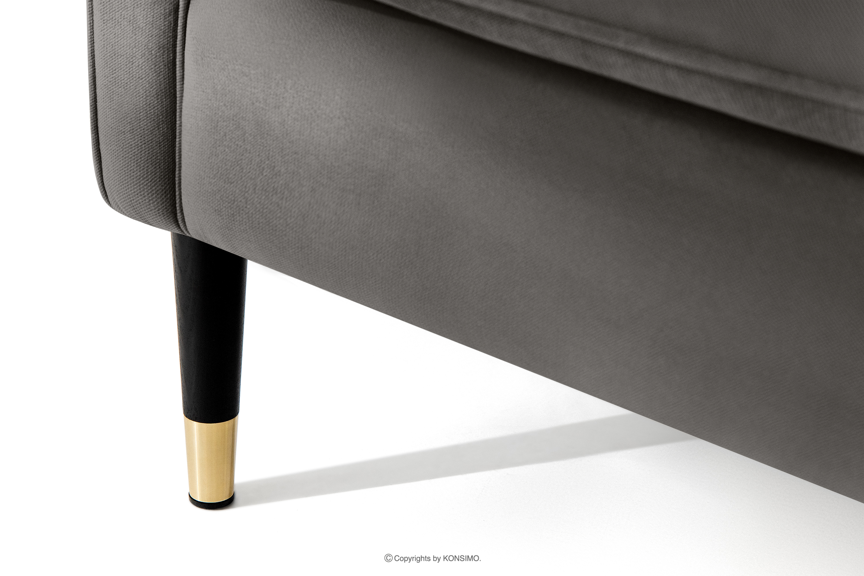 Doskonale sprawdzi się zarówno w eleganckim salonie, jak i w prestiżowym gabinecie czy ekskluzywnej poczekalni. Wysokie nóżki w kolorze ciemnego wenge z delikatnym złotym akcentem to elegancki detal, który dodaje sofie lekkości oraz klasy. To nie jedyna zaleta, ponieważ ułatwiają także utrzymanie czystości pod nim – odkurzanie czy mycie podłogi staje się znacznie prostsze.