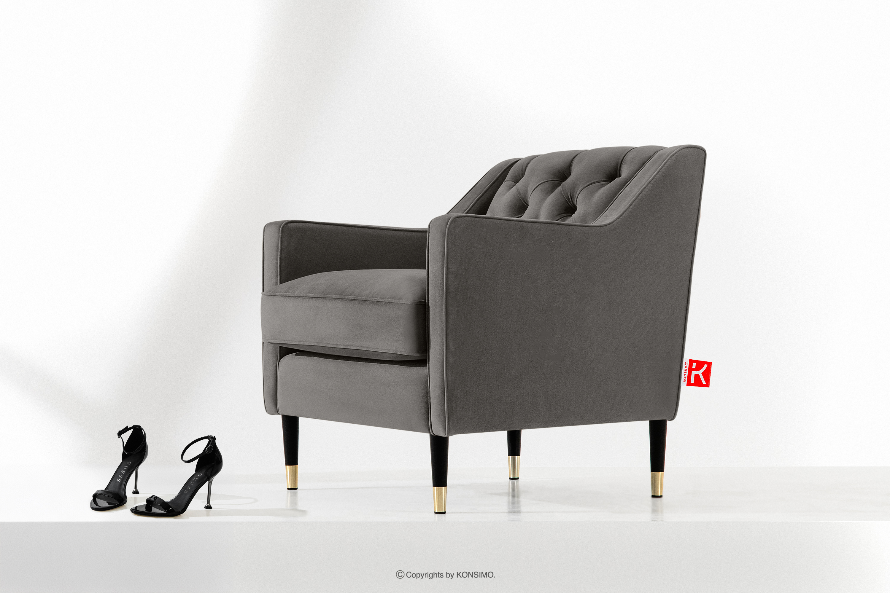 NOMUS zobacz całą kolekcję Elegancki fotel do salonu w tkaninie welur szary- kolor szary
