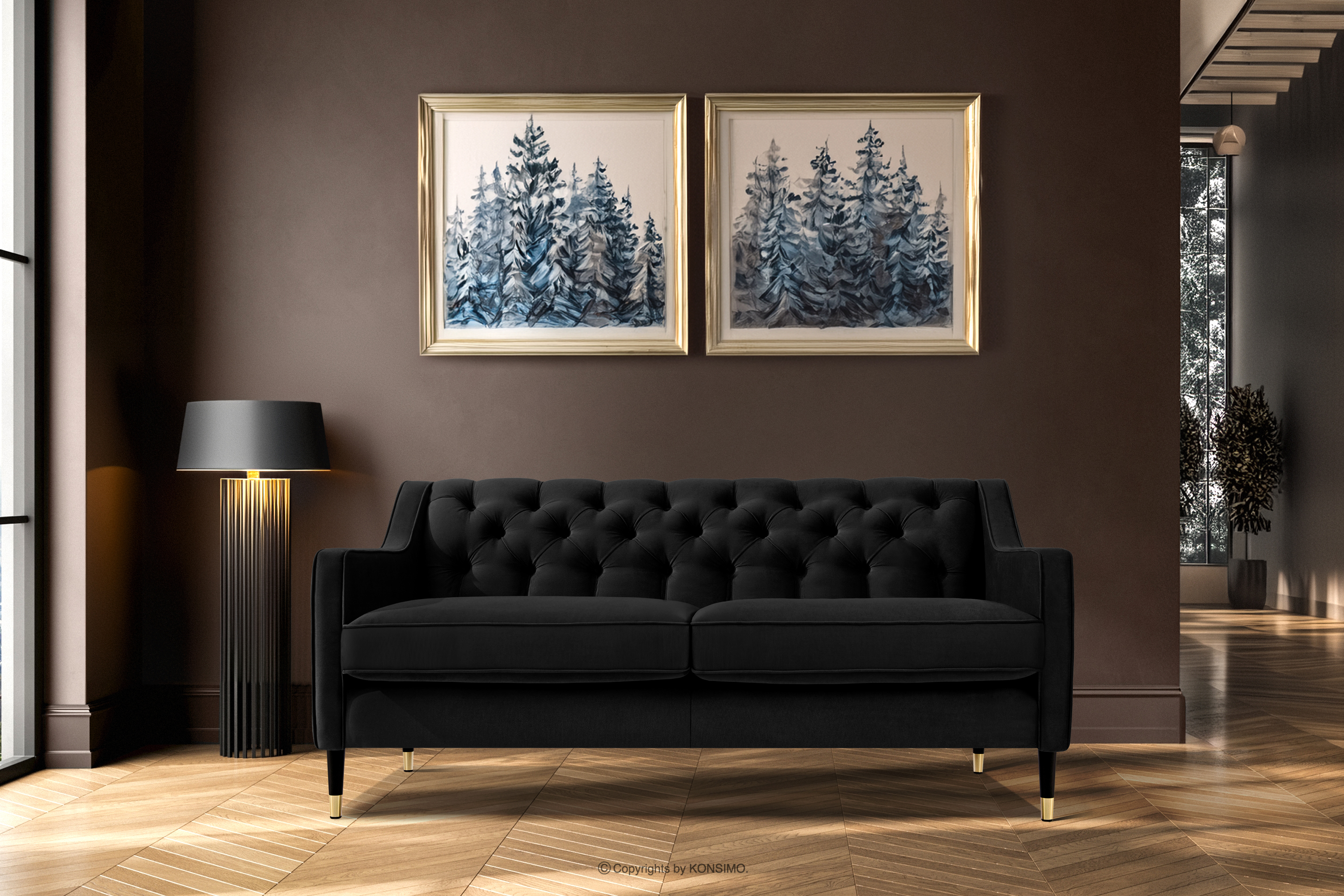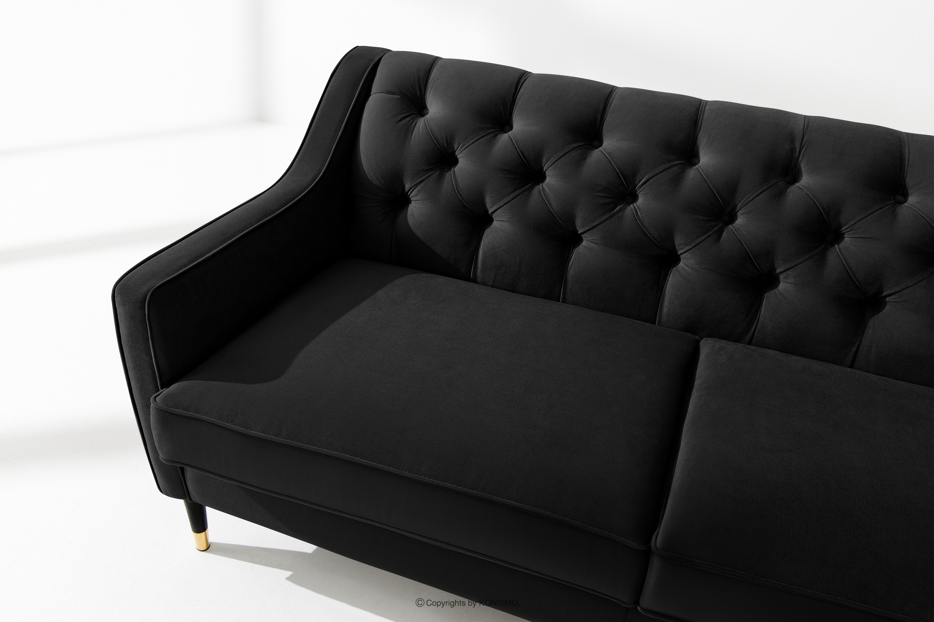 NOMUS zobacz całą kolekcję Elegancka sofa dwuosobowa z pikowaniem w tkaninie welur czarny- kolor czarny
