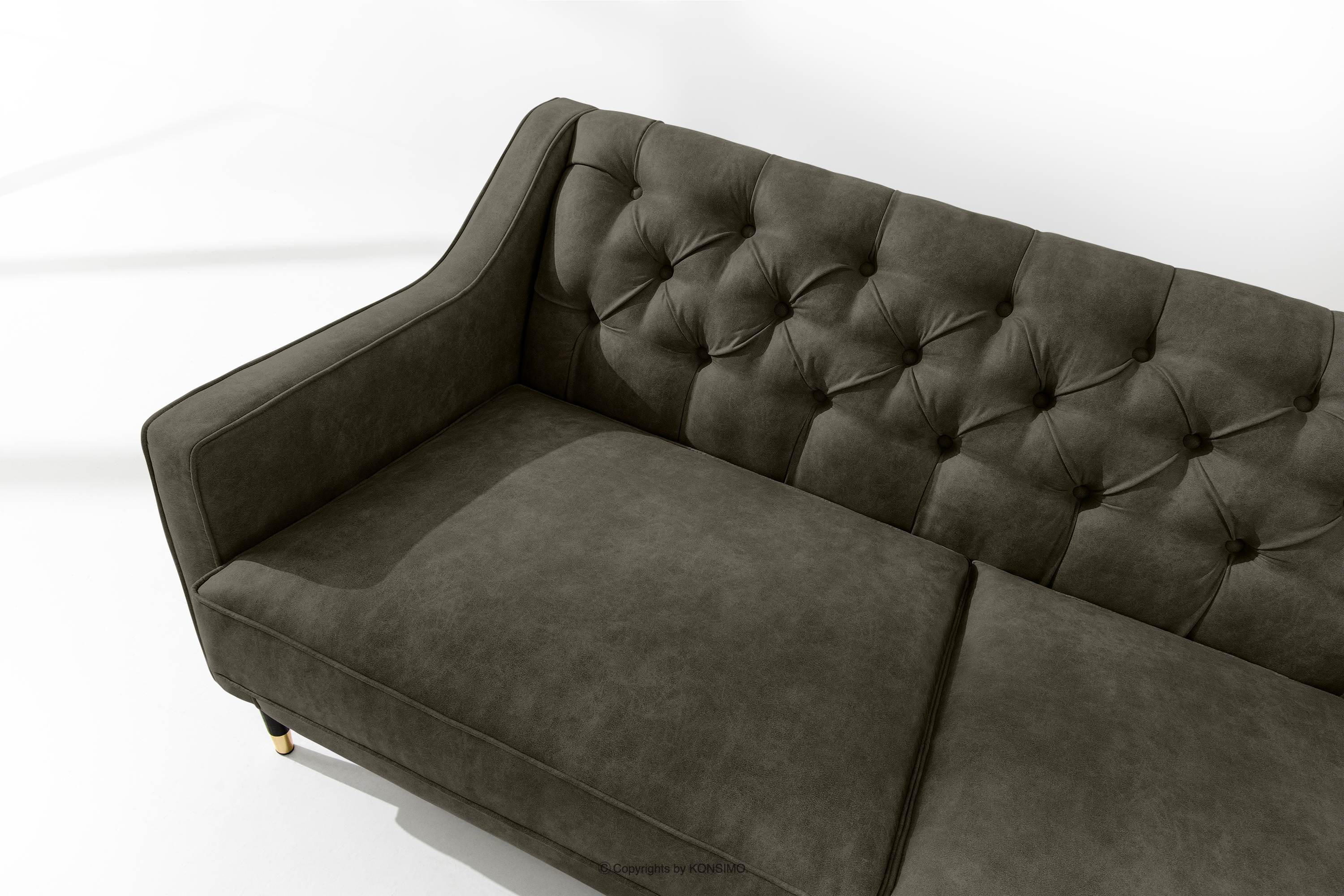 Wysokie nóżki w kolorze ciemnego wenge z delikatnym złotym akcentem to elegancki detal, który dodaje sofie lekkości oraz klasy. To nie jedyna zaleta, ponieważ ułatwiają także utrzymanie czystości pod nim – odkurzanie czy mycie podłogi staje się znacznie prostsze.