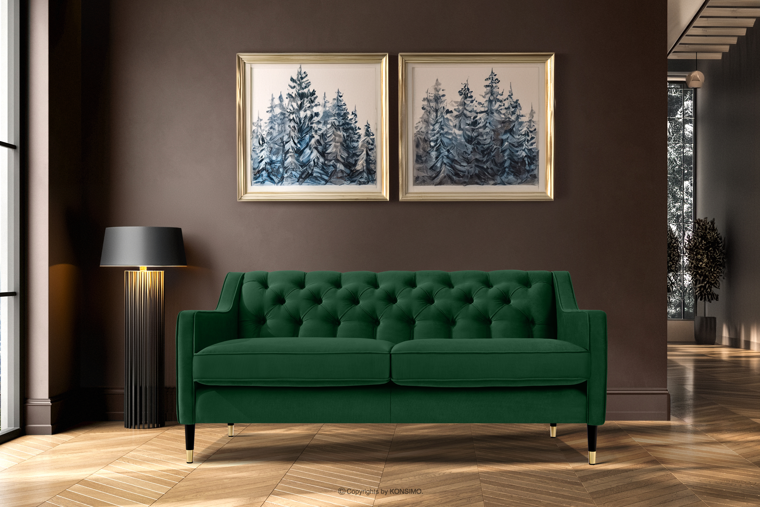 NOMUS zobacz całą kolekcję Elegancka sofa dwuosobowa z pikowaniem w tkaninie welur ciemny zielony- kolor ciemny zielony