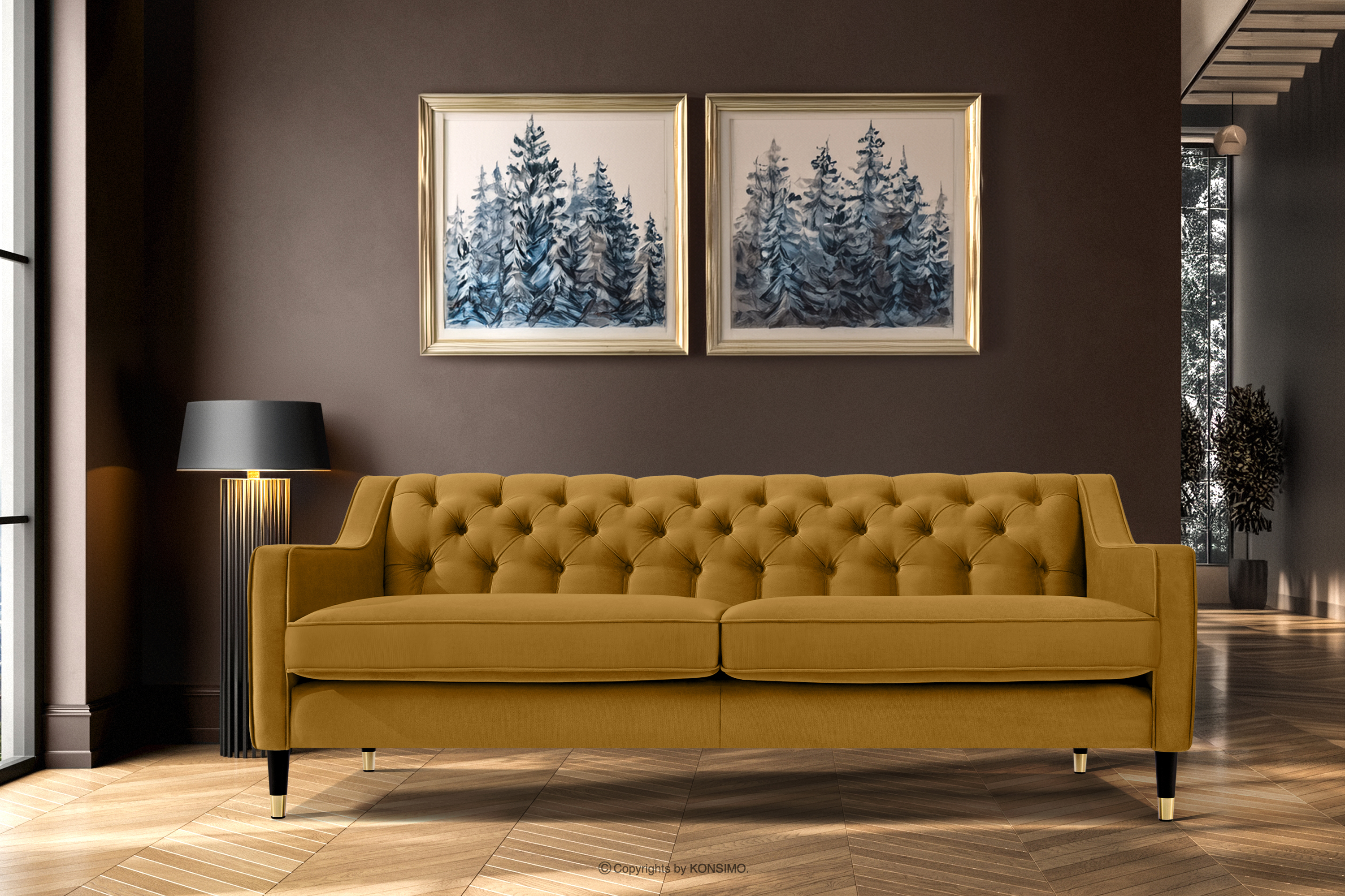 NOMUS zobacz całą kolekcję Elegancka sofa trzyosbowa welur z pikowaniem żółty- kolor żółty