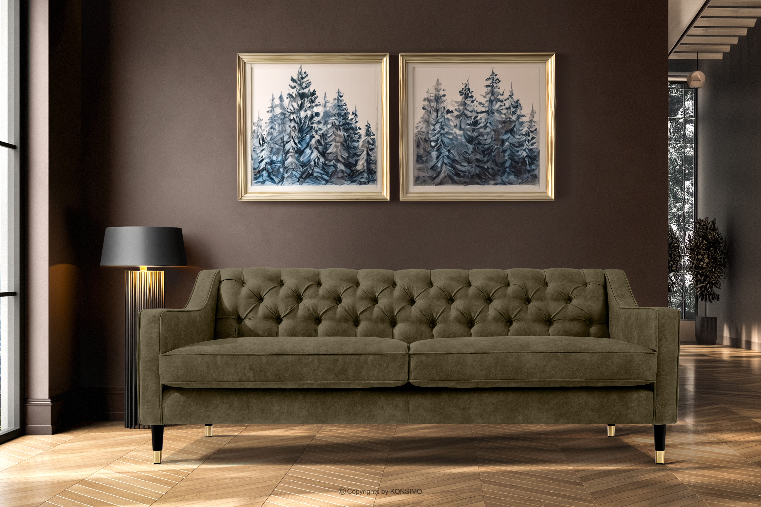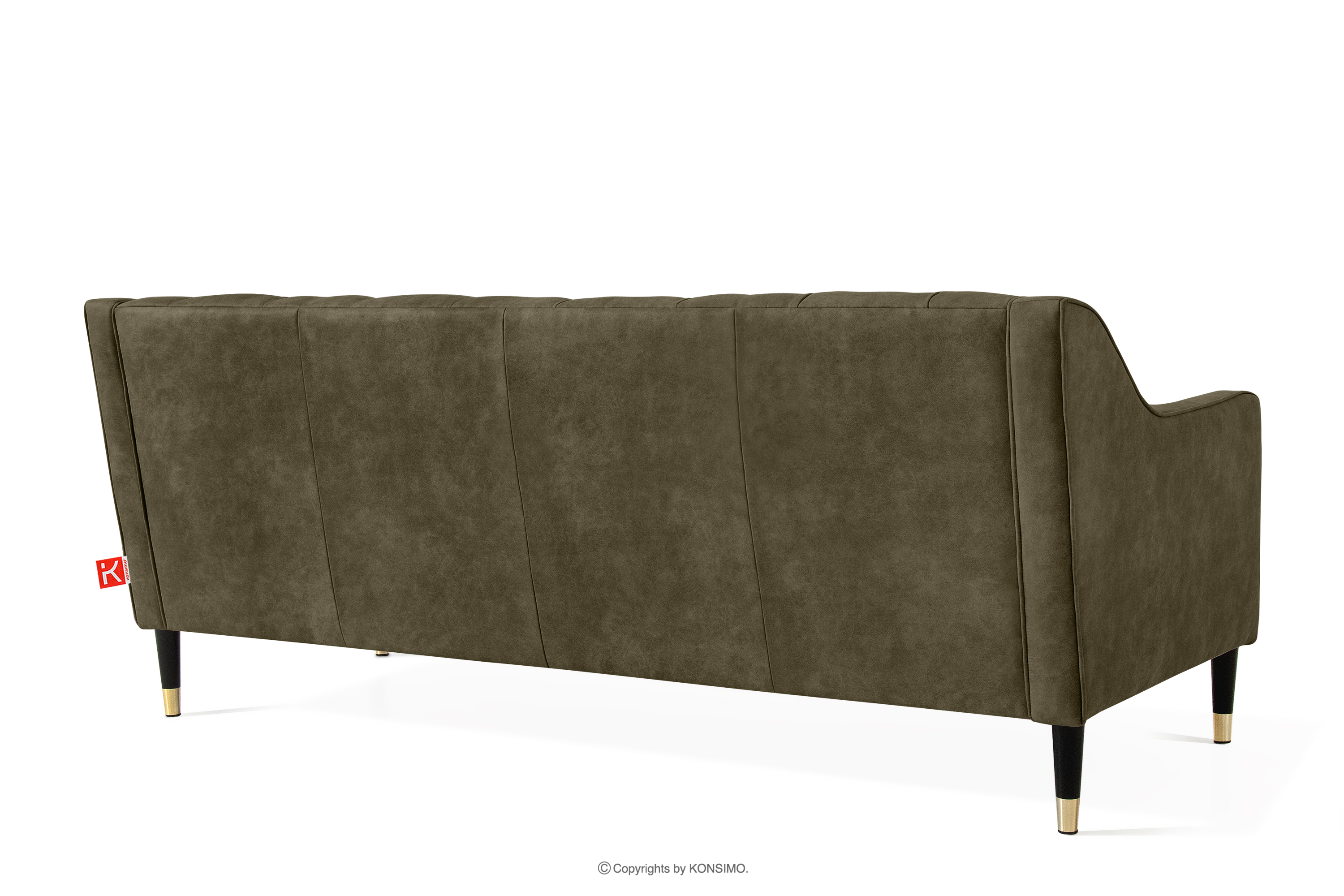 NOMUS Sofa trzyosobowa w eleganckim stylu z pikowaniem ekoskóra oliwkowy