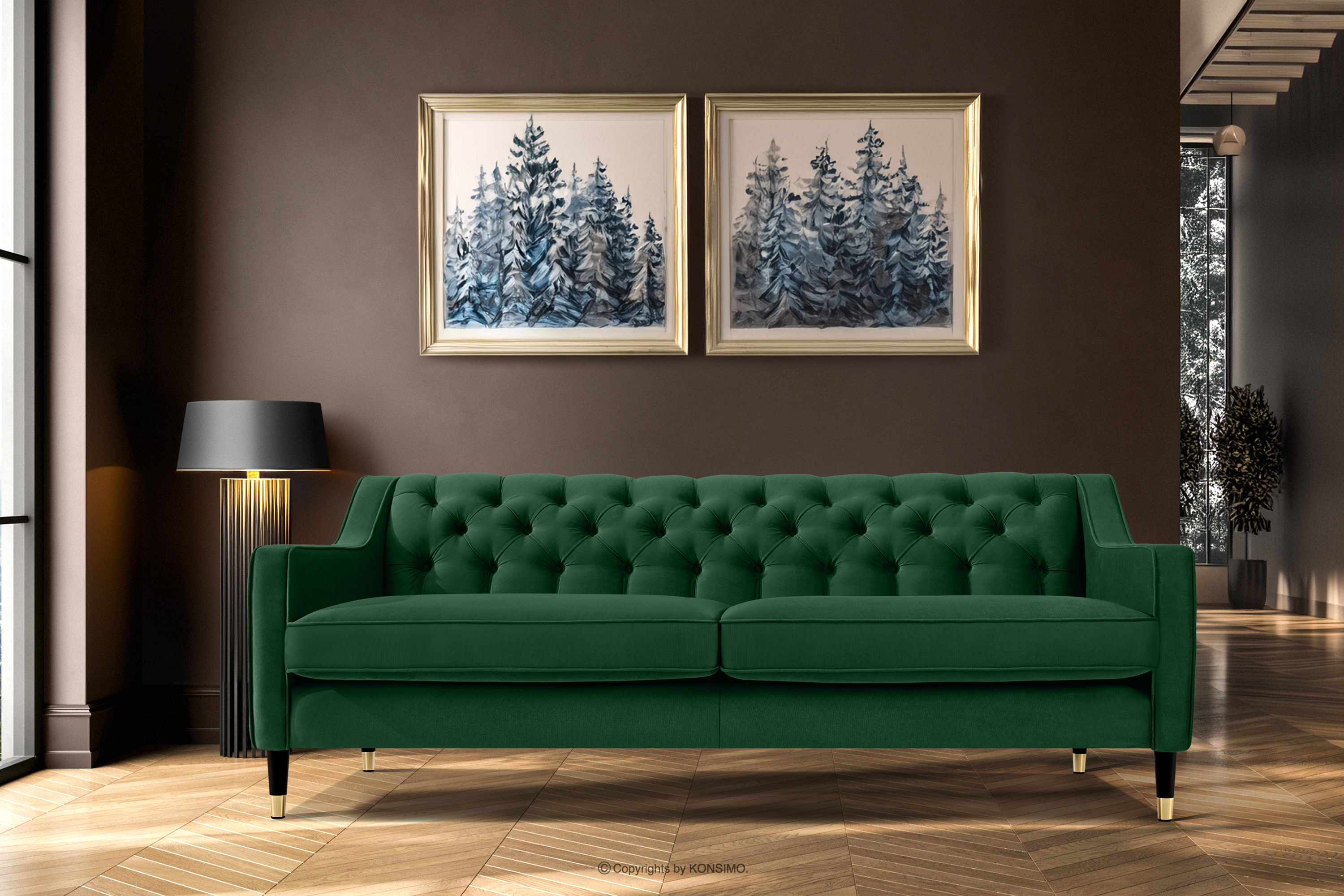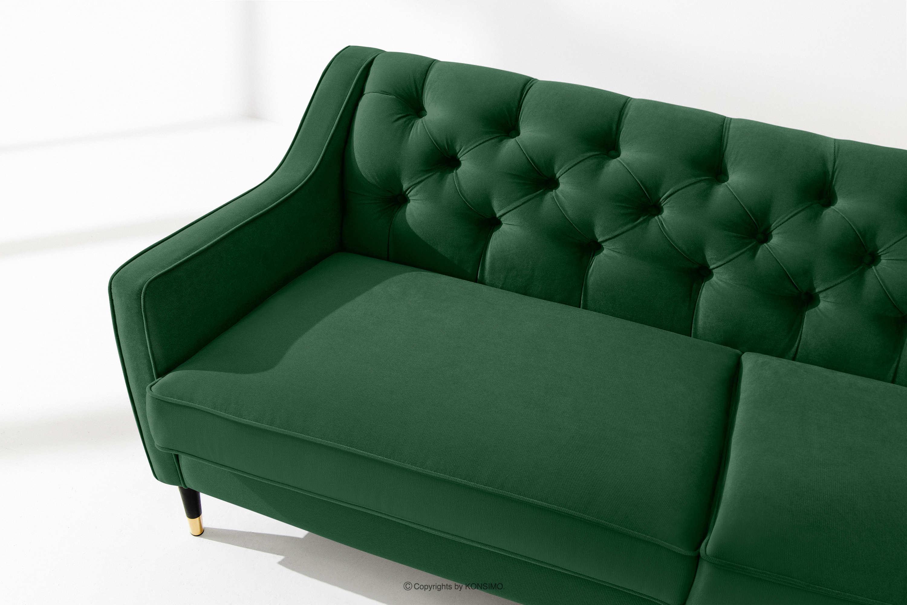 NOMUS zobacz całą kolekcję Elegancka sofa trzyosbowa welur z pikowaniem ciemny zielony- kolor ciemny zielony