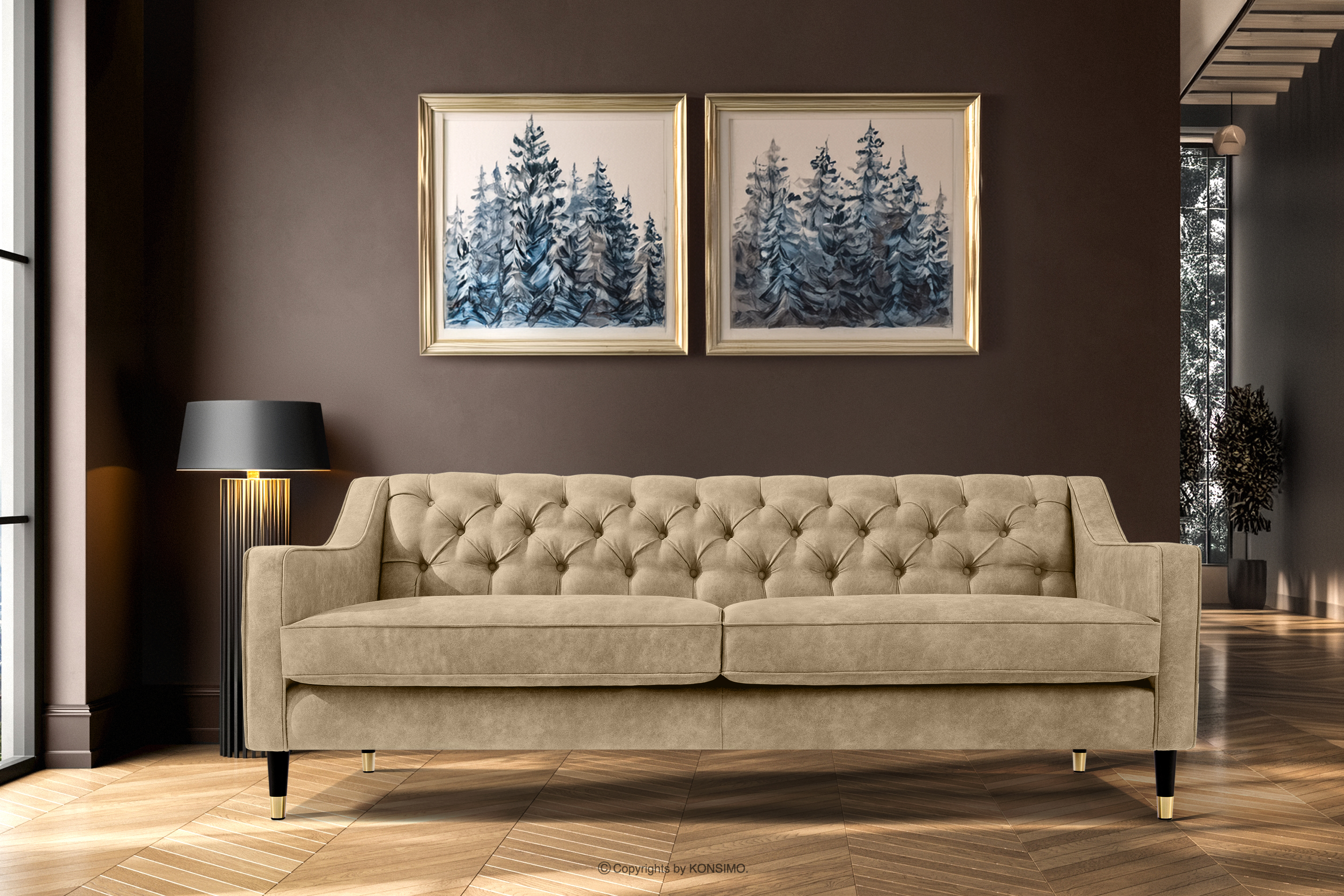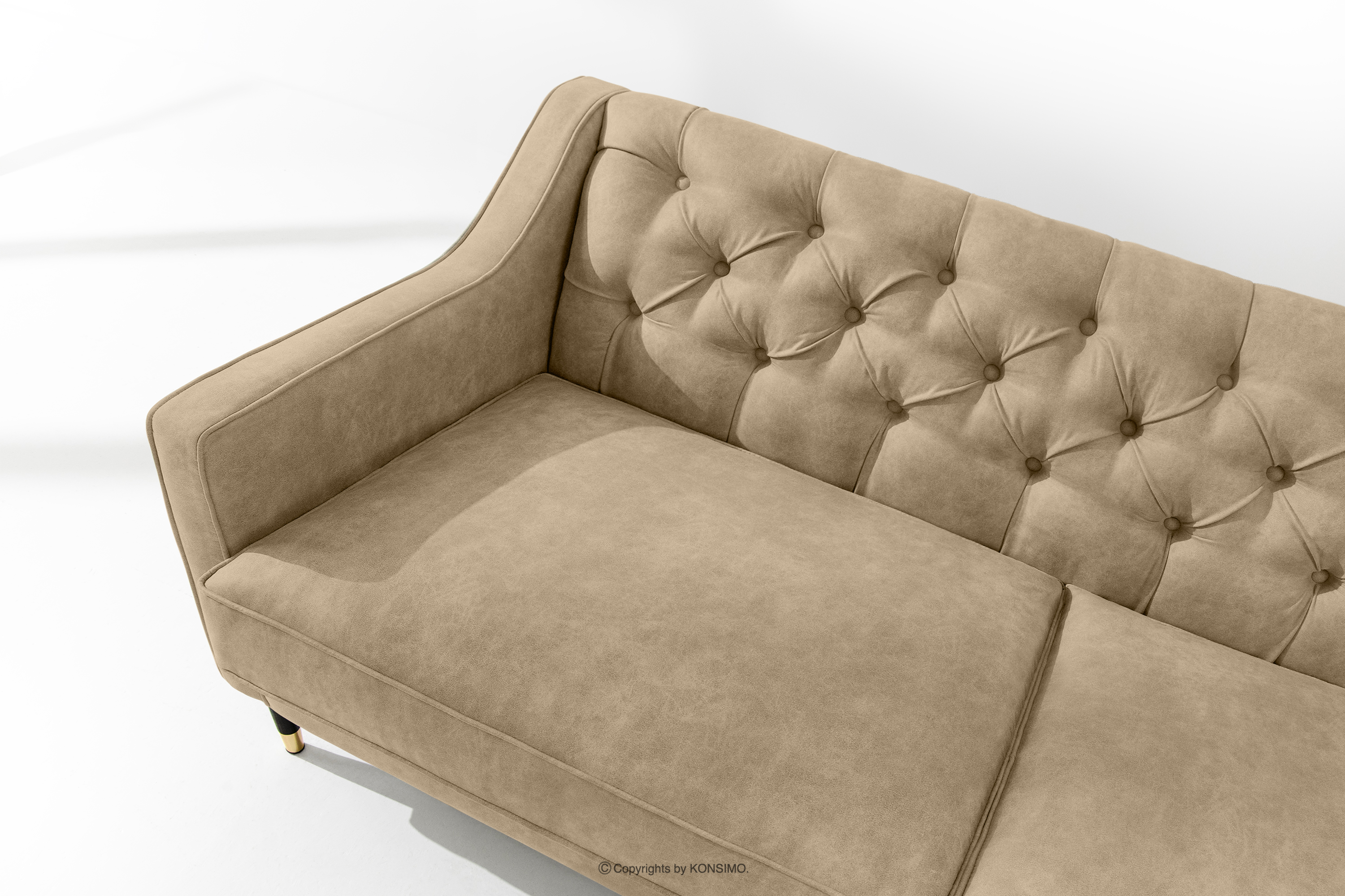 Sofa trzyosobowa w eleganckim stylu z pikowaniem ekoskóra jasny beżowy NOMUS - kolor jasny beżowy