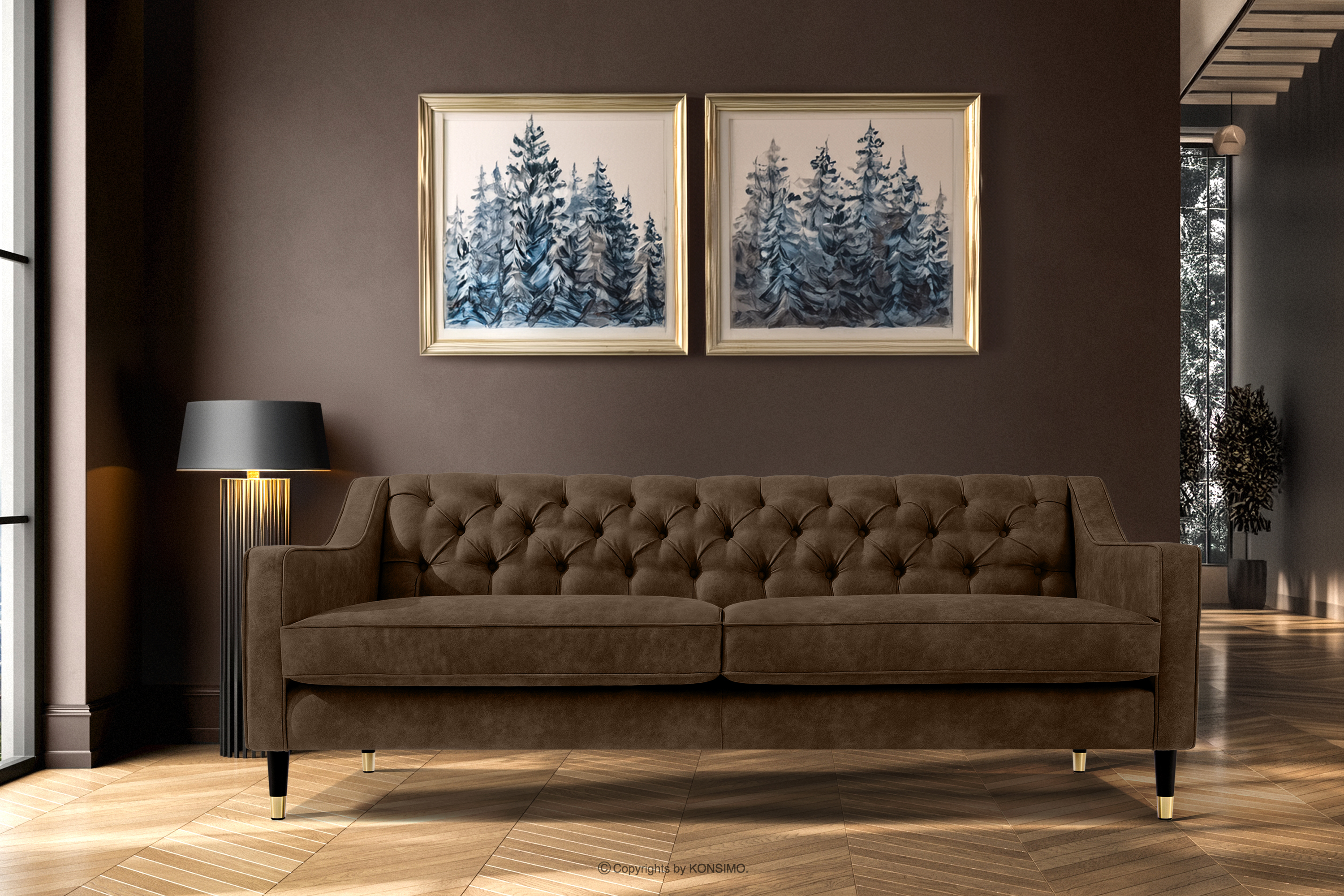 NOMUS zobacz całą kolekcję Sofa trzyosobowa w eleganckim stylu z pikowaniem ekoskóra ciemny brązowy- kolor ciemny brązowy
