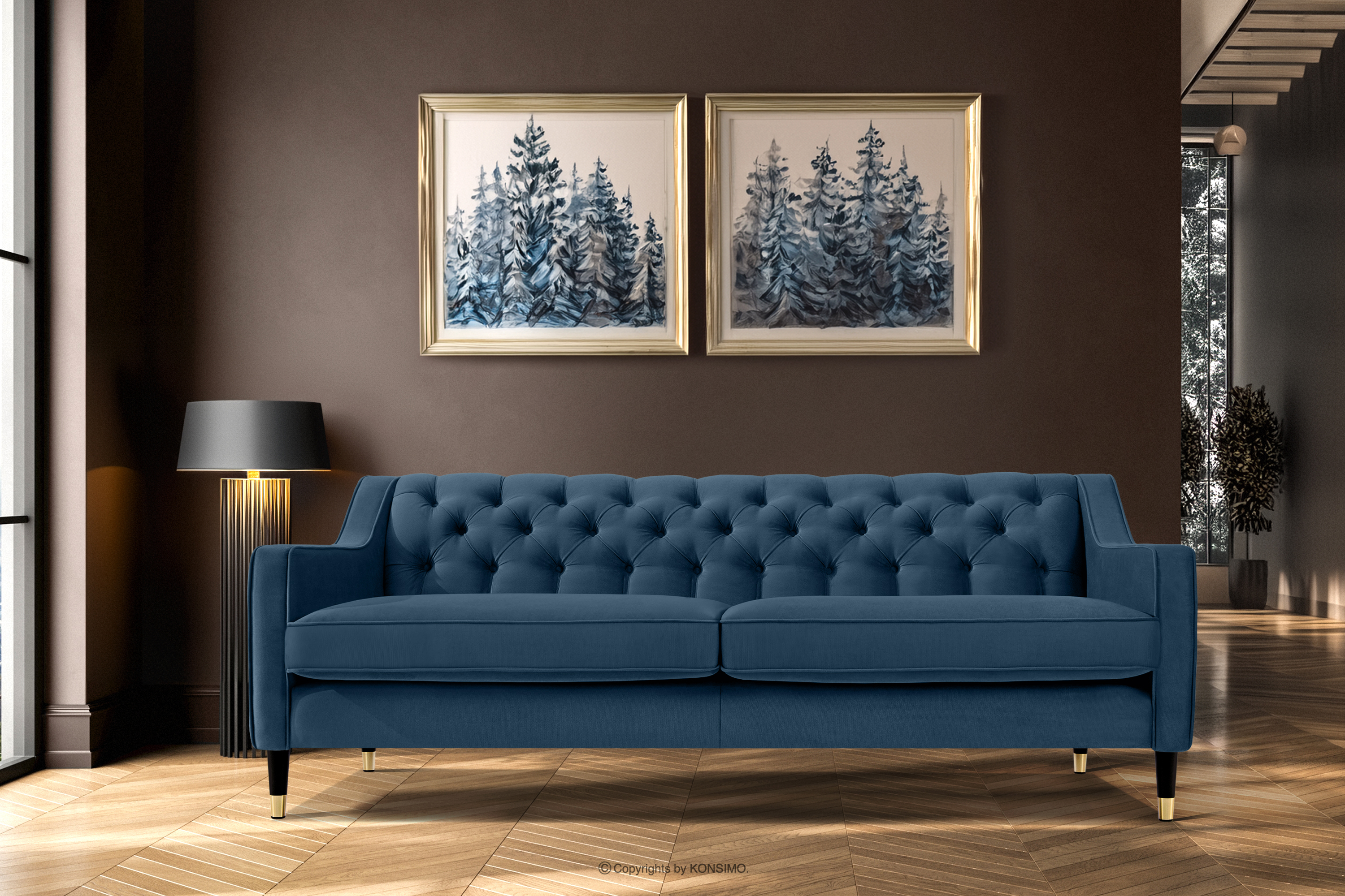 NOMUS zobacz całą kolekcję Elegancka sofa trzyosbowa welur z pikowaniem granatowy- kolor granatowy