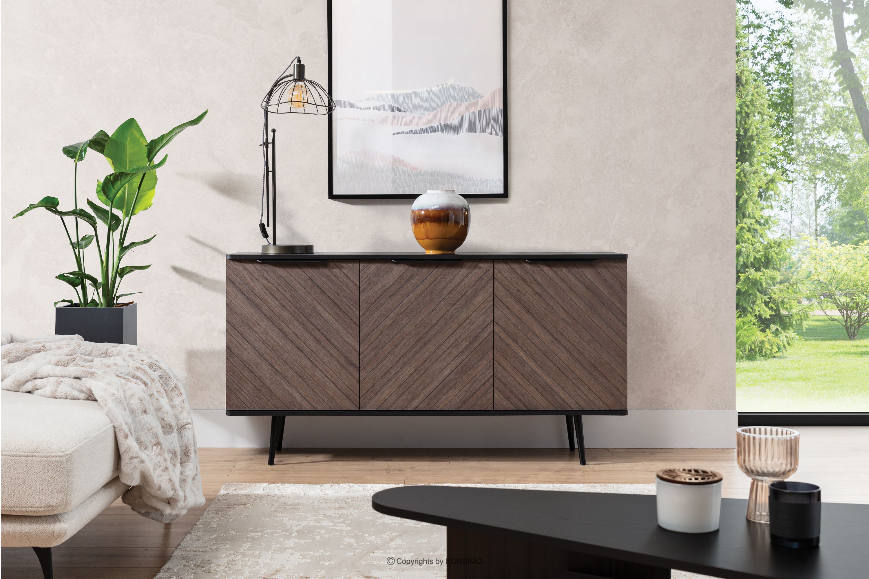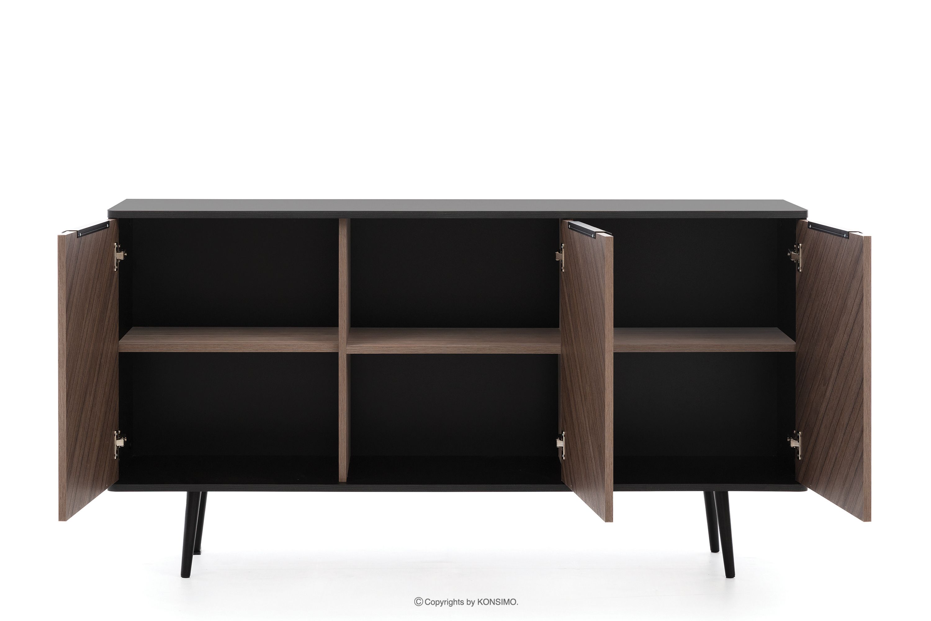 LANDI zobacz całą kolekcję Komoda na wysokich nóżkach do salonu trzydrzwiowa- kolor czarny/brązowy