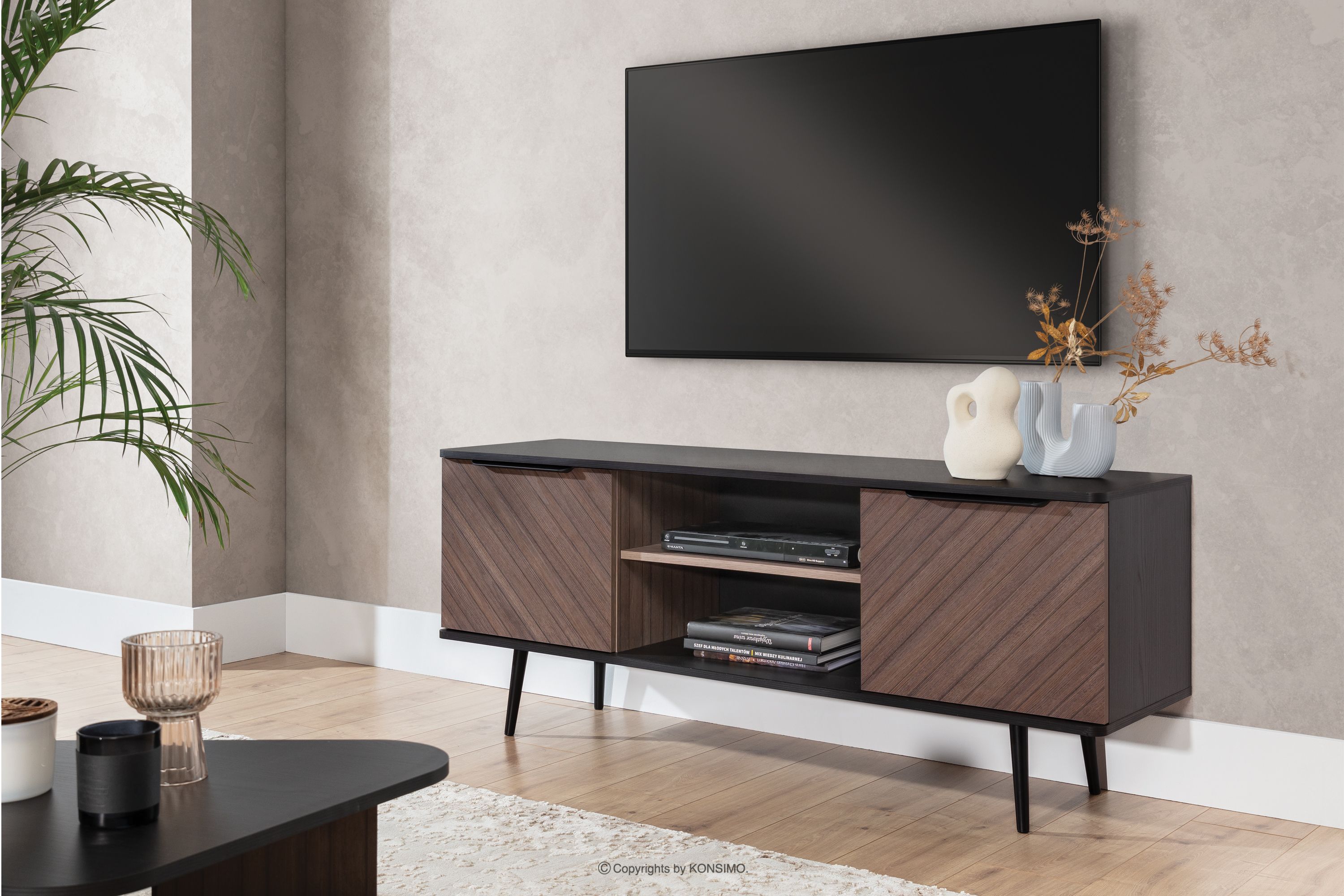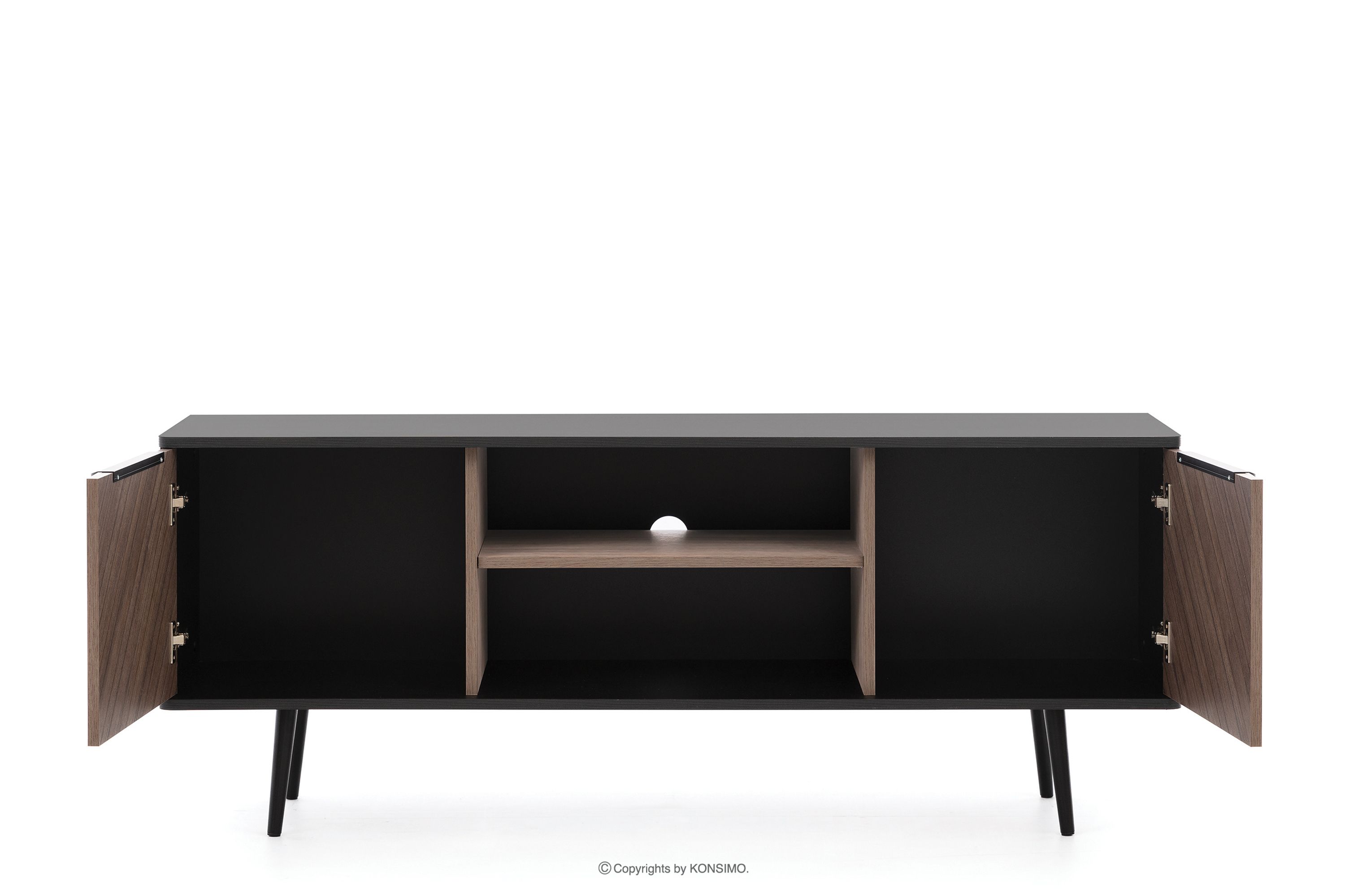 LANDI zobacz całą kolekcję Szafka RTV z półką na wysokich nóżkach- kolor czarny/brązowy